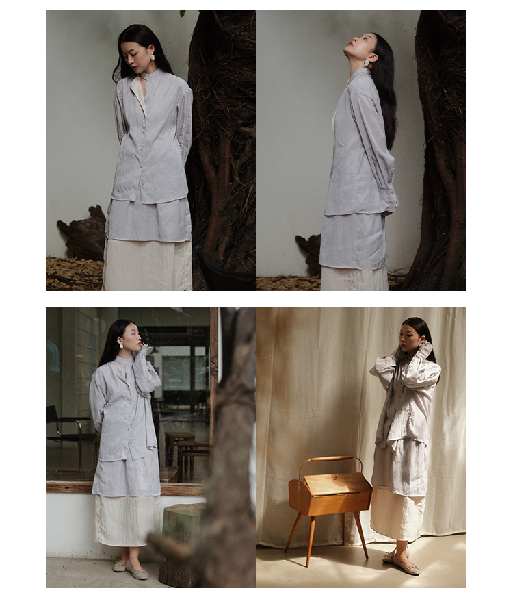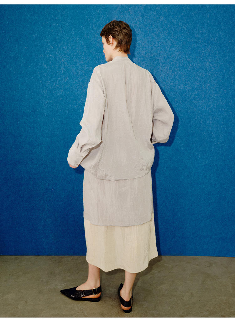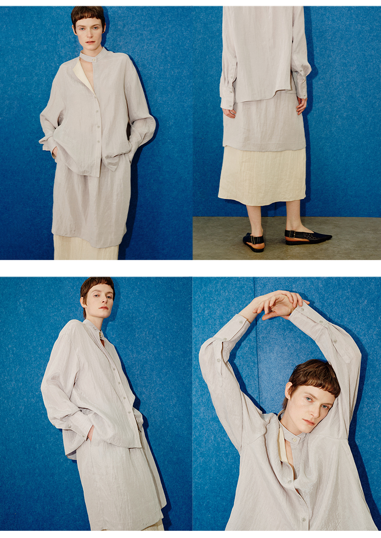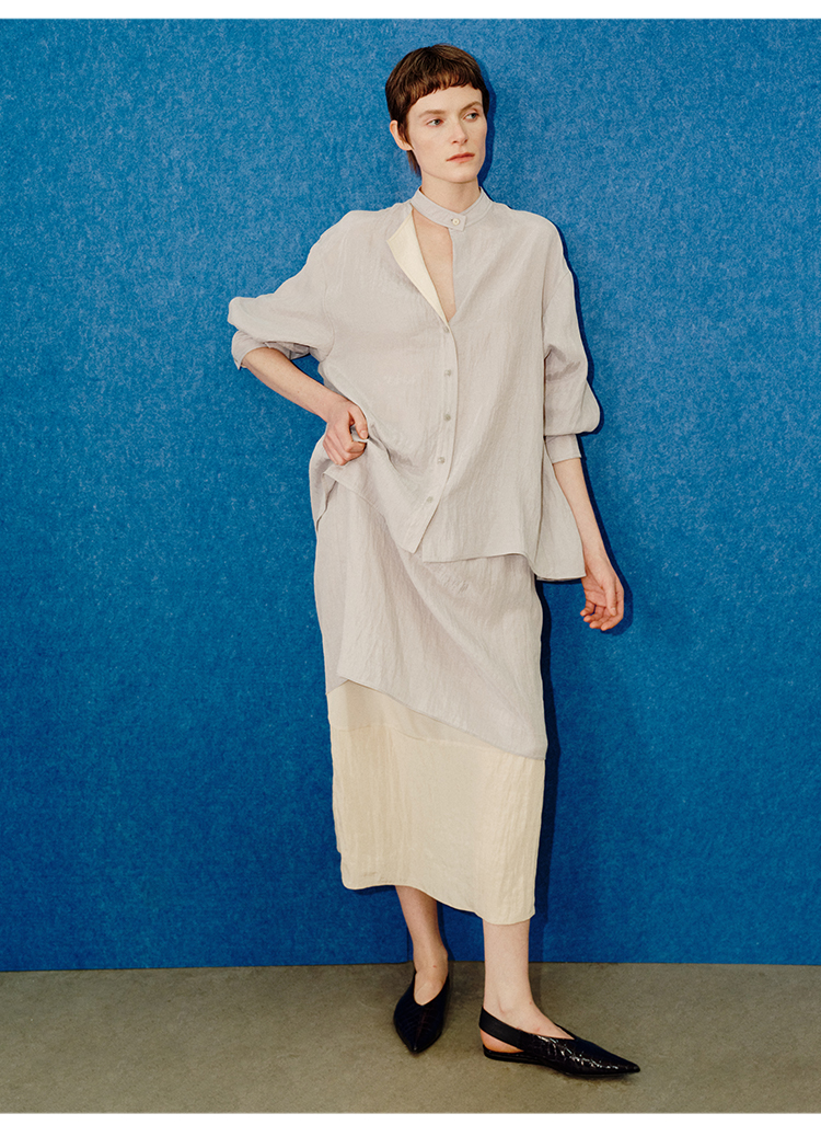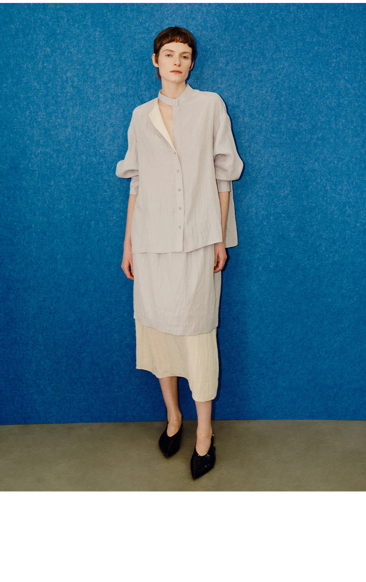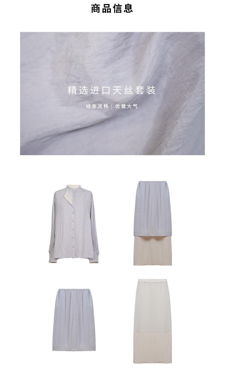 HIDEMI 进口天丝极简镂空翻折领设计感chocker纽扣温柔撞色雾粉紫套装