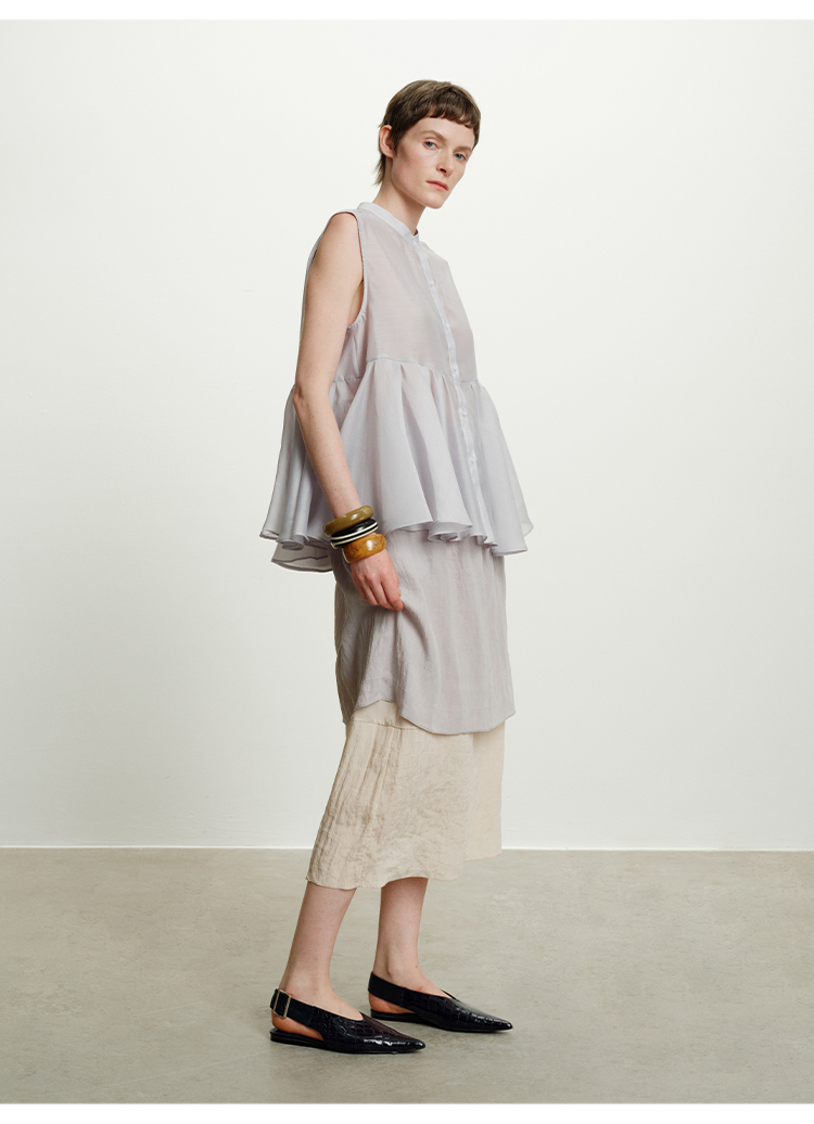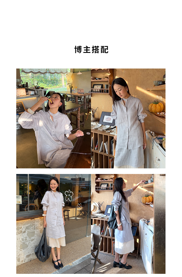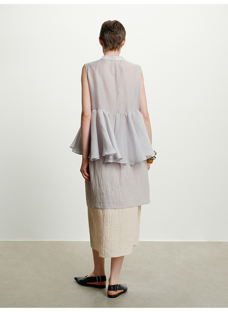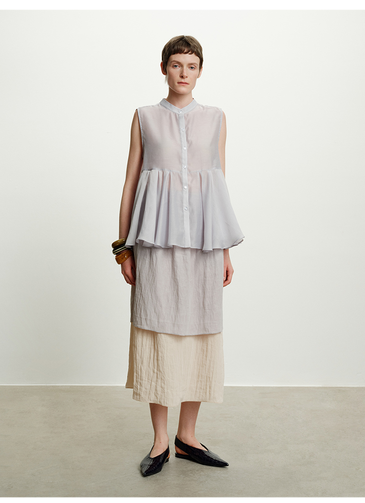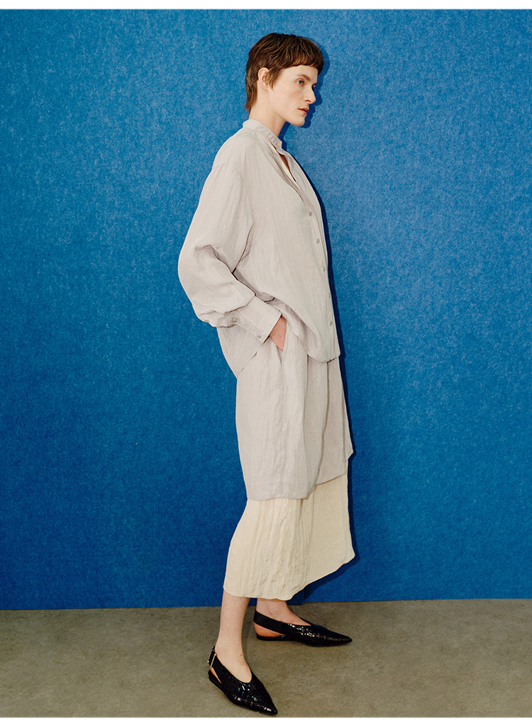 HIDEMI 进口天丝极简镂空翻折领设计感chocker纽扣温柔撞色雾粉紫套装