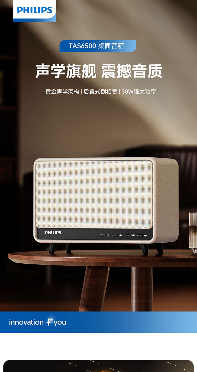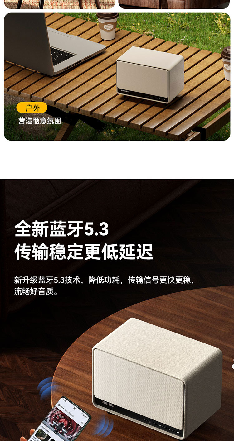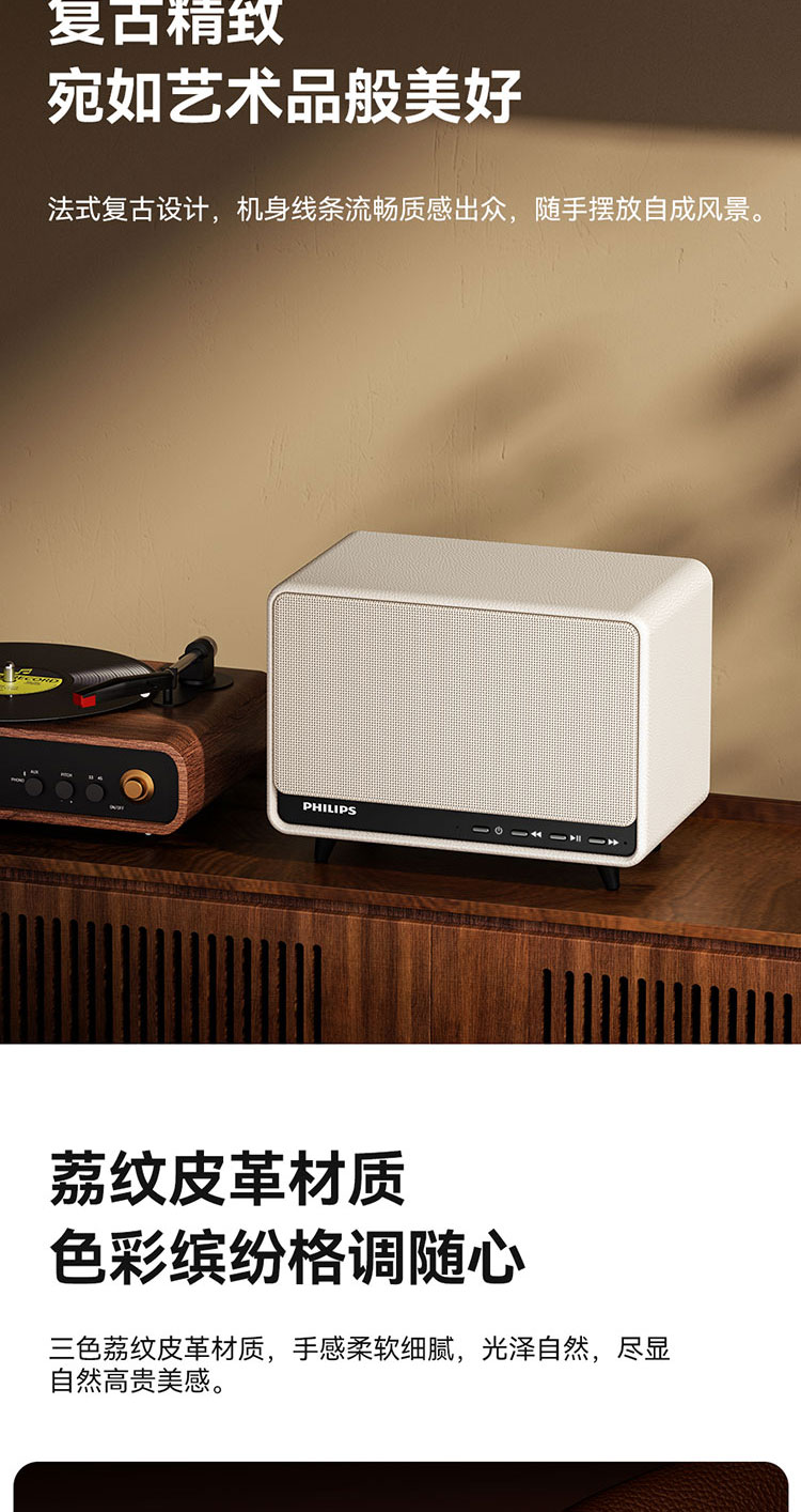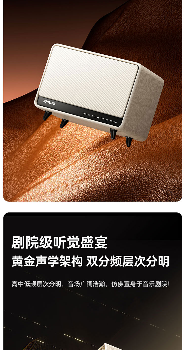 飞利浦(PHILIPS)蓝牙音响复古桌面音箱大音量摆件电脑音响环绕音箱男女生日礼物TAS6500