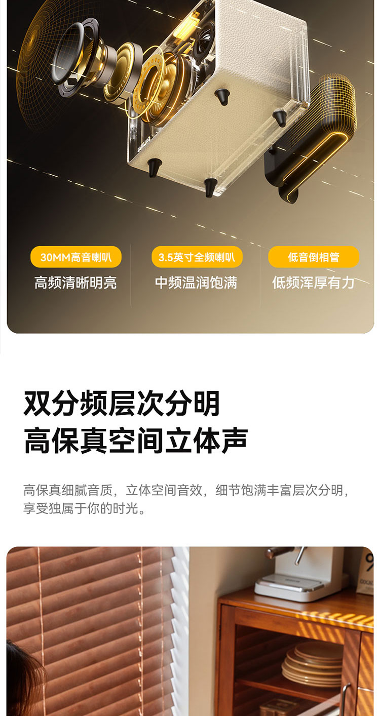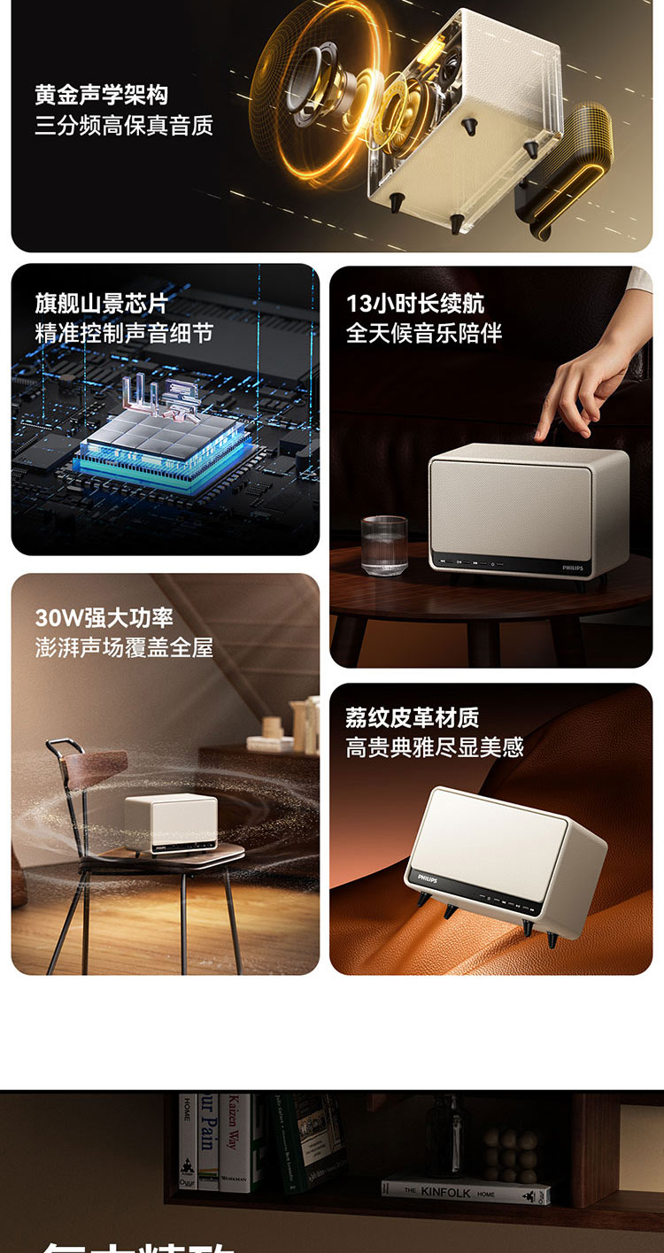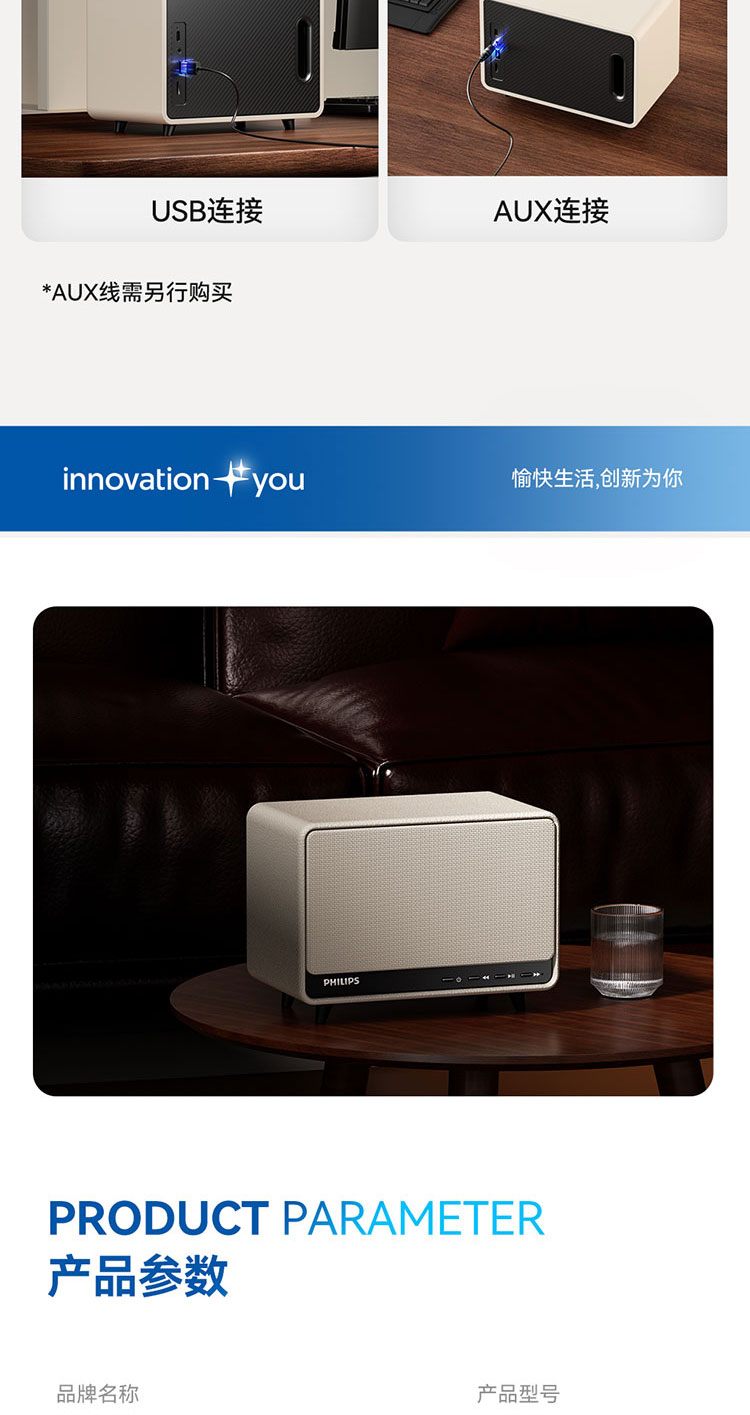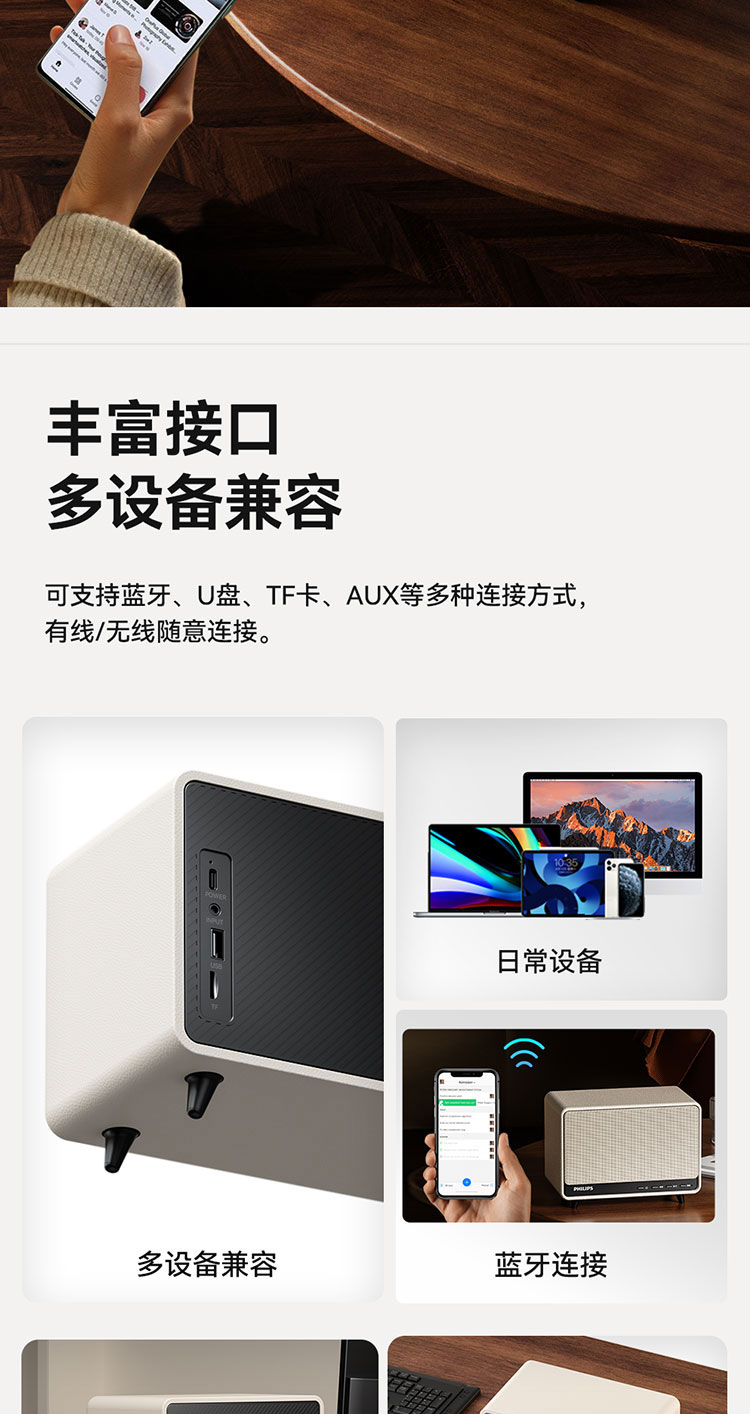 飞利浦(PHILIPS)蓝牙音响复古桌面音箱大音量摆件电脑音响环绕音箱男女生日礼物TAS6500