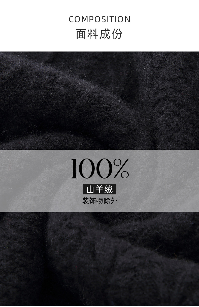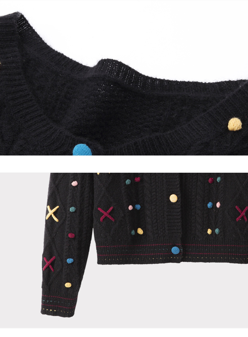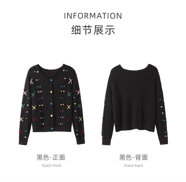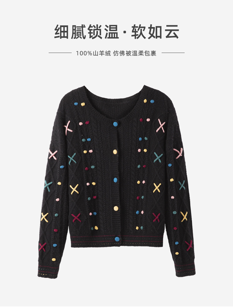 羚荌渼圆领彩色手工钩球女羊绒开衫