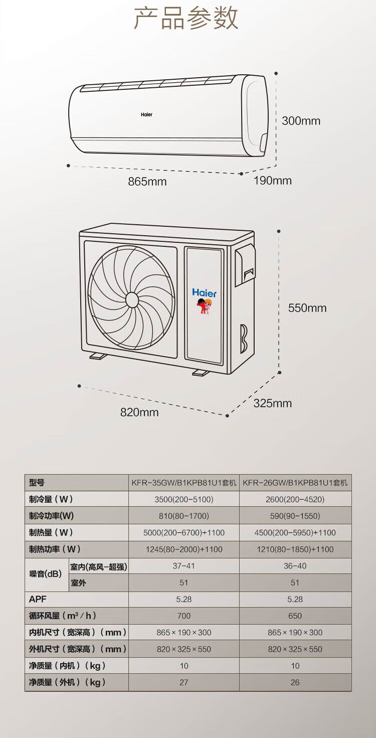 海尔(Haier)空调挂机新一级能效变频冷暖壁挂式智能防直吹除湿自清洁大1匹(KBB升级款)KFR-26GW/B1KPB81U1