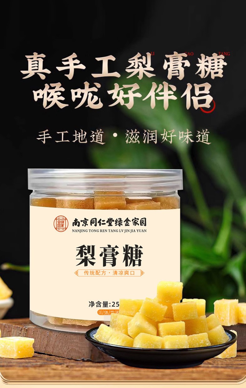 秒杀五罐!【清凉润喉! 甜而不腻】浓郁梨香,真材实料,教师常备,养肺护嗓南京同仁堂梨膏糖纯手工百草梨膏糖琵琶薄荷糖秋梨膏。rb
