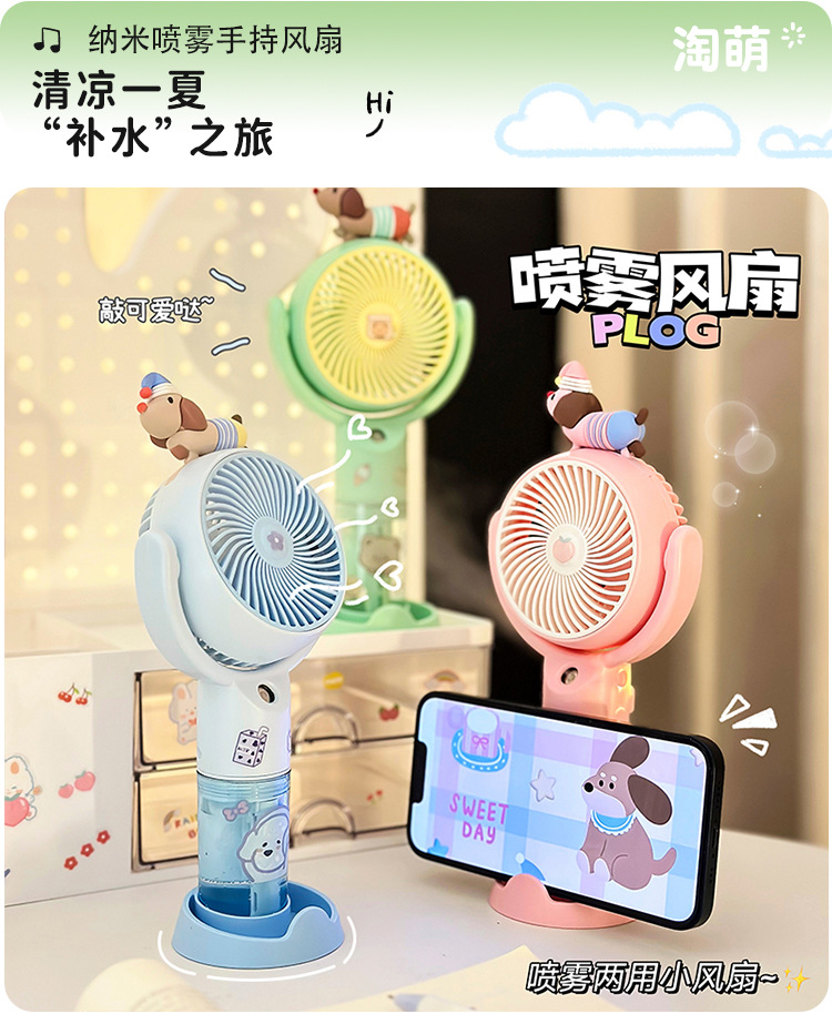 [小滋心选]【活动价 ¥45】【夏日降温神器🌬】可爱手持喷雾风扇✨补水加湿+手机支架,一机多用,随时随地清凉一夏!🍃