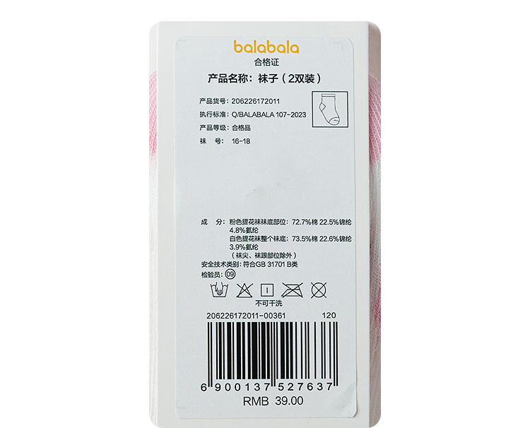 【商场同款】巴拉巴拉宝宝袜子夏新款网眼透气儿童短袜女童两双装