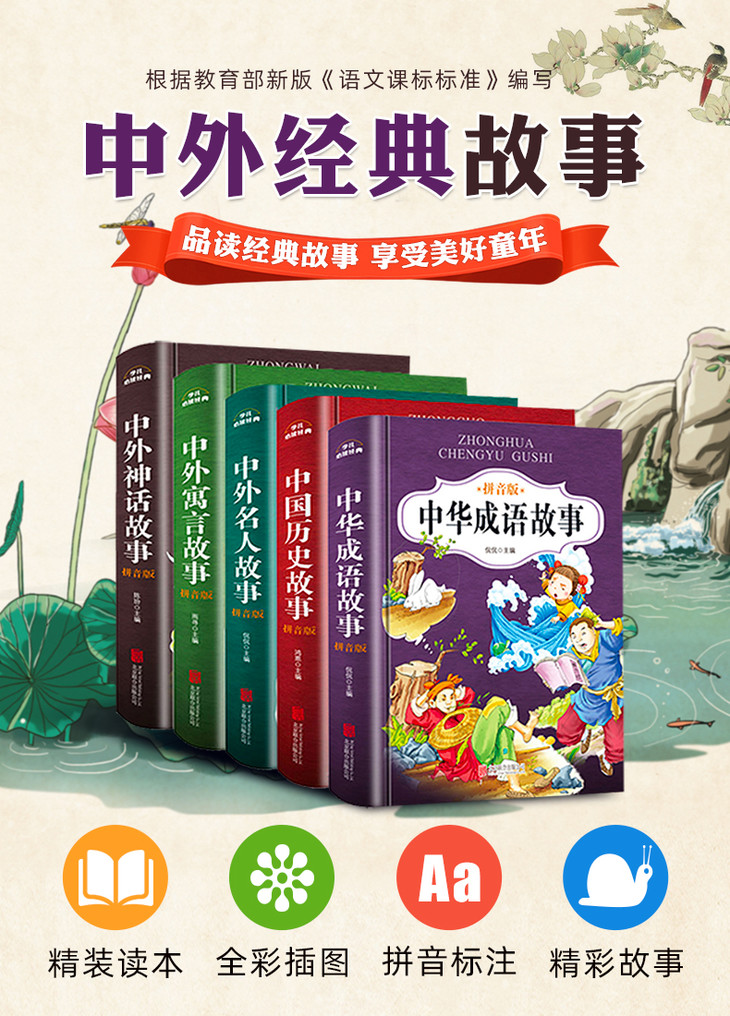 中华成语故事大全注音版全5册-中国历史故事+中华成语故事+中外名人故事+中外寓言故事+中外神话故事