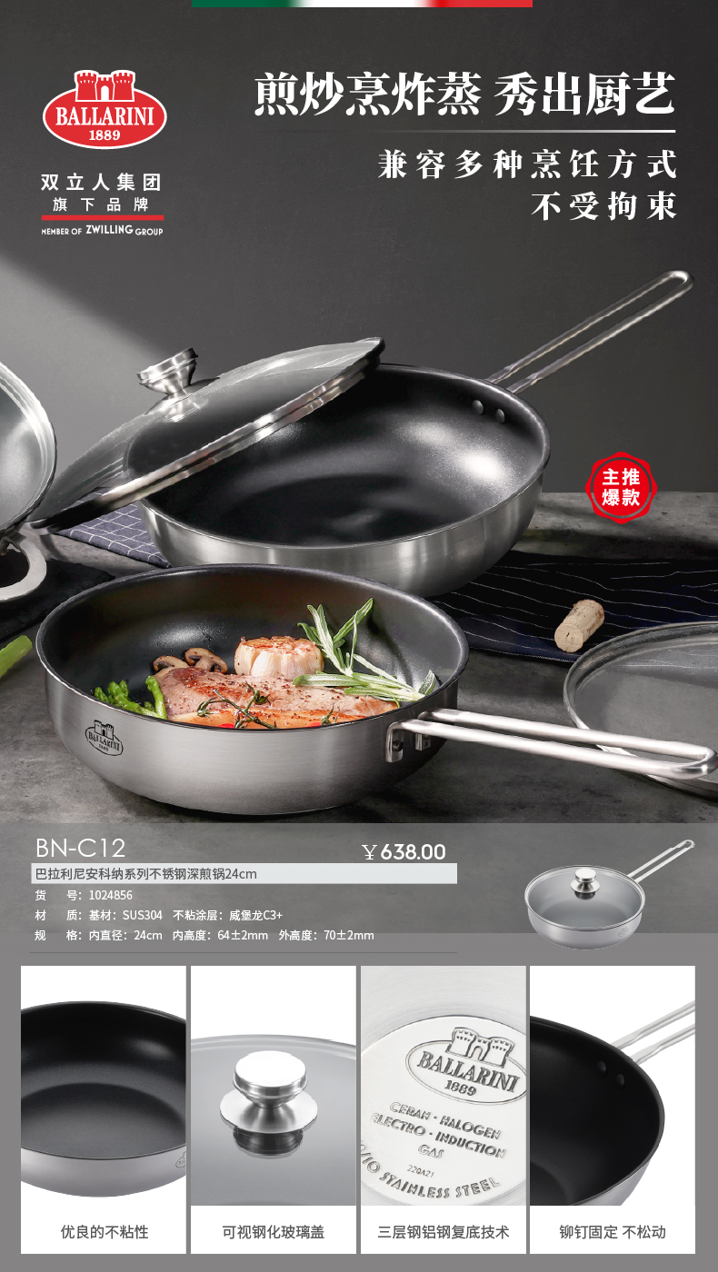 BN-C12 巴拉利尼安科纳系列不锈钢深煎锅24cm