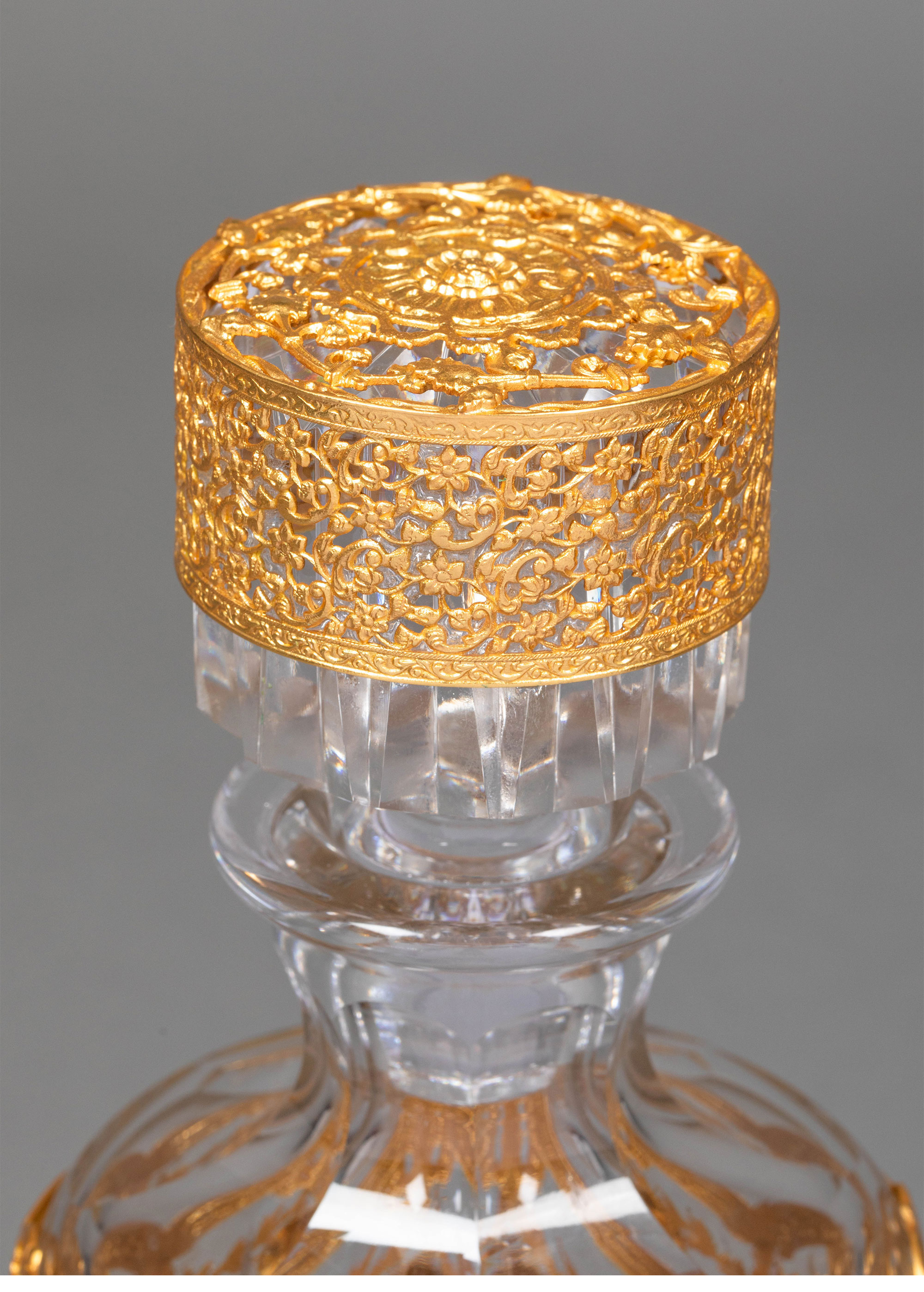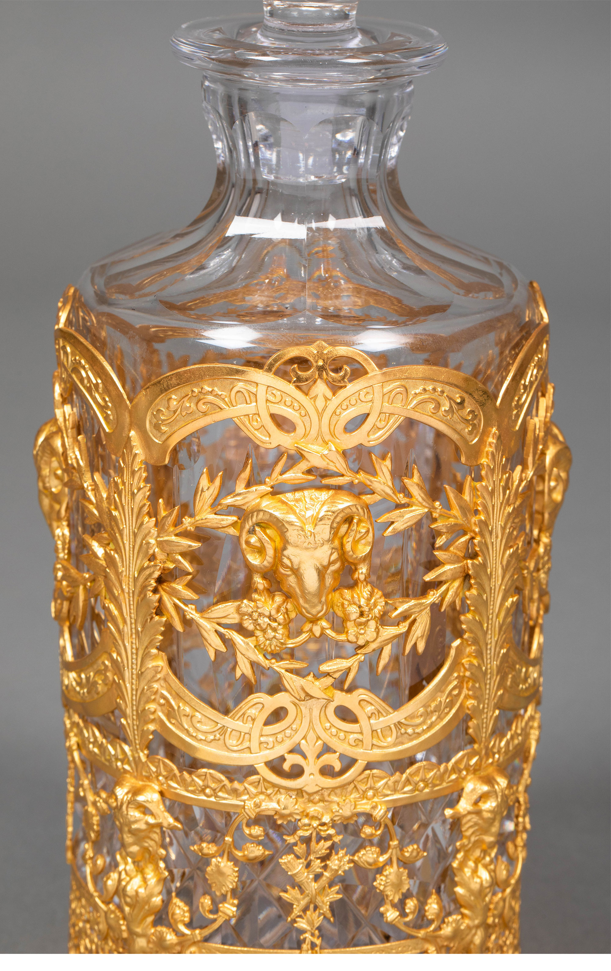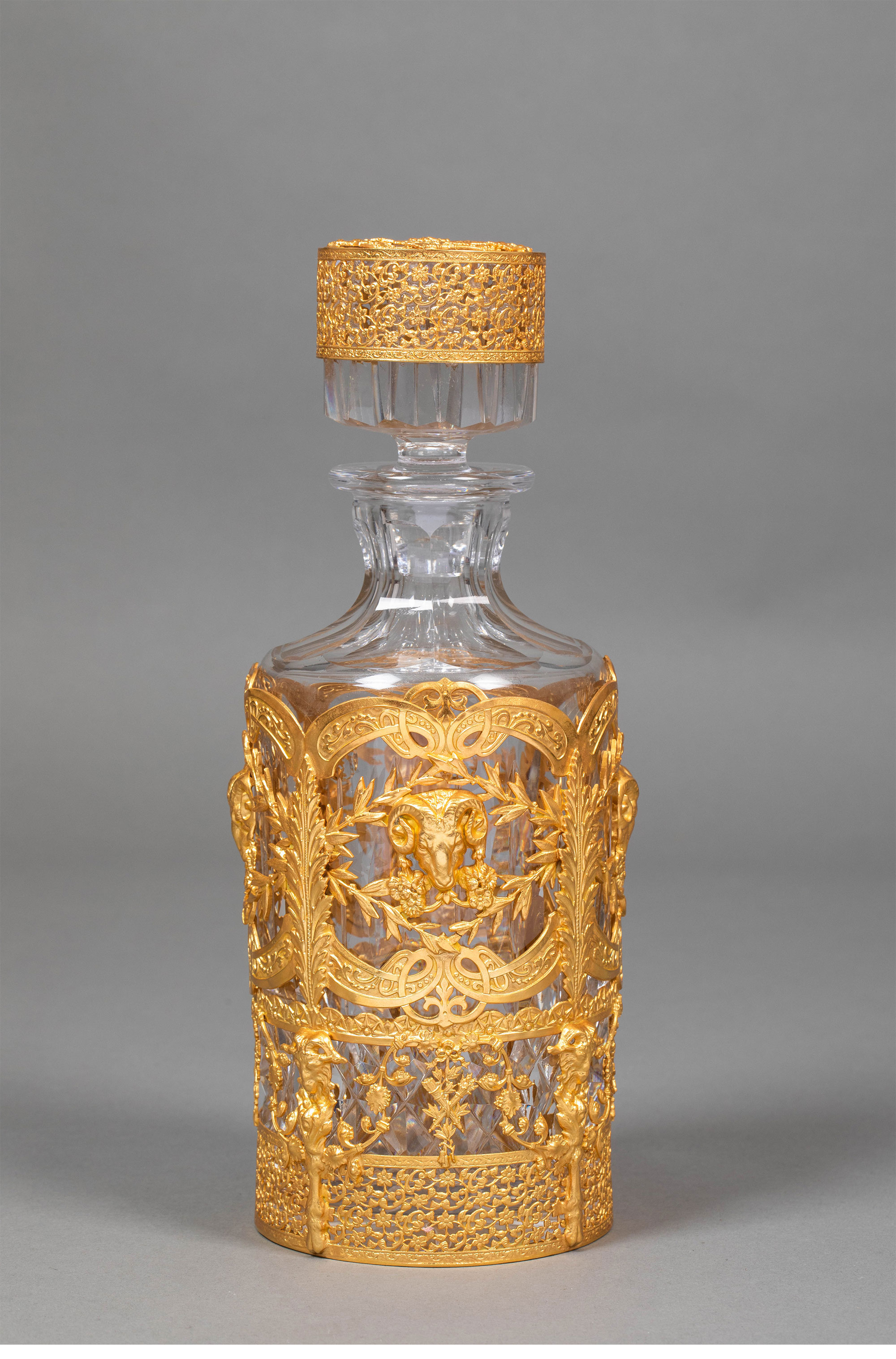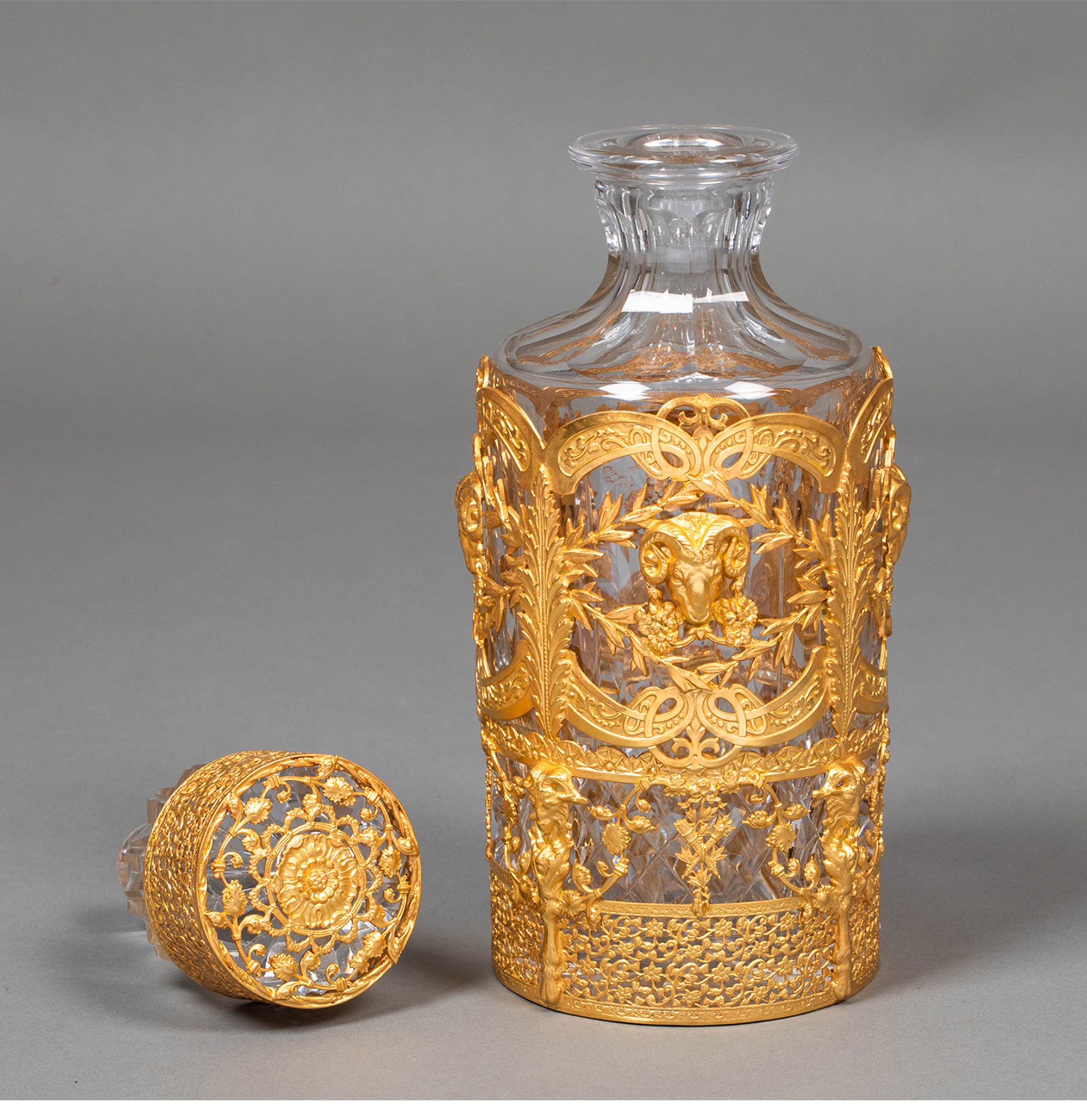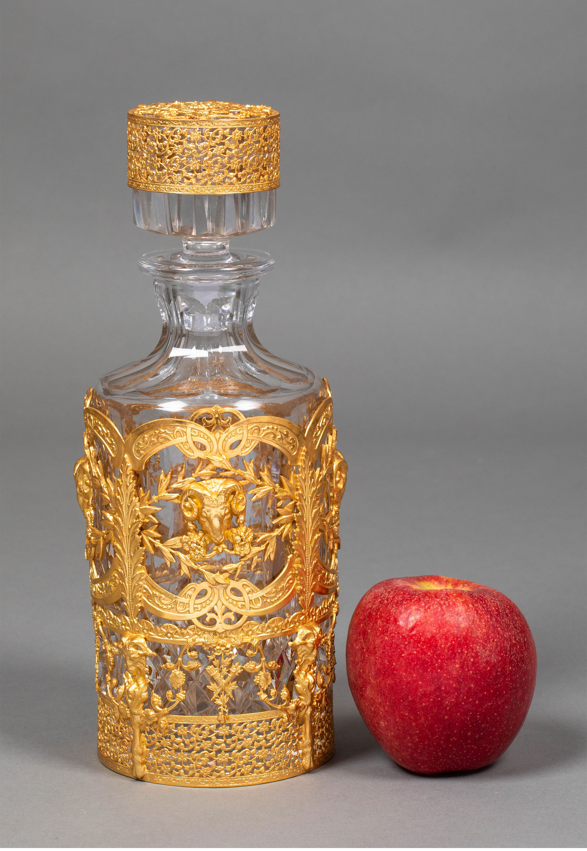 19世纪末法国出品新古典主义风格铜鎏金精雕镶嵌水晶烈酒瓶