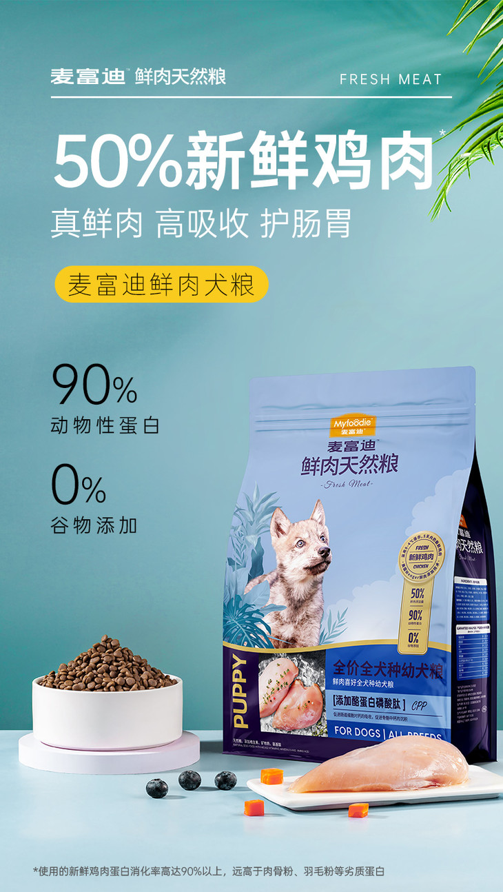 麦富迪狗粮幼犬泰迪贵宾雪纳瑞金毛拉布拉多边牧通用型鲜肉粮2kg