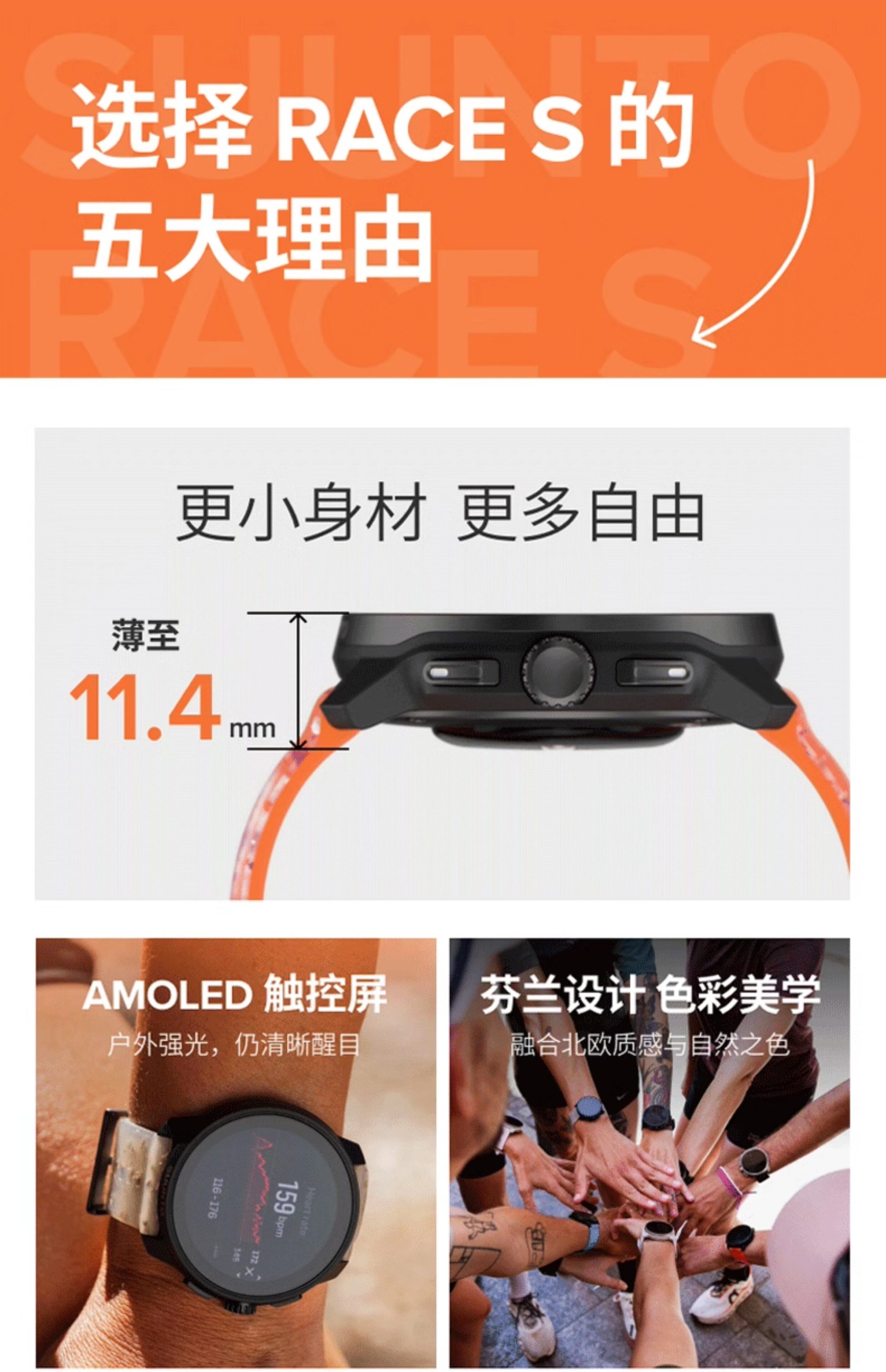 颂拓(SUUNTO)RACE S 专业跑步智能户外运动手表多星定位心率血氧