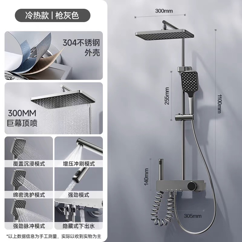 5957伯尔尼四档按键花洒-枪灰(全铜水路)