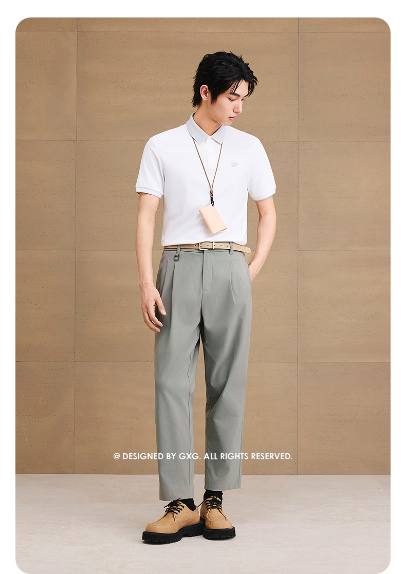 GXG男装 锦氨威化肌理polo衫印花字母休闲翻领短袖 25夏新品