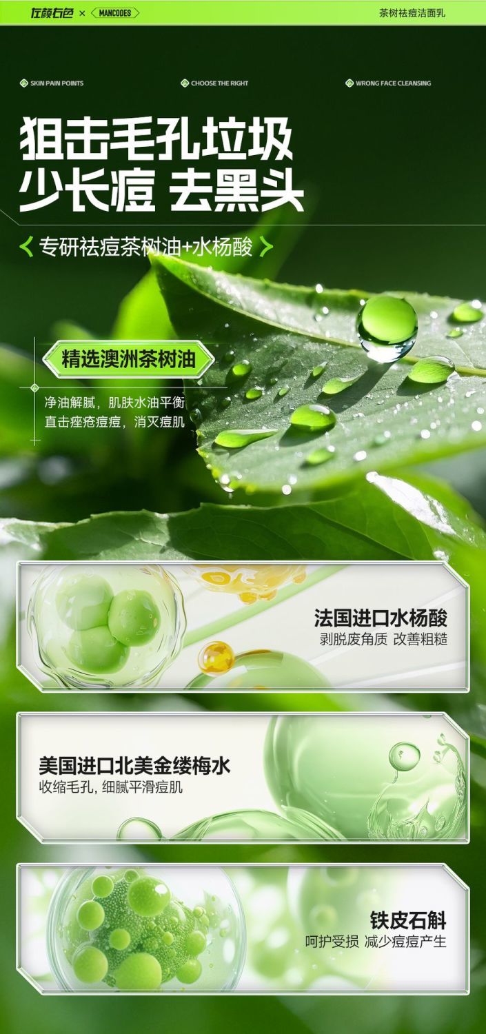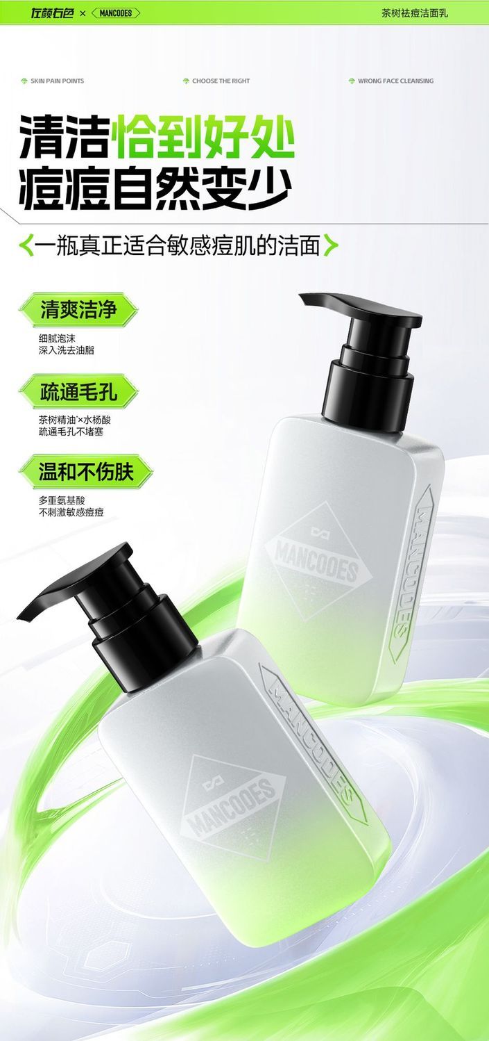 🎊双旦礼遇 | 拍5免3☃低至¥31.9/件>左颜右色 茶树祛痘洁面乳110g
