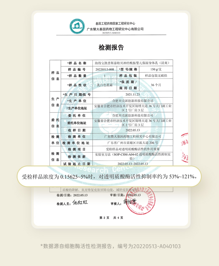 3.专利贻贝提取物,止痒抑菌,无防腐剂,无激素(有检测报告) 可以防治搔抓,预防湿疹过敏的问题,适合皮肤干痒掉屑、皮肤敏感、换季易过敏肌肤的宝宝;