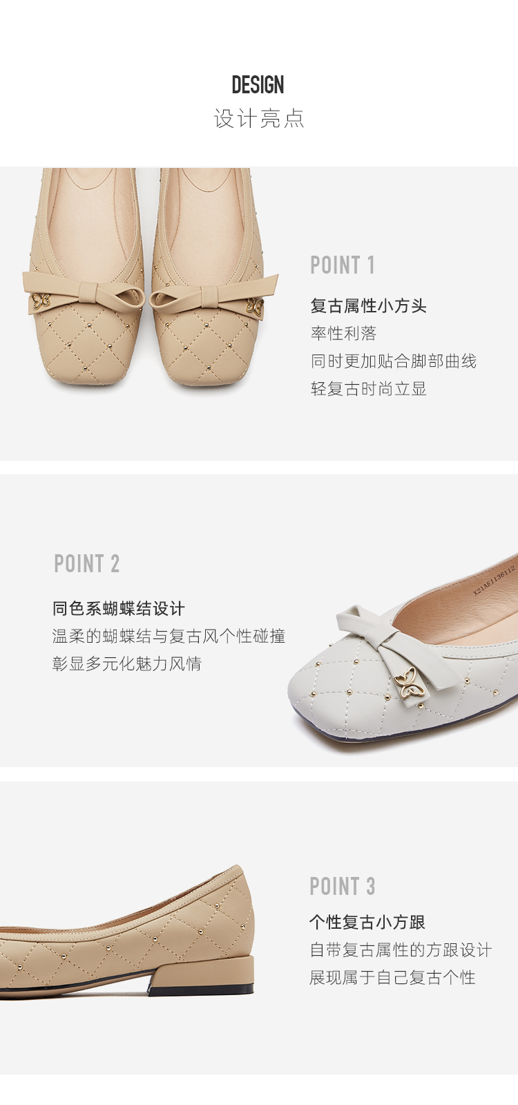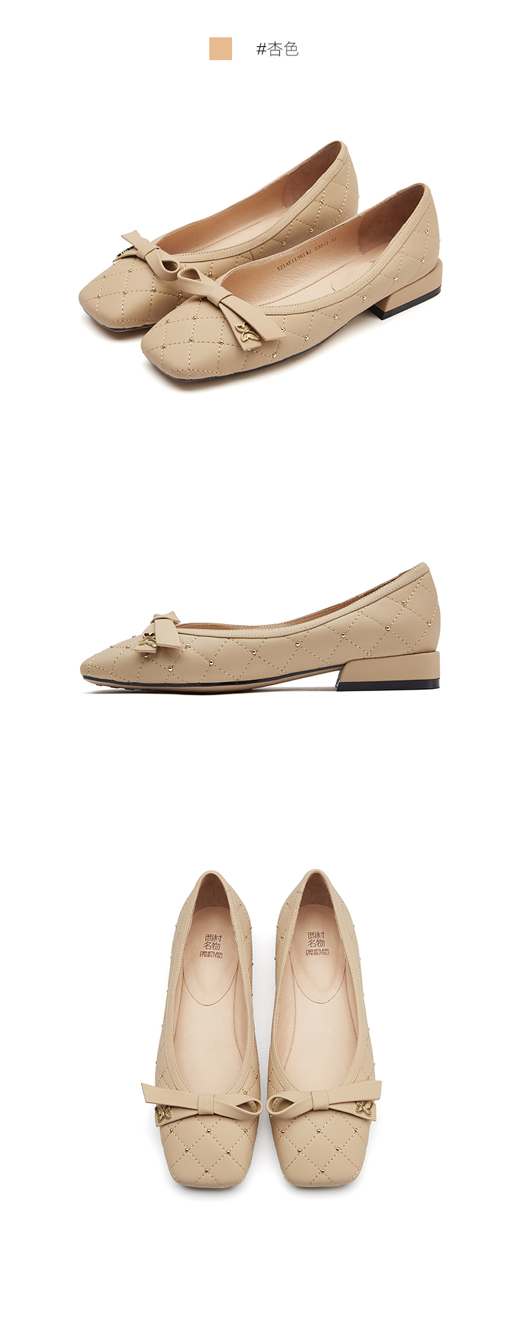 西村名物2021春季新款低跟单鞋浅口蝴蝶结甜美百搭温柔瓢鞋X21AE11361