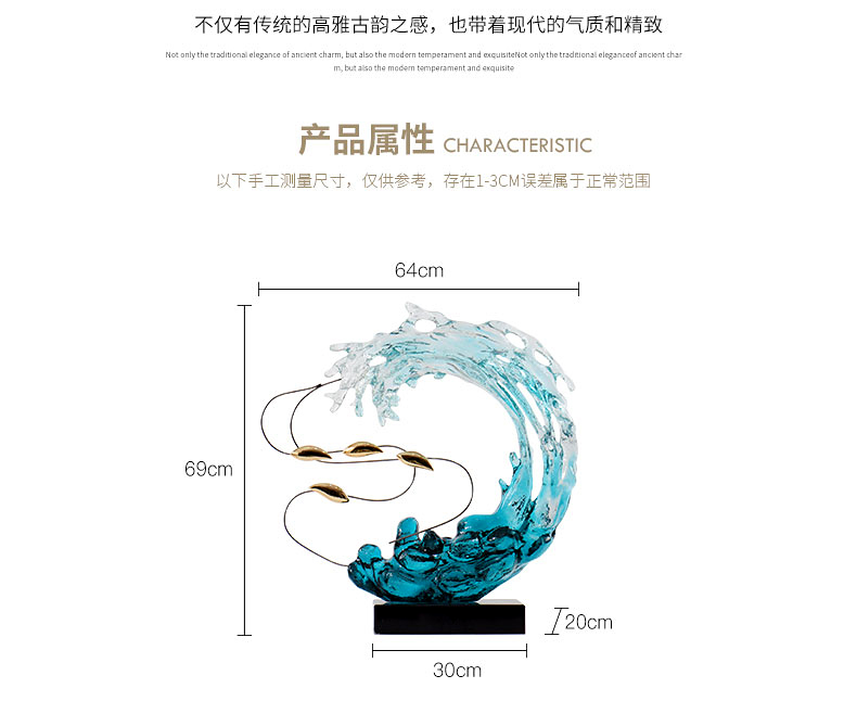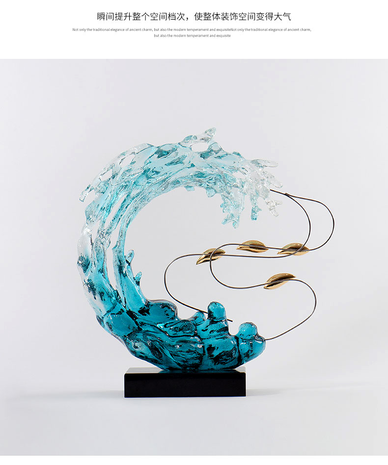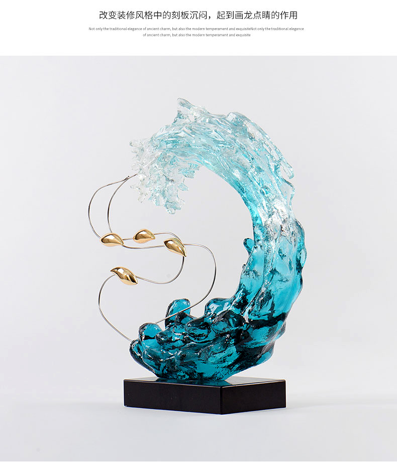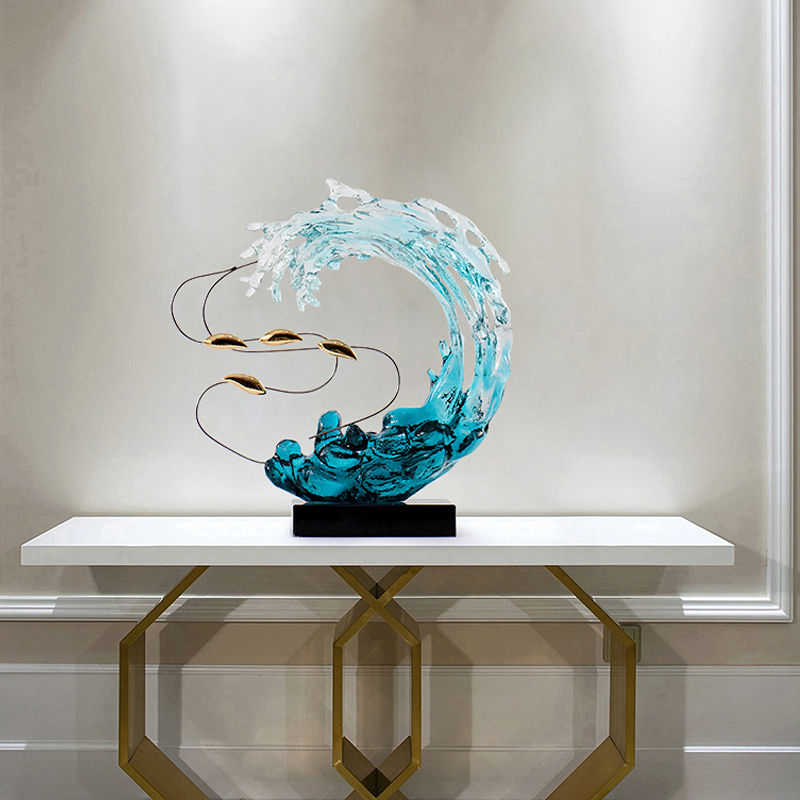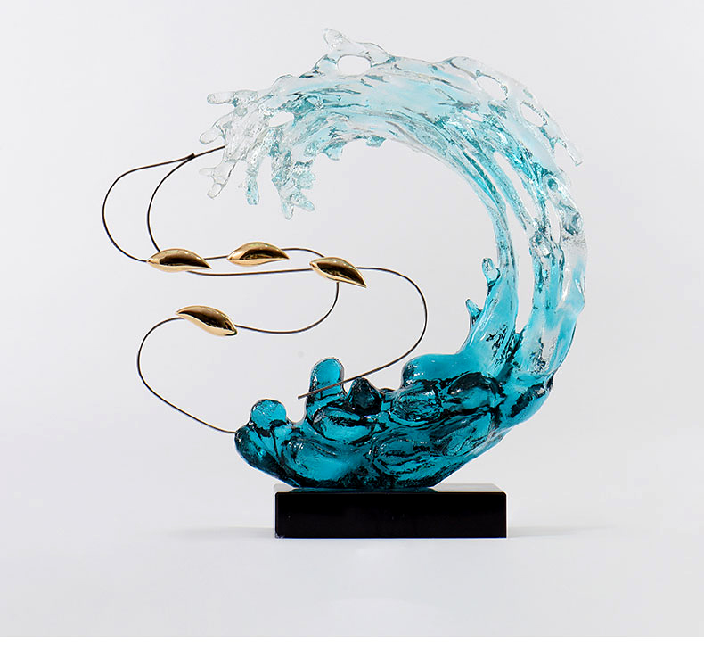BGT浪花游鱼琉璃艺术摆件现代轻奢居家酒柜玄关办公室装饰品