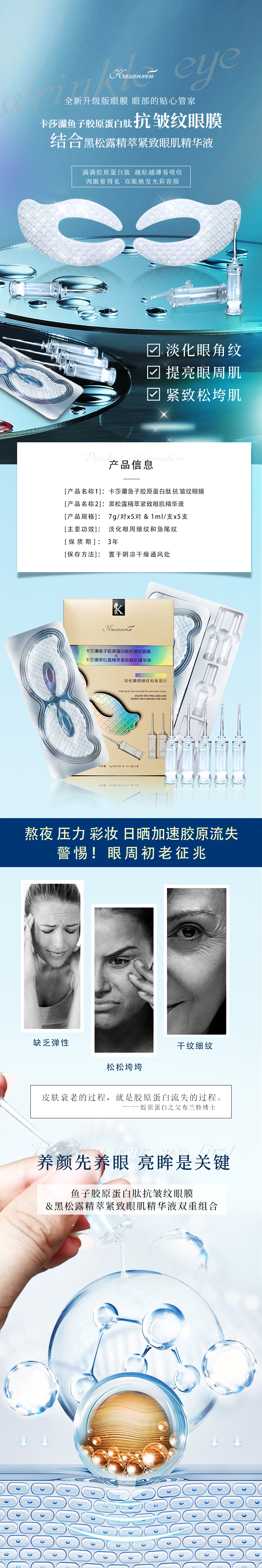 卡莎灡鱼子胶原蛋白肽抗皱纹眼膜,改善眼周肌肤。