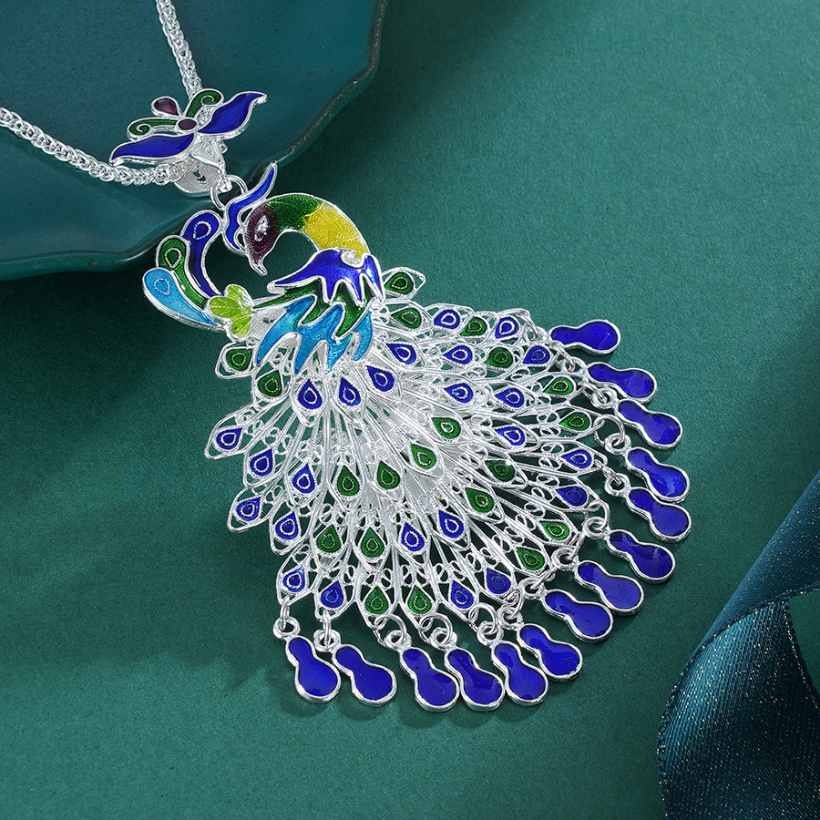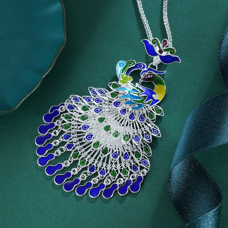 【翠羽】子佩集S990银花丝孔雀吊坠【WBCSKQDZ】 (不含链)珐琅彩花丝2303