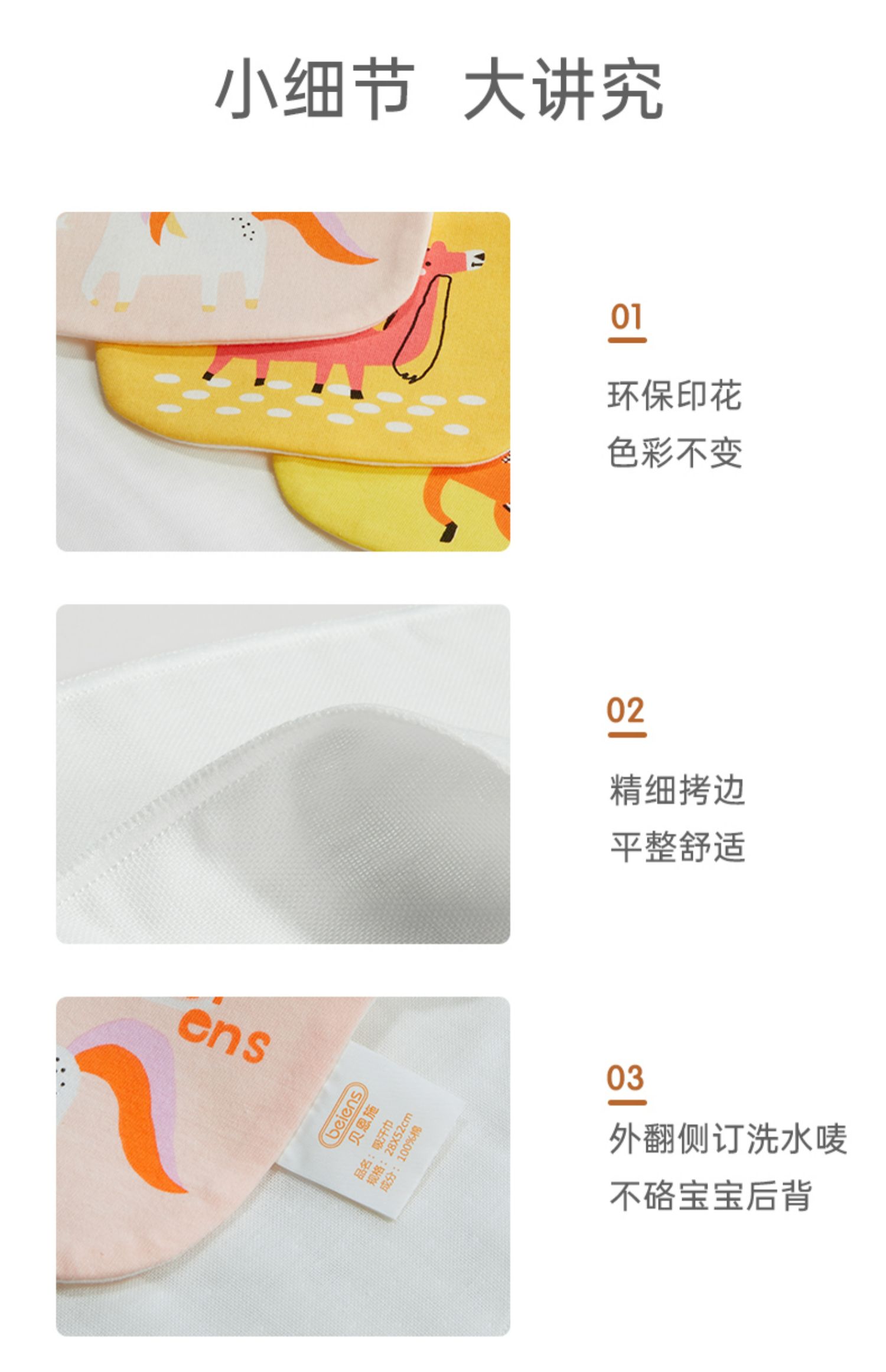 贝恩施儿童纯棉吸汗巾幼儿园婴儿隔汗巾宝宝夏季薄款大号男童女童