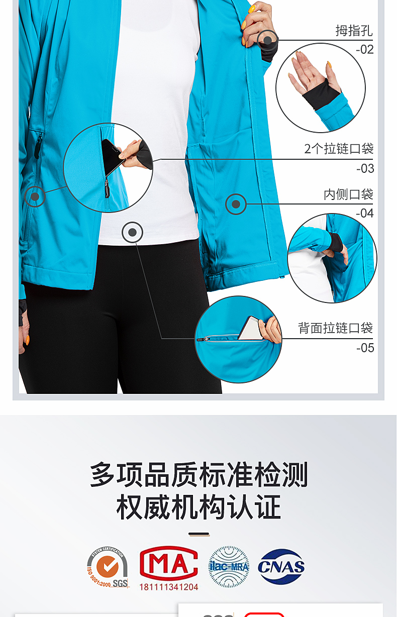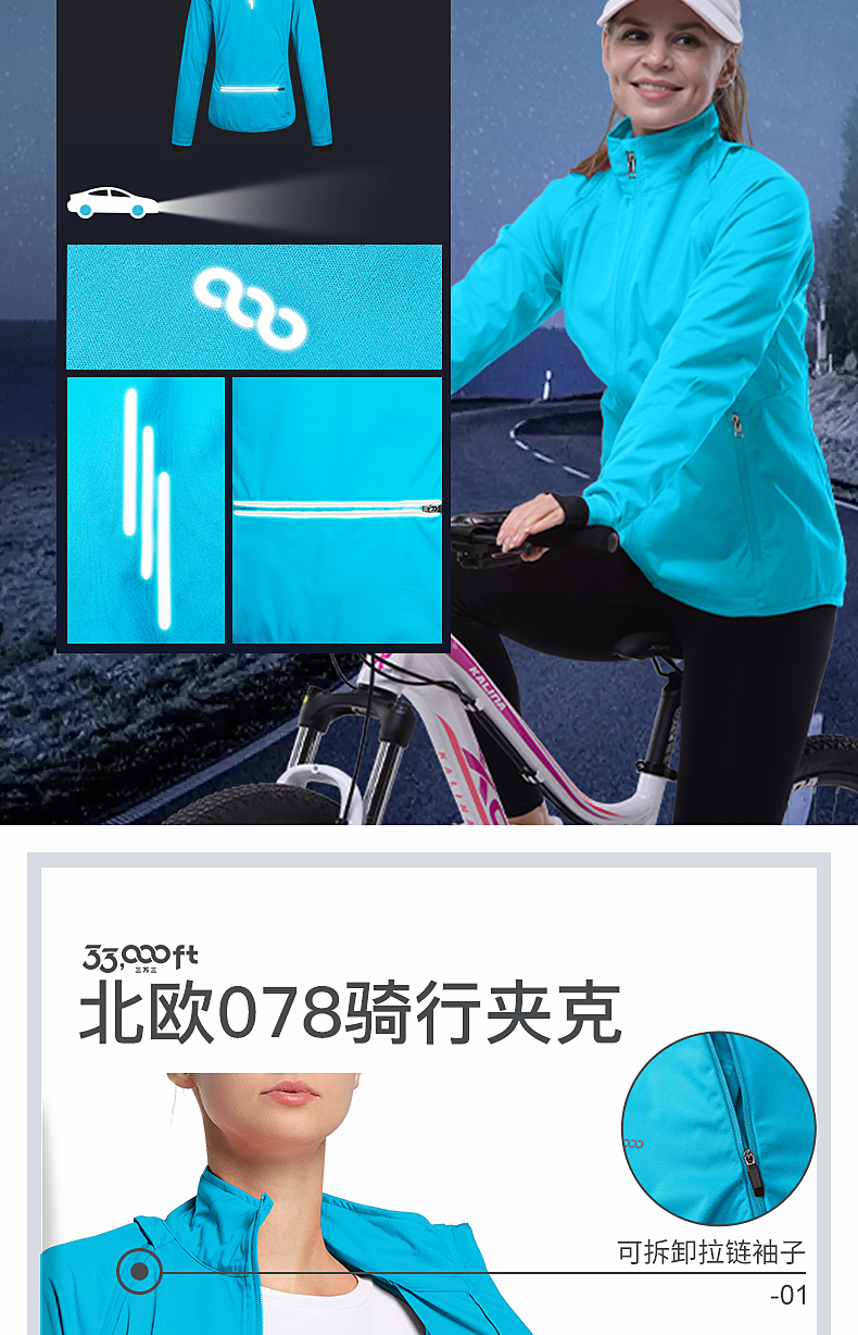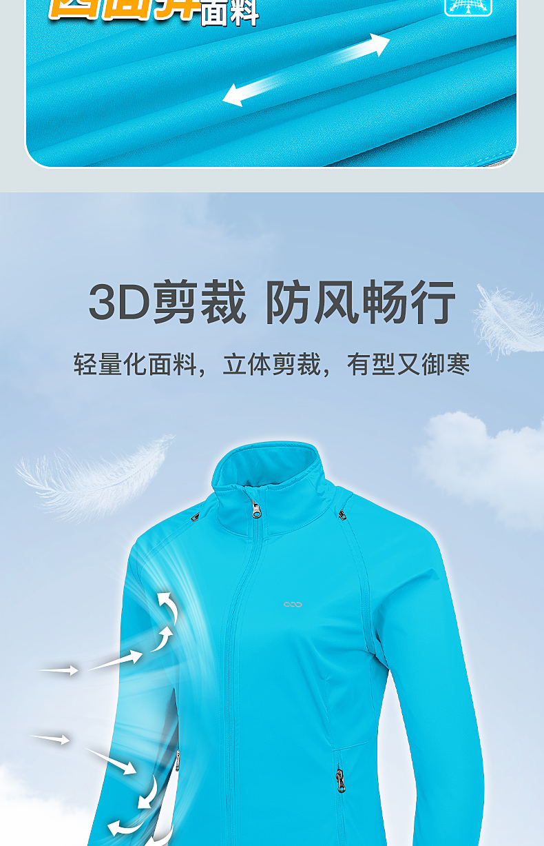 【199秒】33000ft骑行软壳衣女秋立领可拆卸马甲大码多口袋运动登山跑步上衣