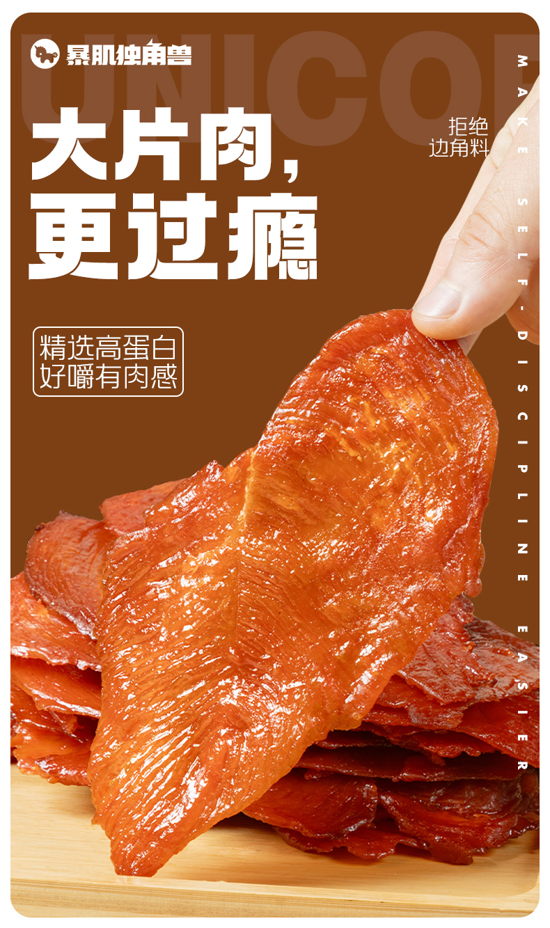 暴肌独角兽慢烤鸡胸肉即食麻辣鸡排解馋小吃高蛋白健身休闲零食品