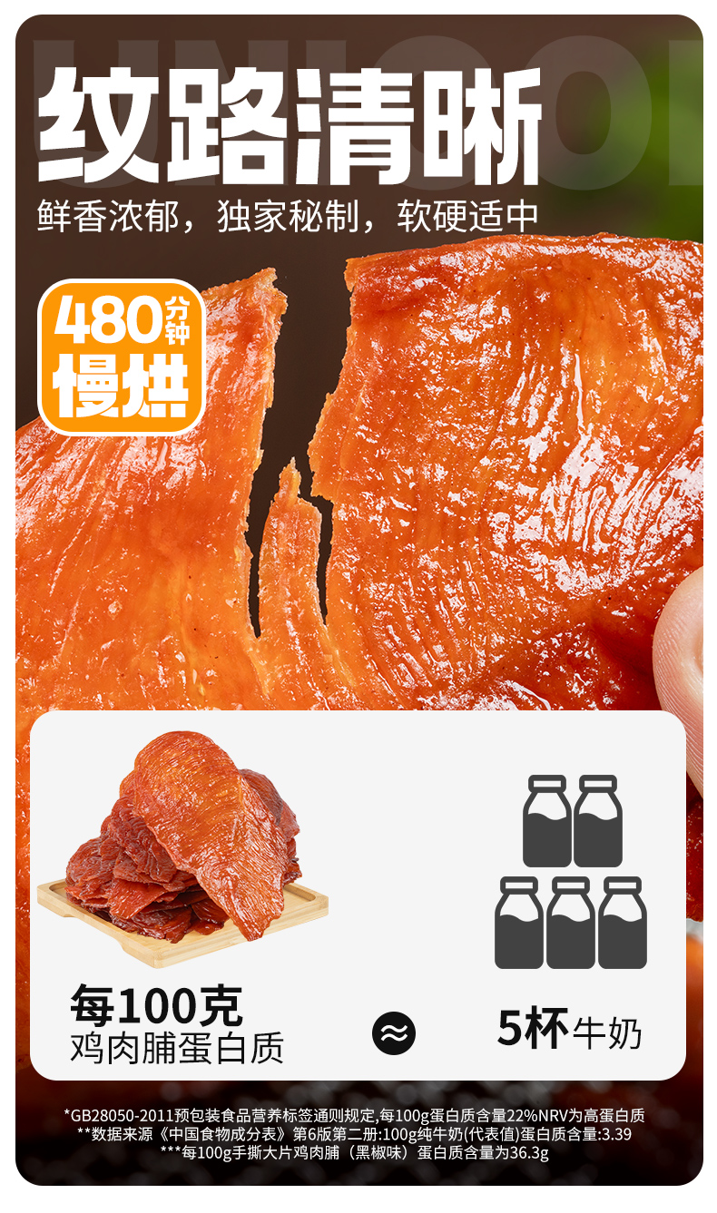 暴肌独角兽手撕鸡肉脯干原切大片减低高蛋白健身解馋脂休闲零食品