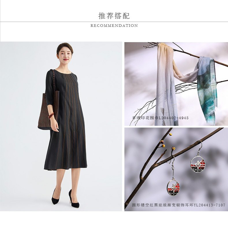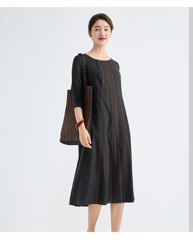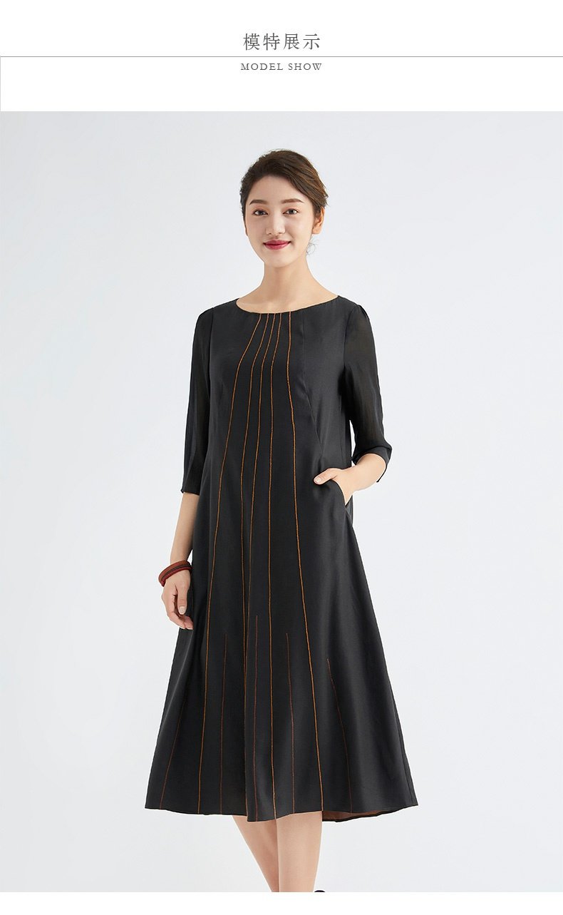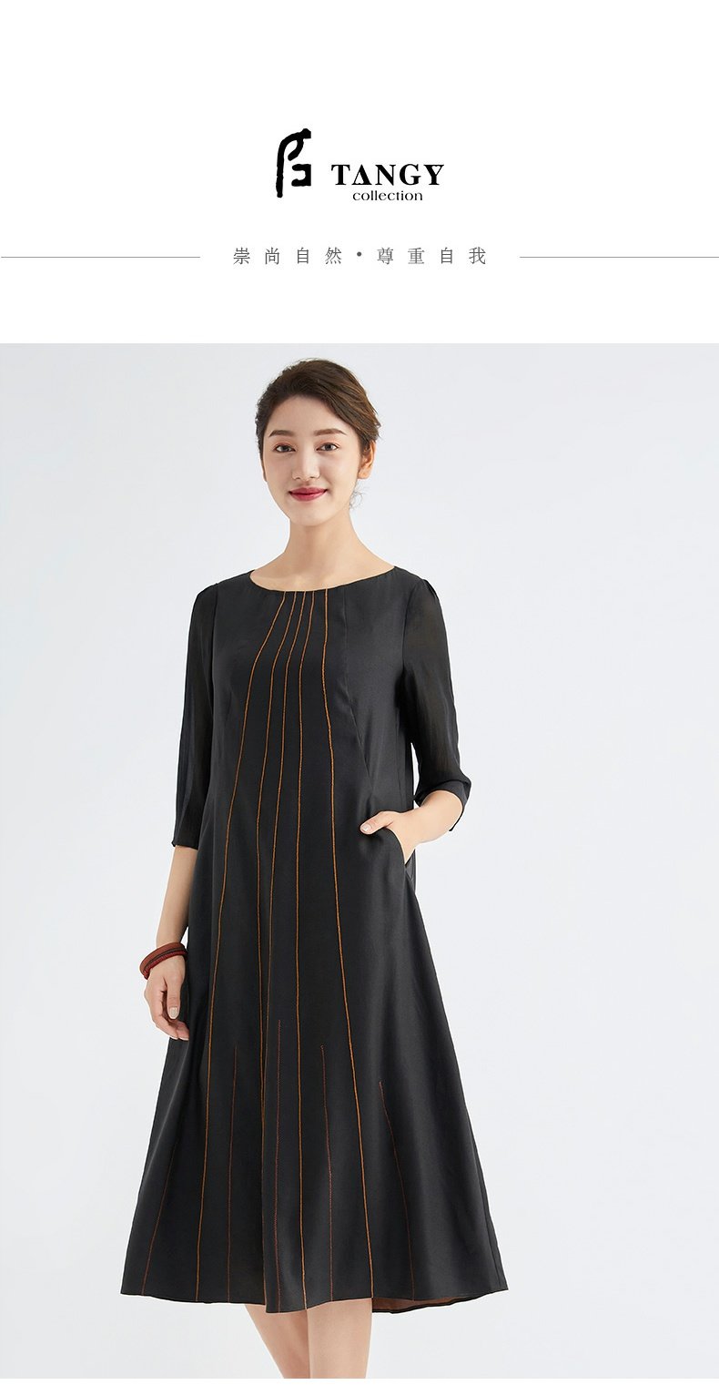 TANGY Collection/天意精品春秋新品林隐系列真丝线迹莨绸连衣裙