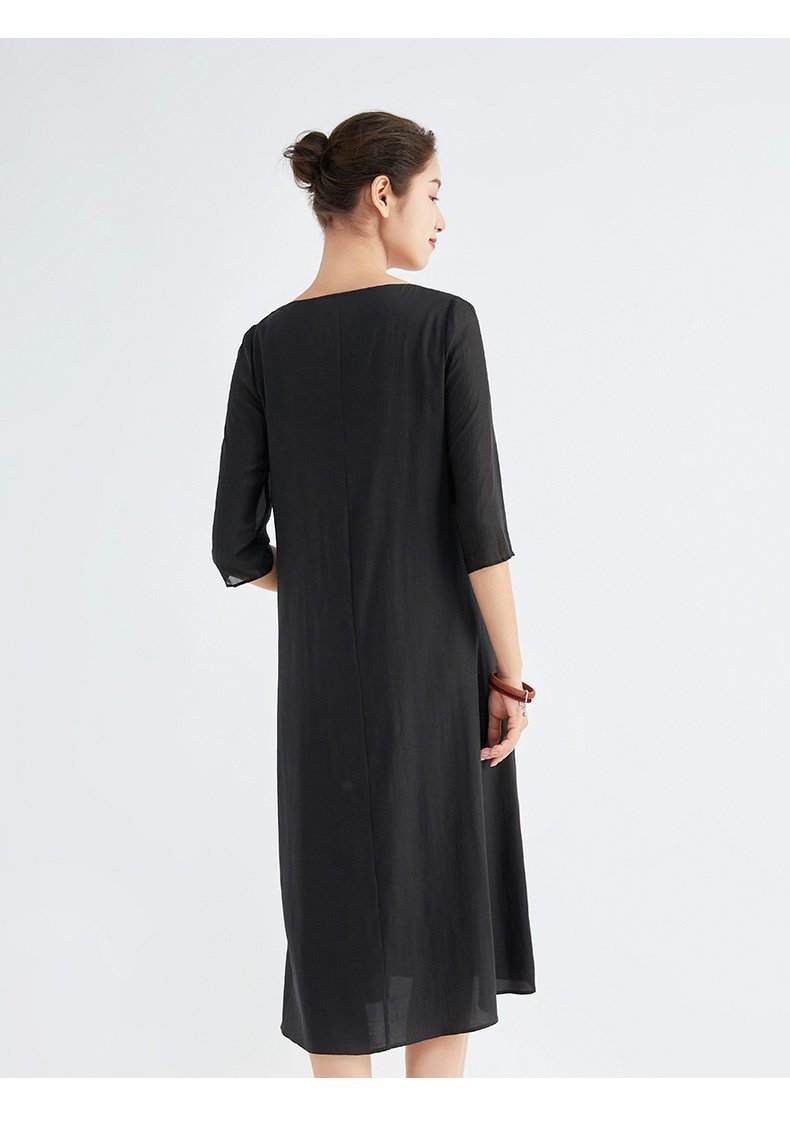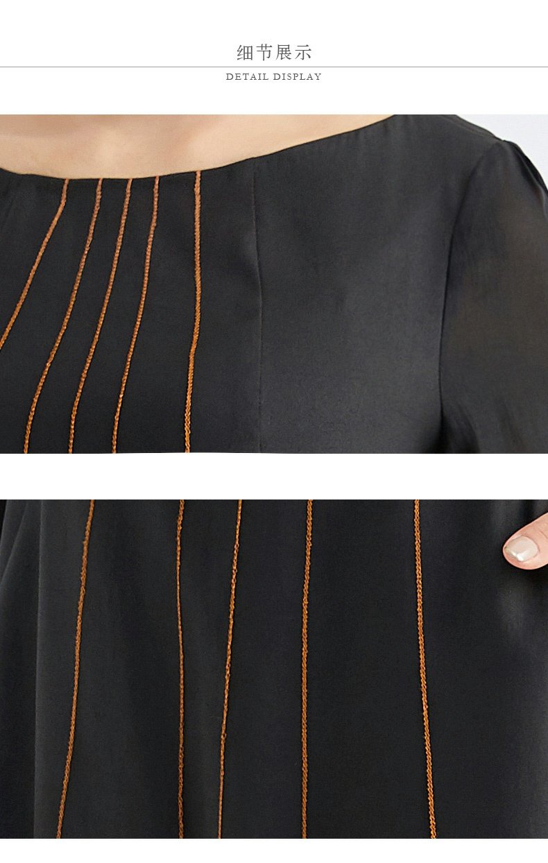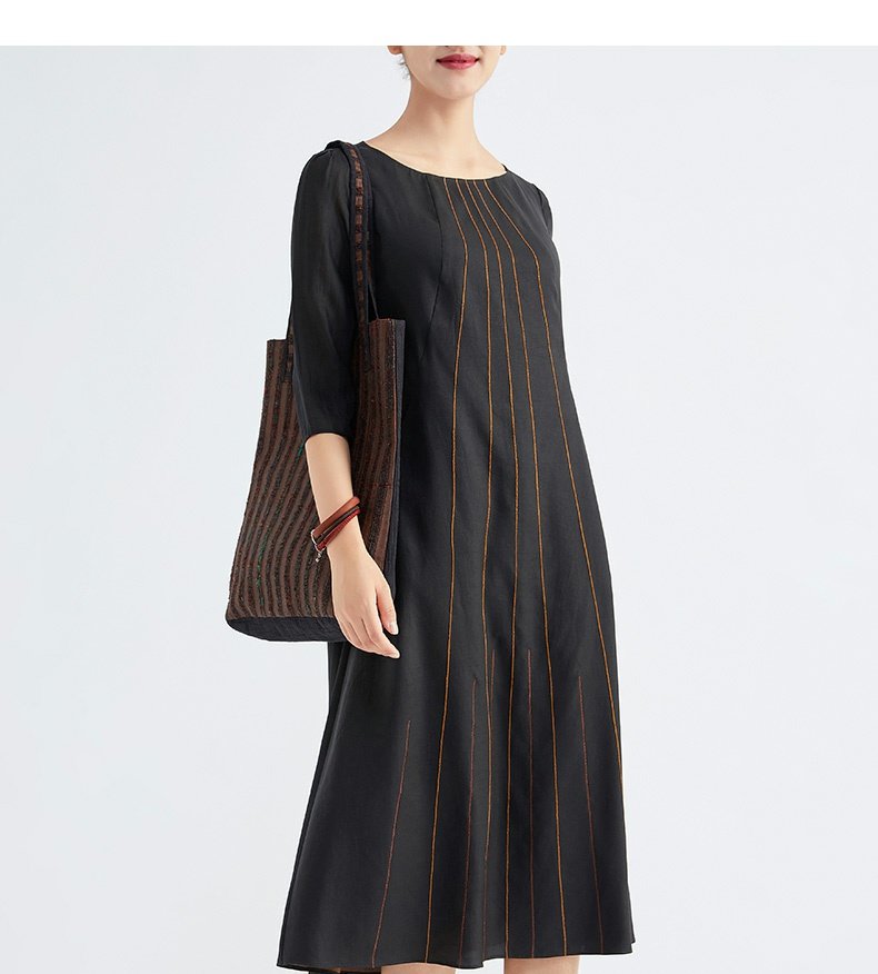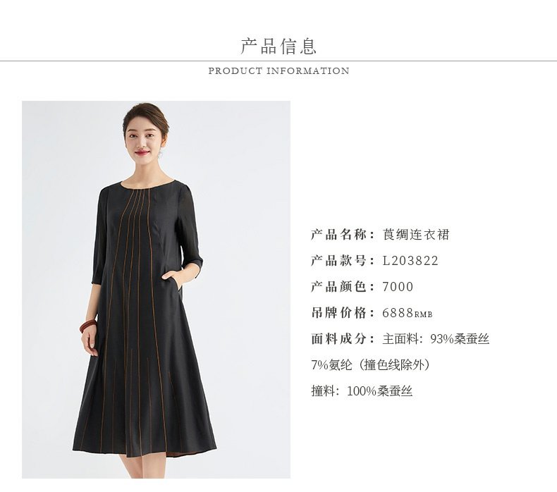 TANGY Collection/天意精品春秋新品林隐系列真丝线迹莨绸连衣裙