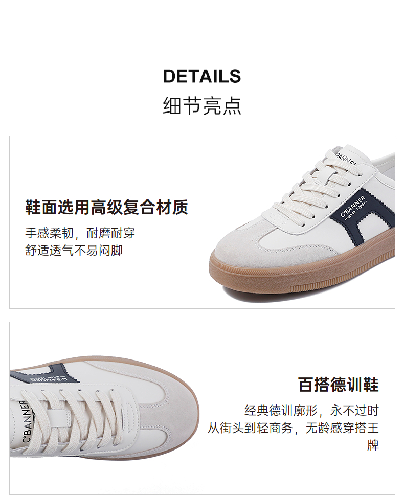 千百度秋季百搭德训鞋舒适低跟强韧橡胶底男鞋A25419261