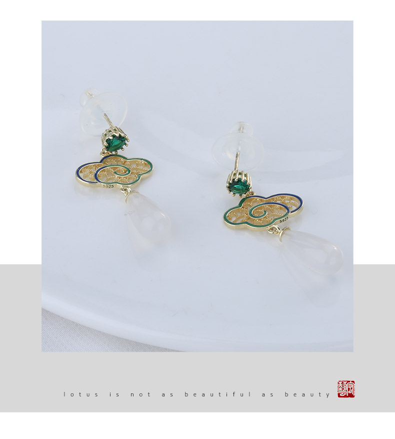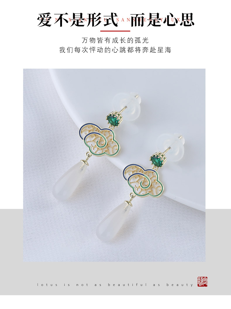 【宏艺珠宝】玉坠云纹·银s925耳饰