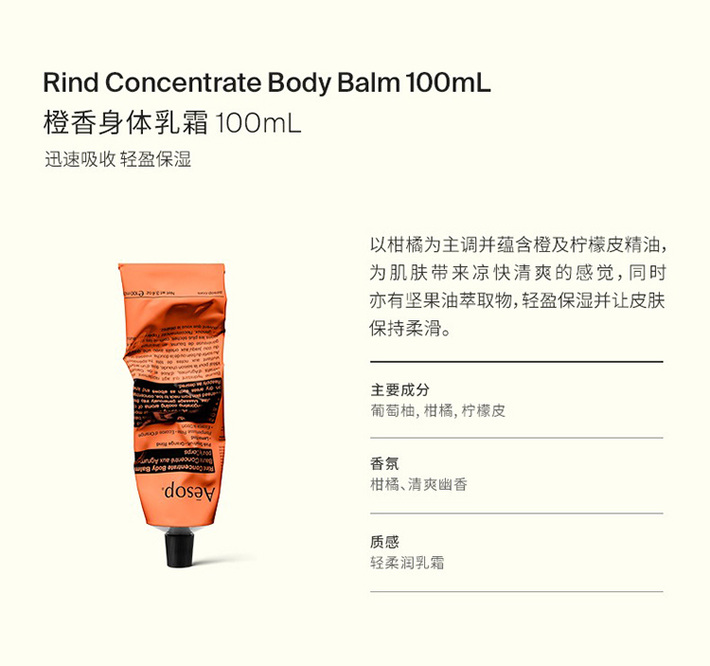 【保税仓直发】Aesop 伊索 橙香身体乳霜 100ml