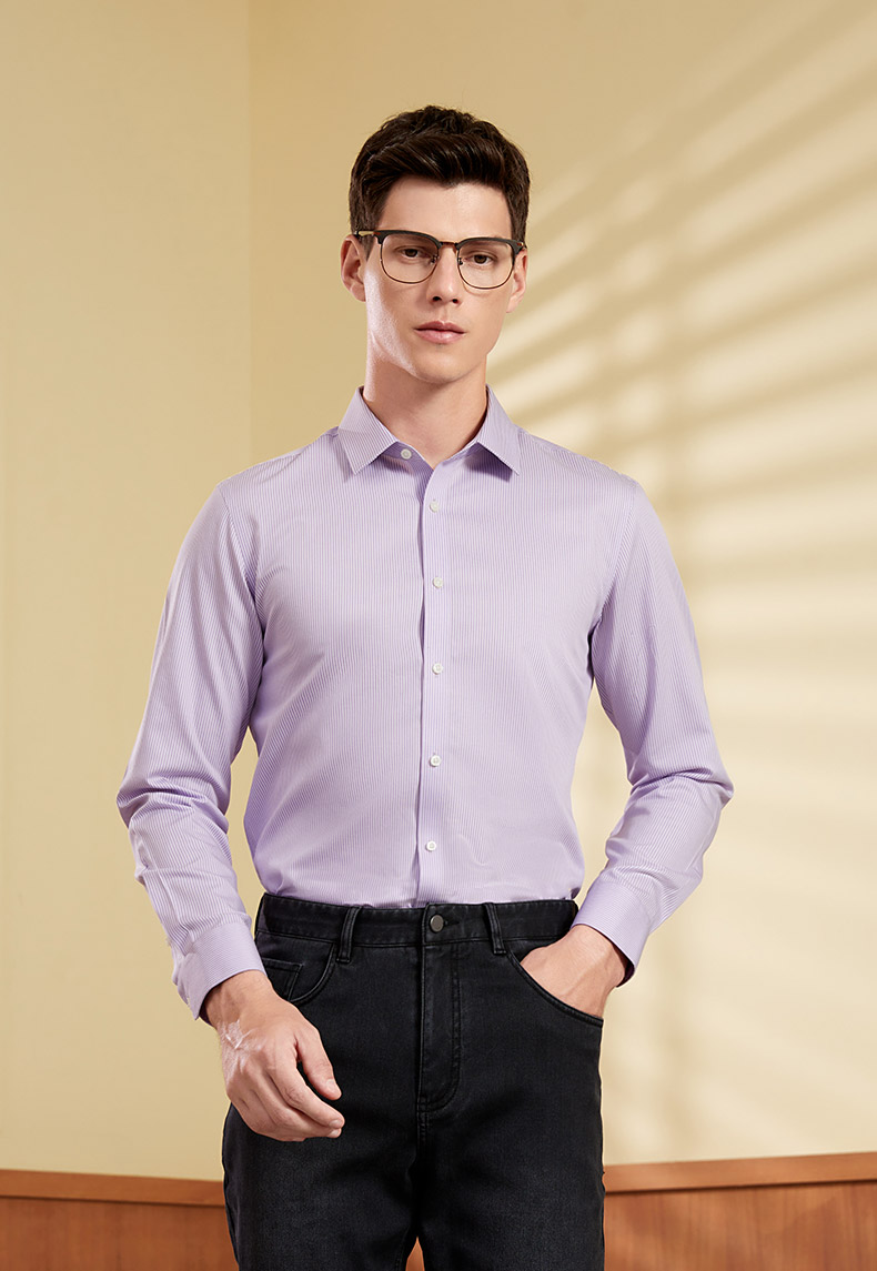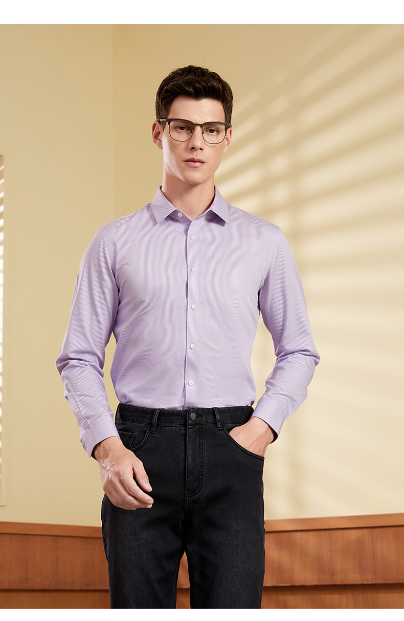 【商场同款】MD名盾男士免烫衬衫2024春季新品职业条纹衬衣31563