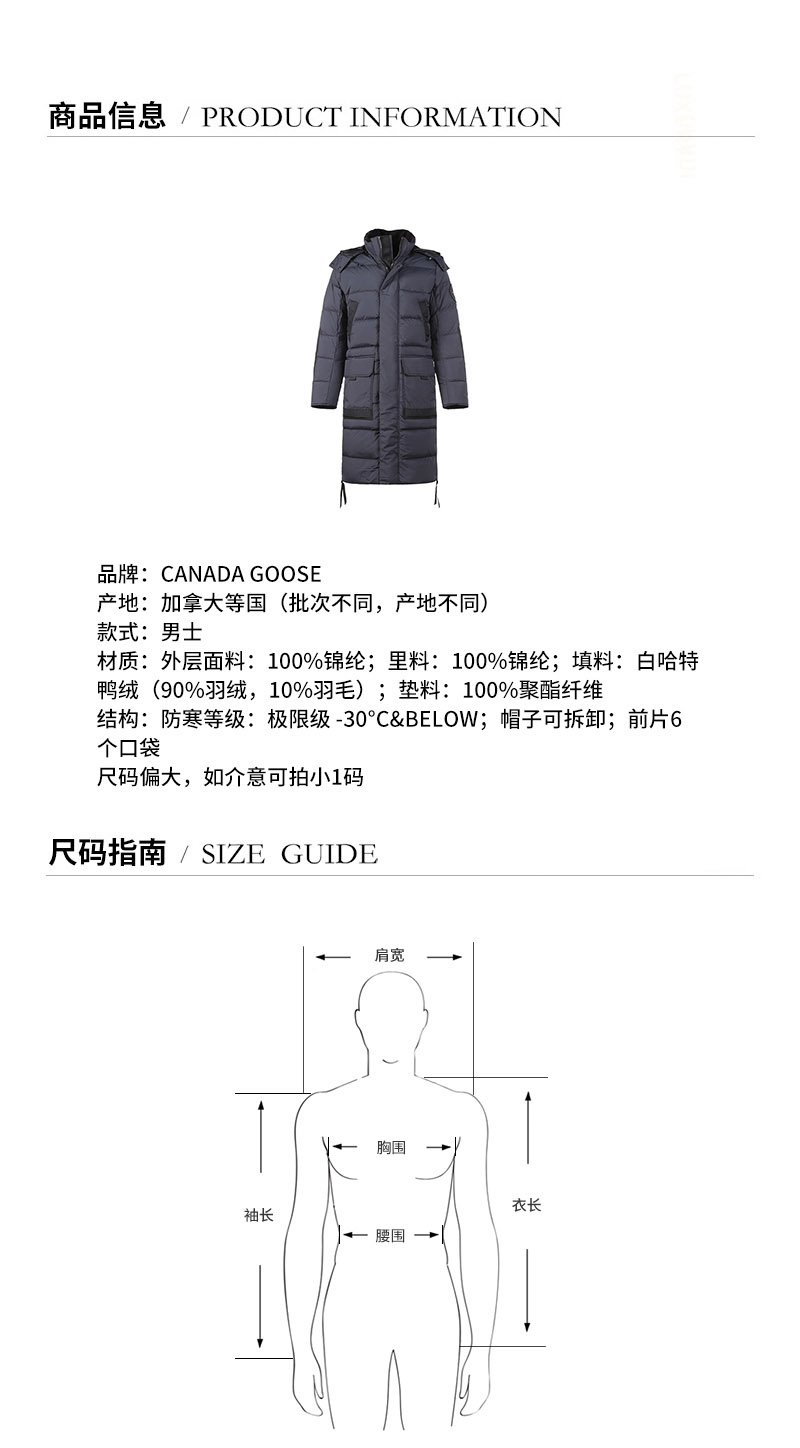 CANADA GOOSE/加拿大鹅【21秋冬新款】男士羽绒服 男士锦纶长款WARWICK派克大衣鸭绒连帽羽绒服外套 2611MB