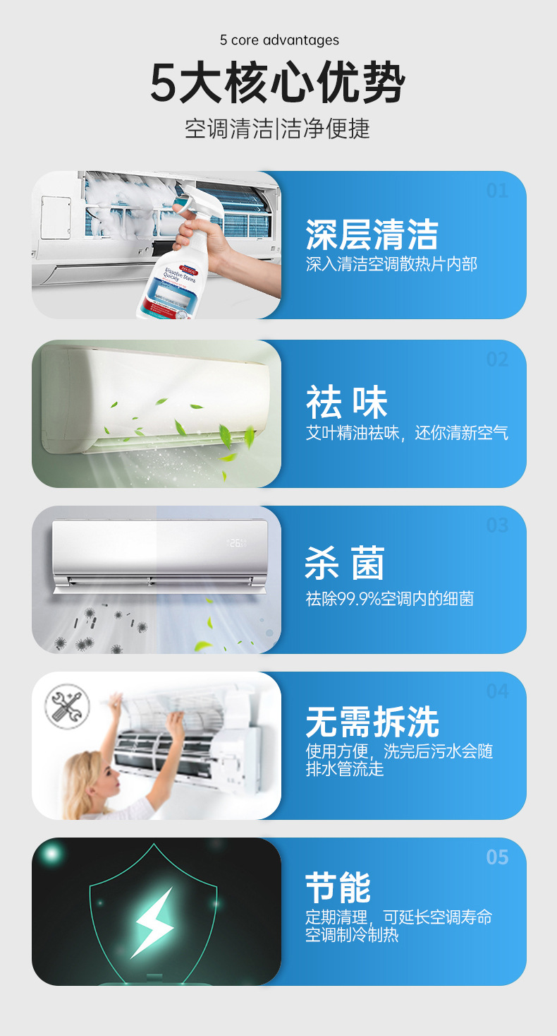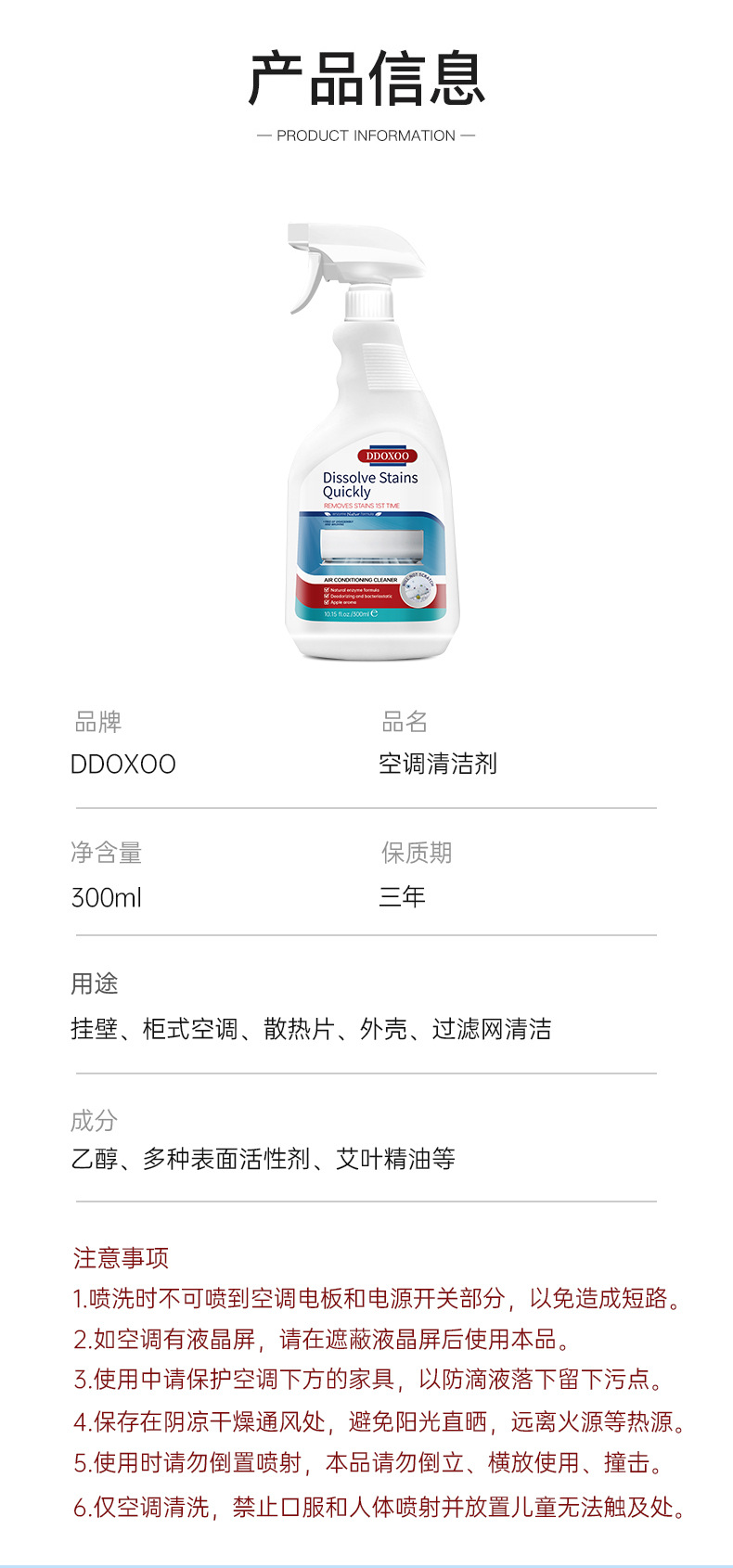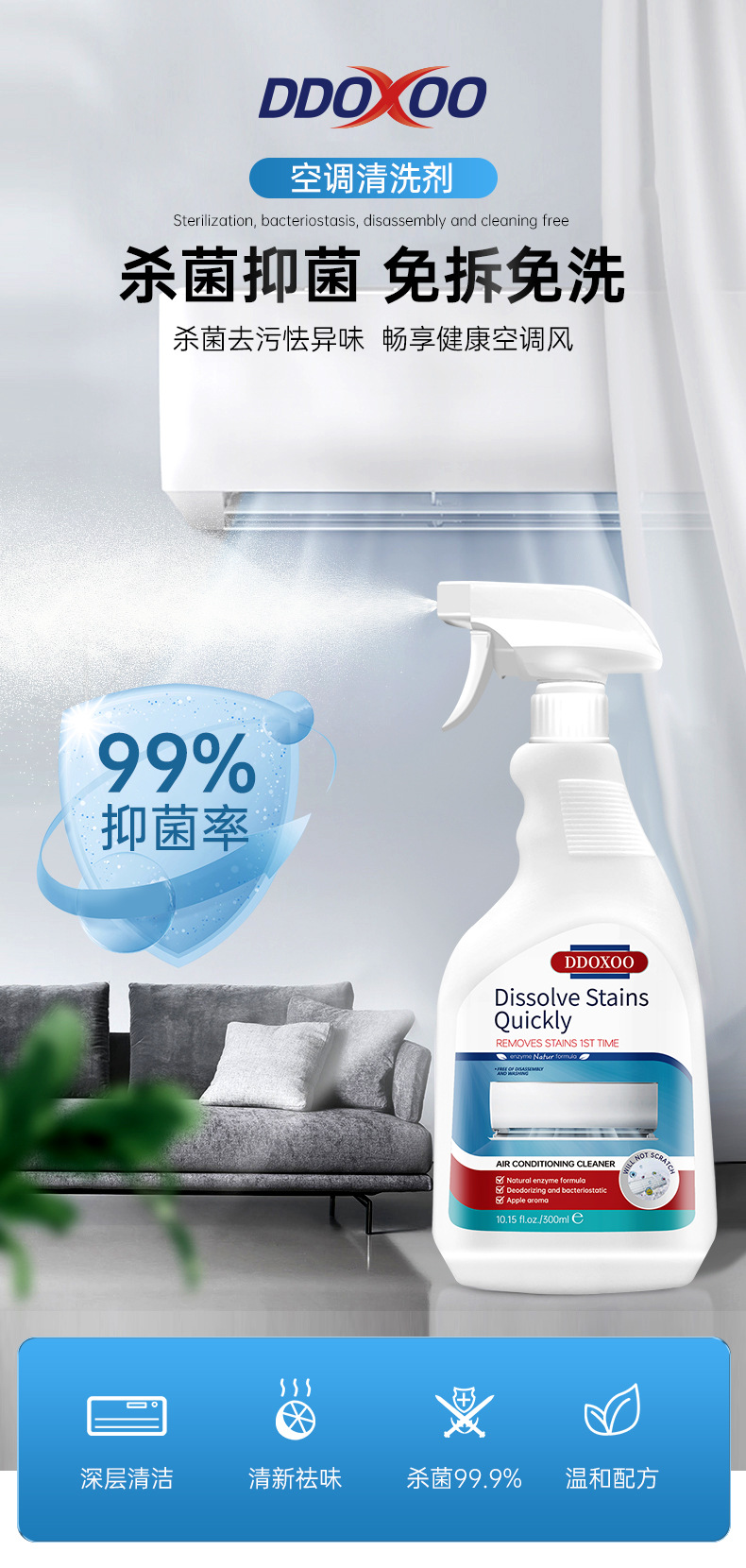 【3瓶家庭装】DDOXOO空调清洗剂 家用免拆免洗 家用挂机通用 yi菌去异味除垢泡沫空调清洗剂300ml/瓶