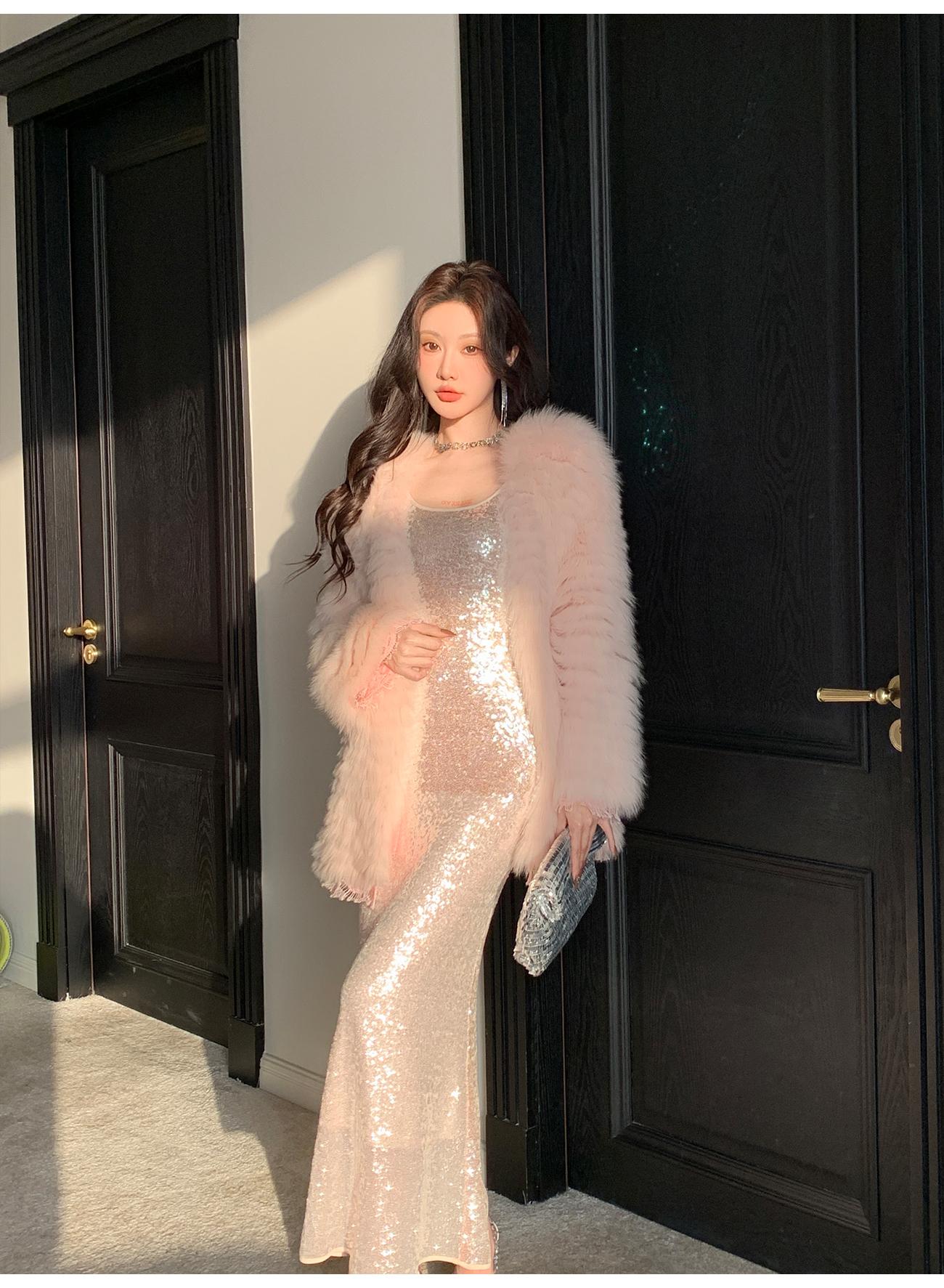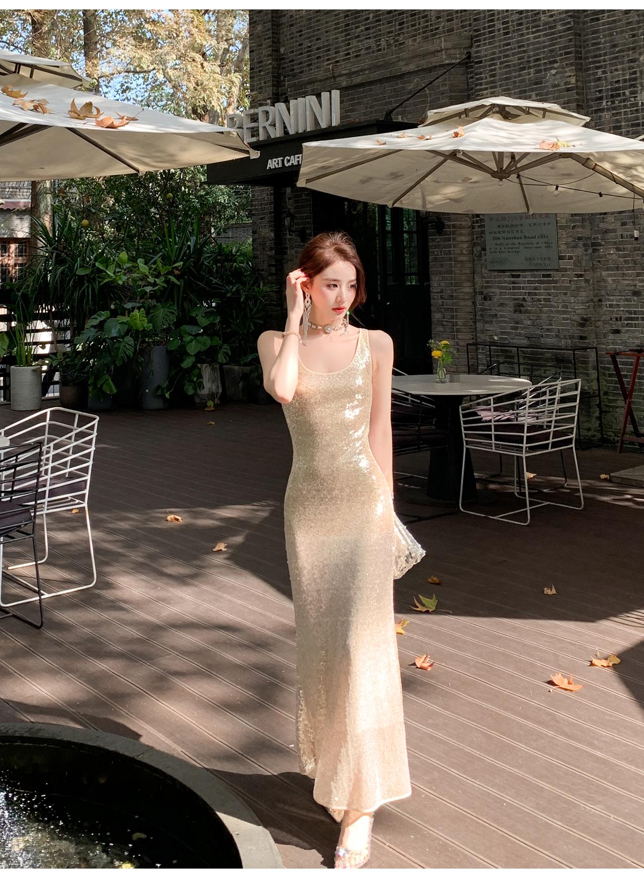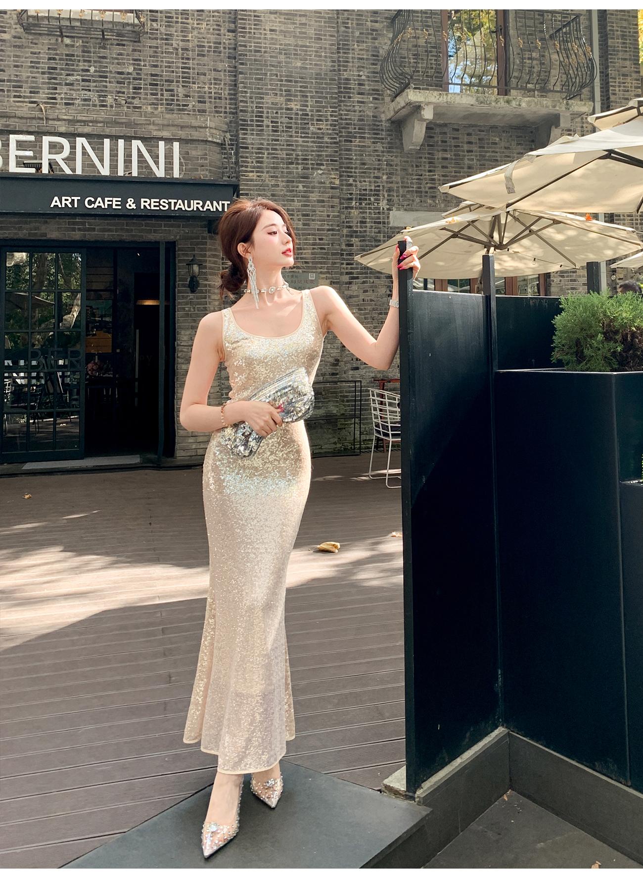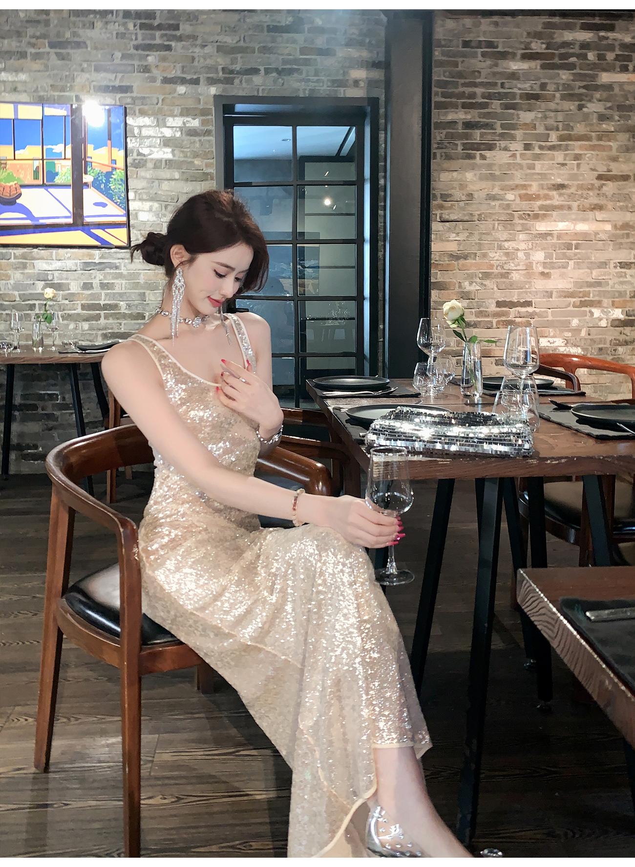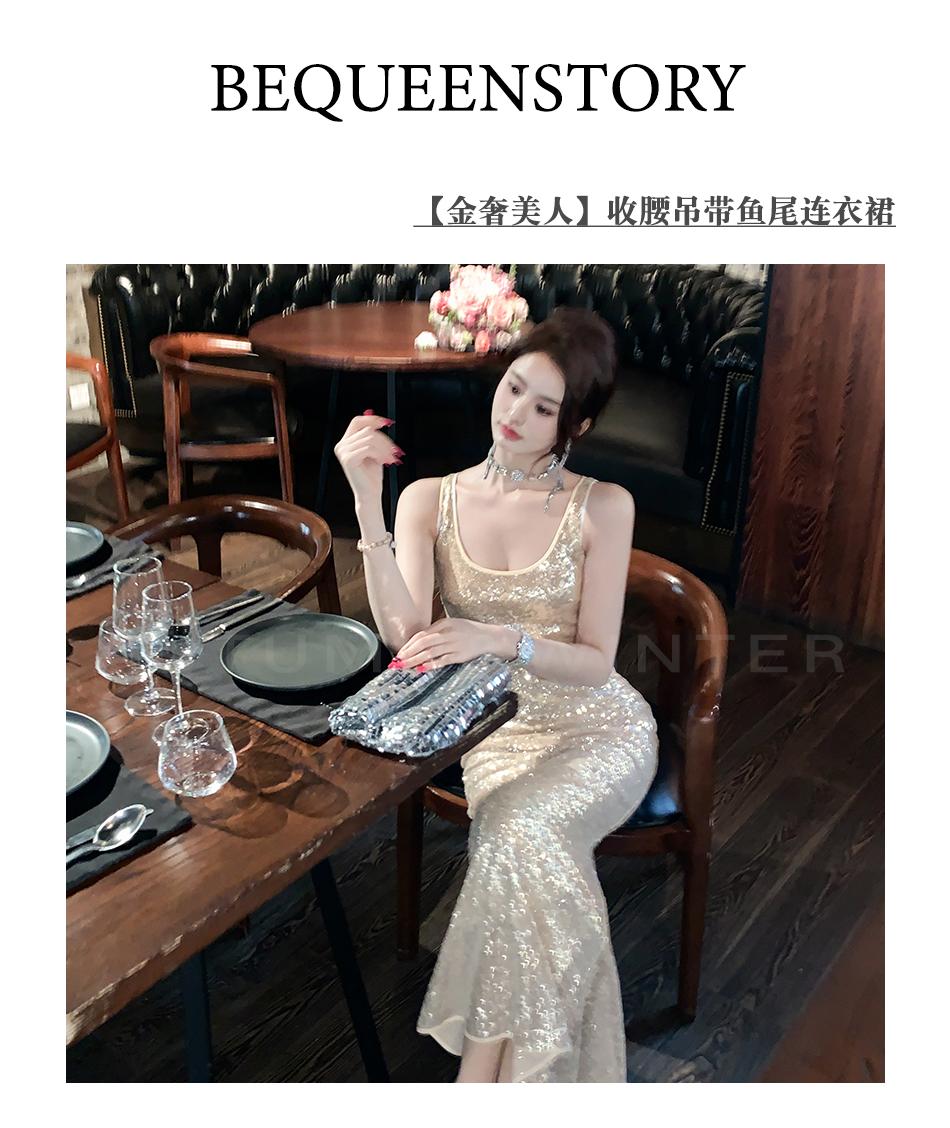 【孤品样衣,不退不换】【金奢美人】轻奢气质显瘦性感收腰吊带鱼尾连衣裙