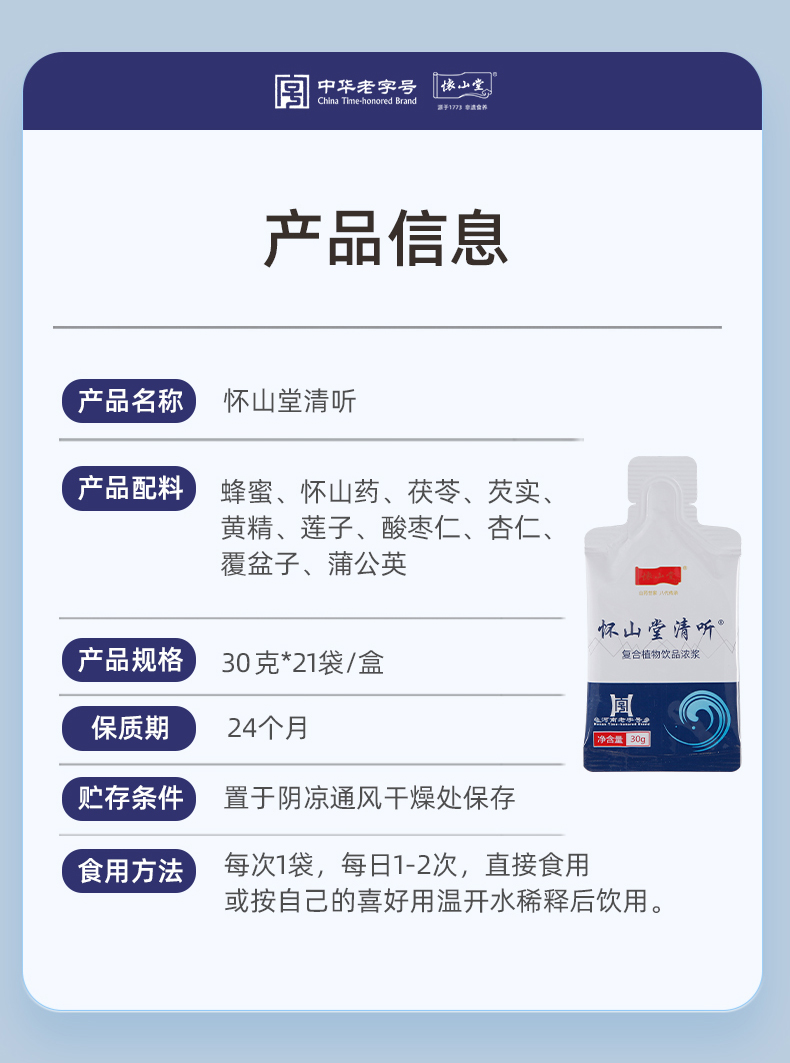 怀山堂 清听复合植物饮品浓浆630g全生命周期铁棍山药制品独立小包装科学定量