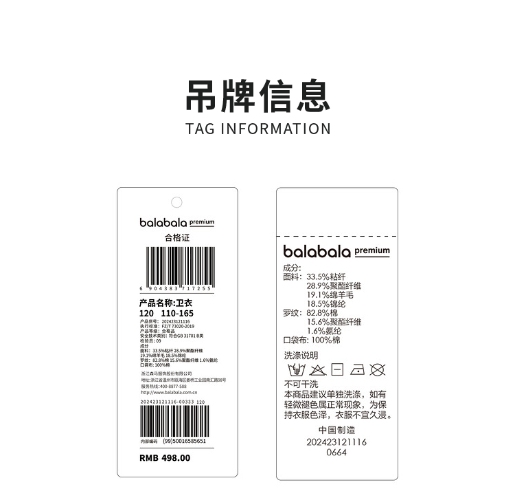 【premium】巴拉巴拉高端线冬摩登庄园系列男羊毛刺绣长袖卫衣