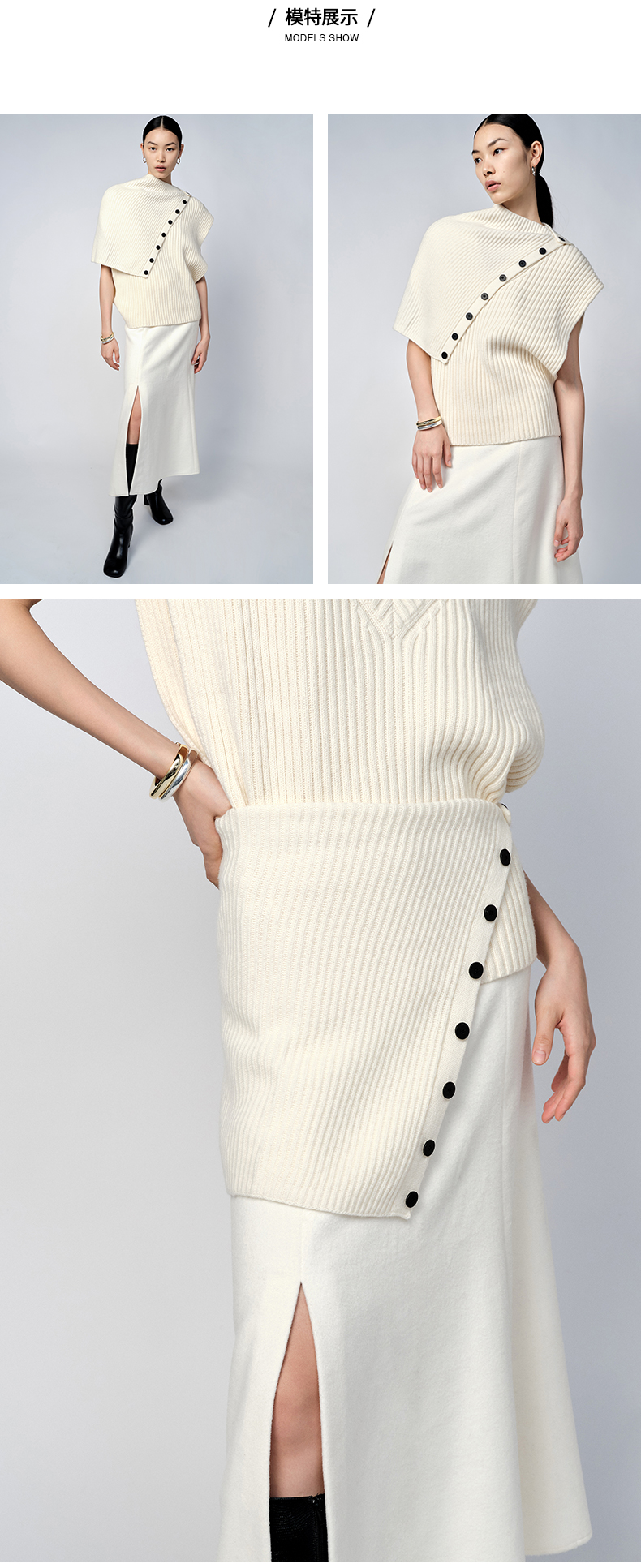 HIDEMI 美利奴羊毛简约纽扣设计感多穿式围脖