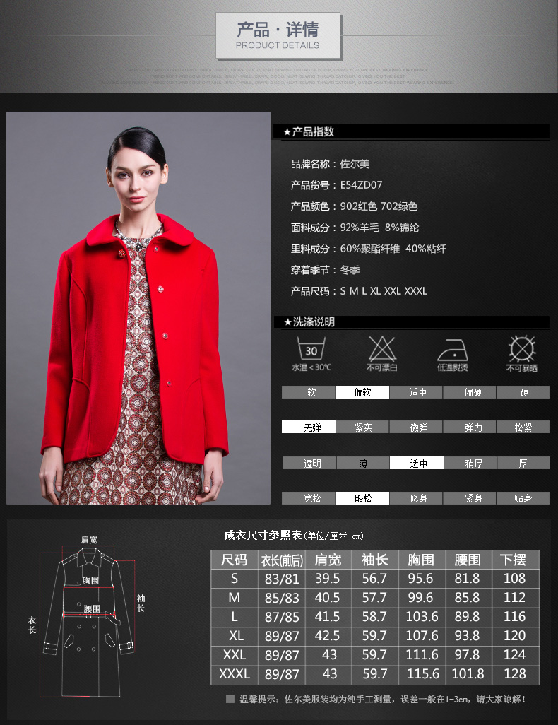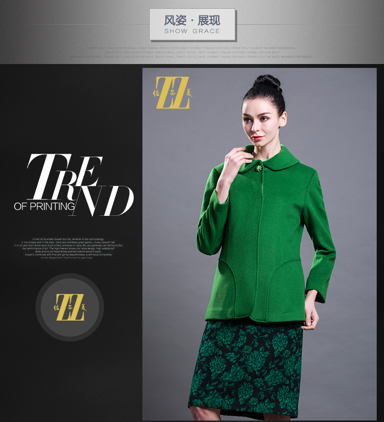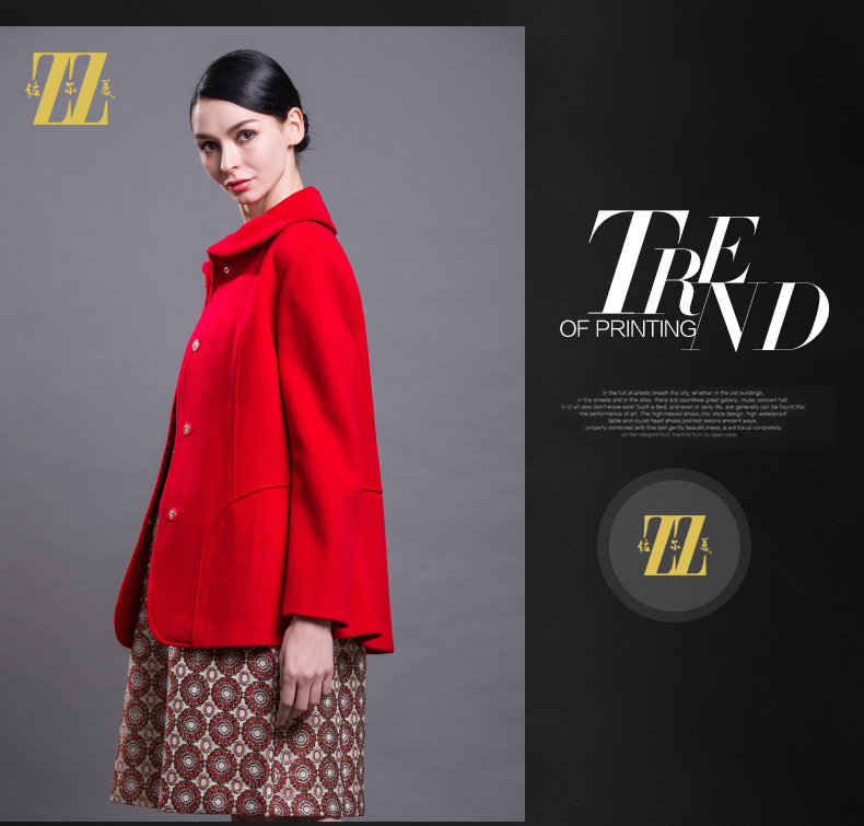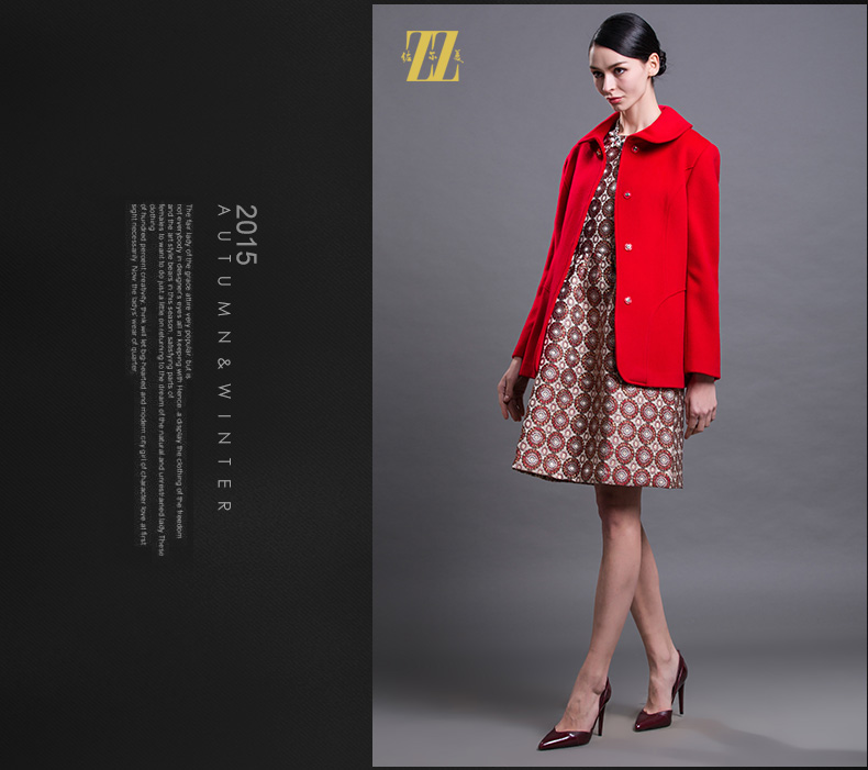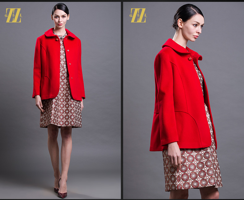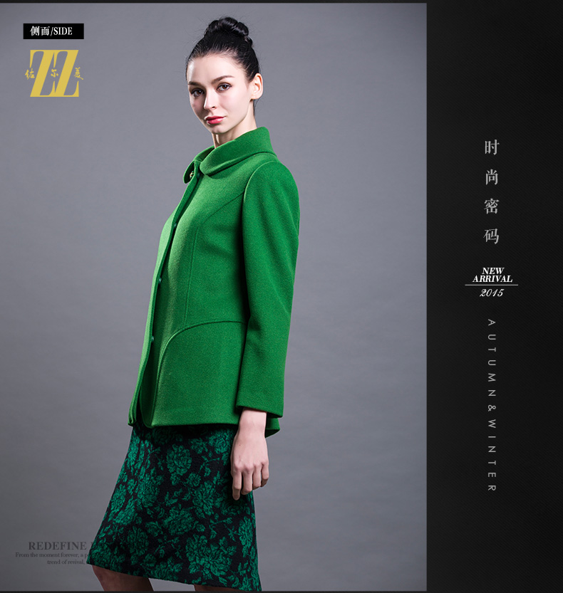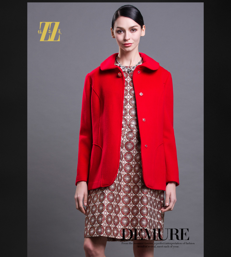 佐尔美新品秋冬新品女装短款纯色花案妈妈装毛呢外套E64ZD43