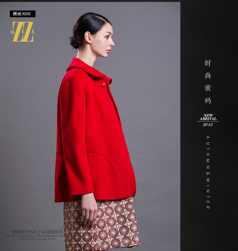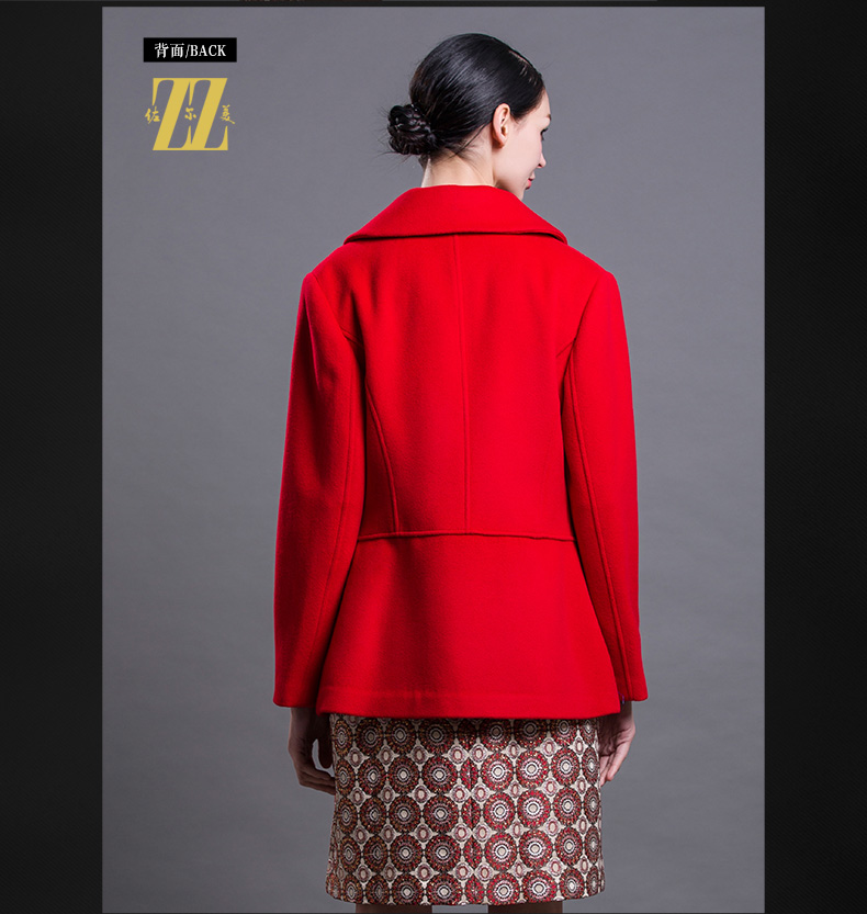 佐尔美新品冬季女装短款毛呢双排扣西装领呢子大衣外套E64ZD25