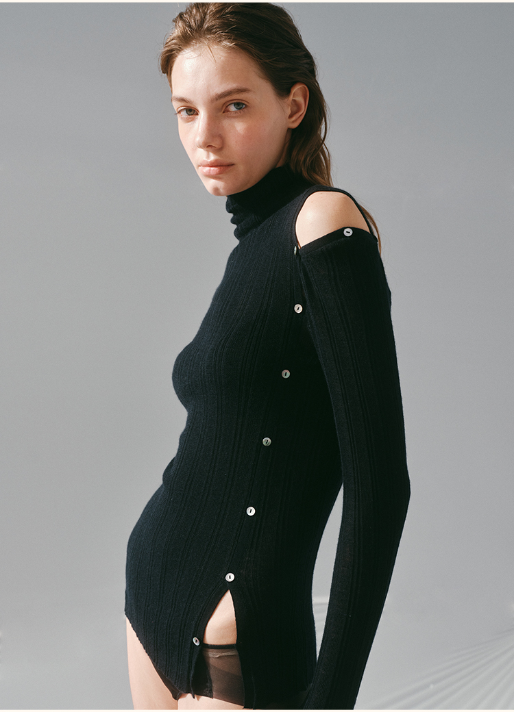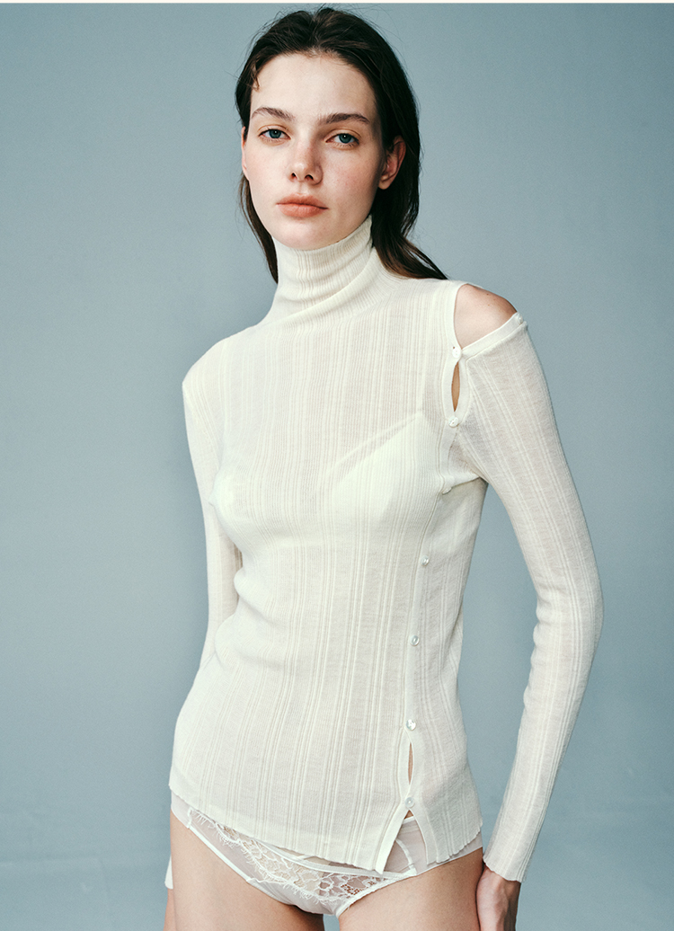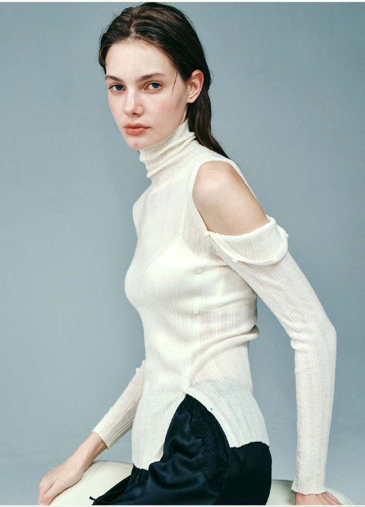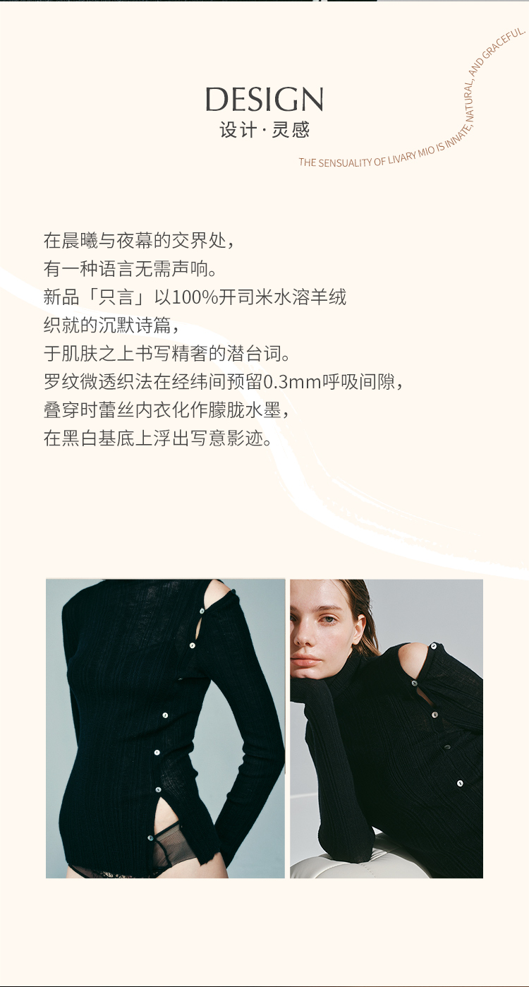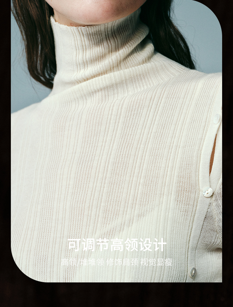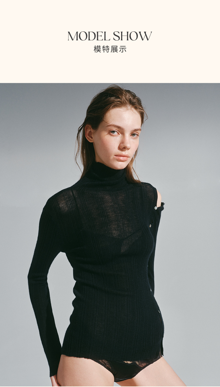里性 LIVARY MIO 只言 高领微透针织衫女秋装早秋上衣针织开衫外搭