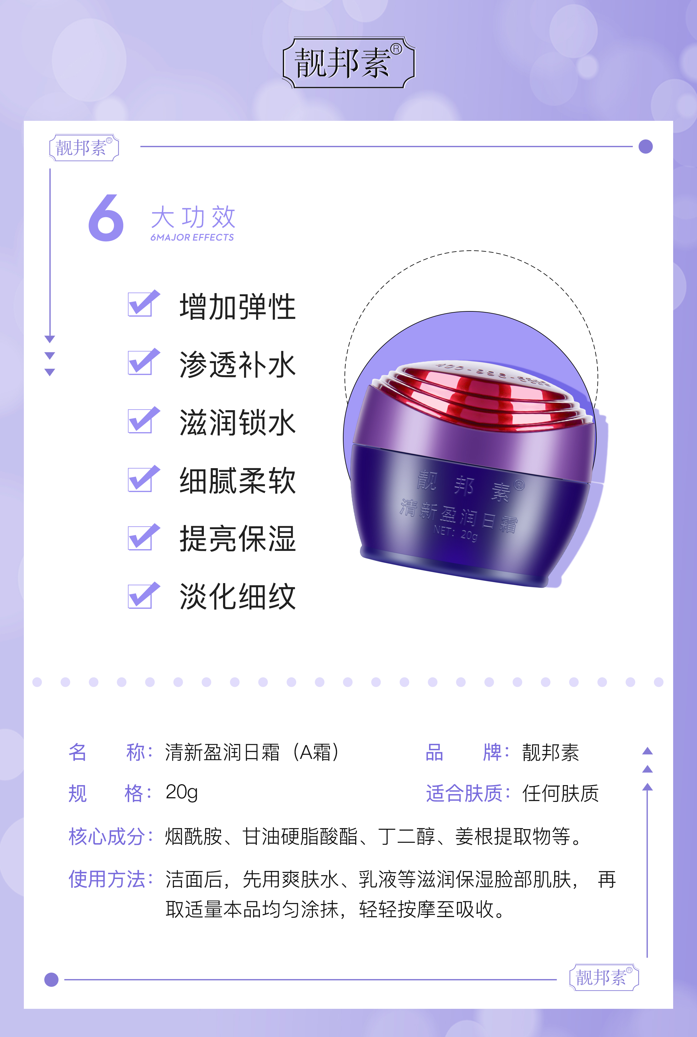 【靓邦素】清新盈润单瓶早晚霜美白祛斑白里透红 A/B/C