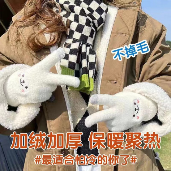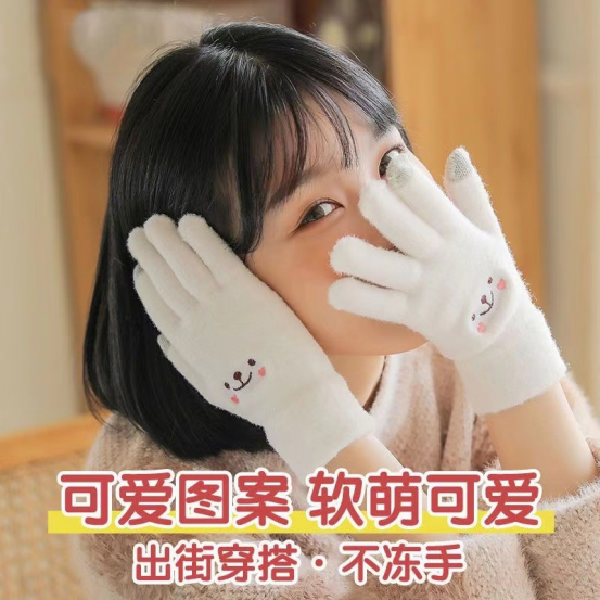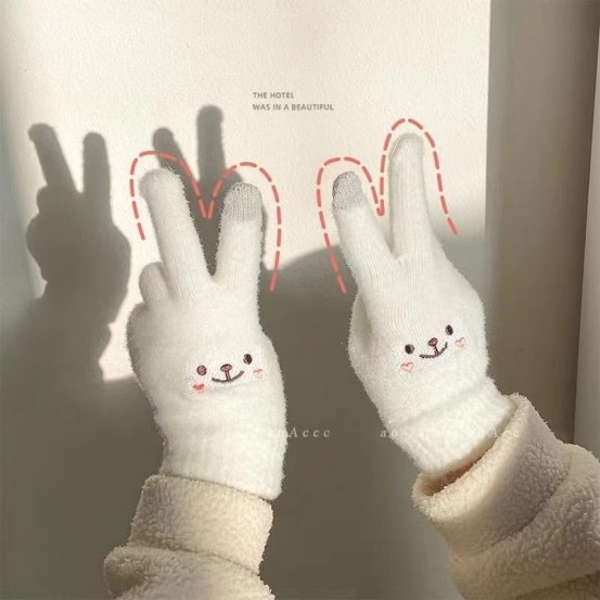 颜值与保暖并存! 手感超级软!戴上真的非常舒服暖和 而且在手腕处的设计 可以保护到手腕部分 更贴心的是指尖精美小刺绣🪡 不光是美观的哦!!它是可以触屏的📱 这样冬天不用摘手套也可以刷手机 也太方便了吧!!