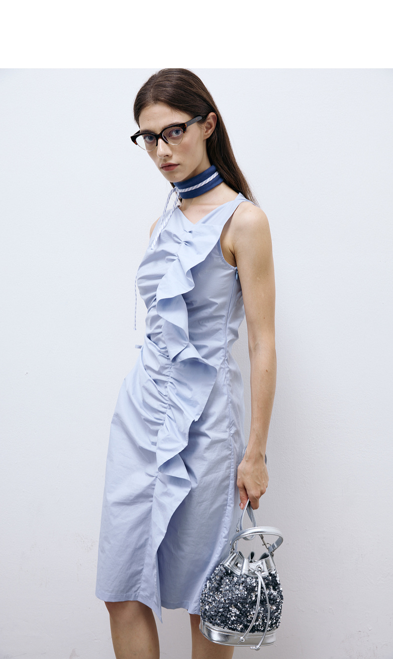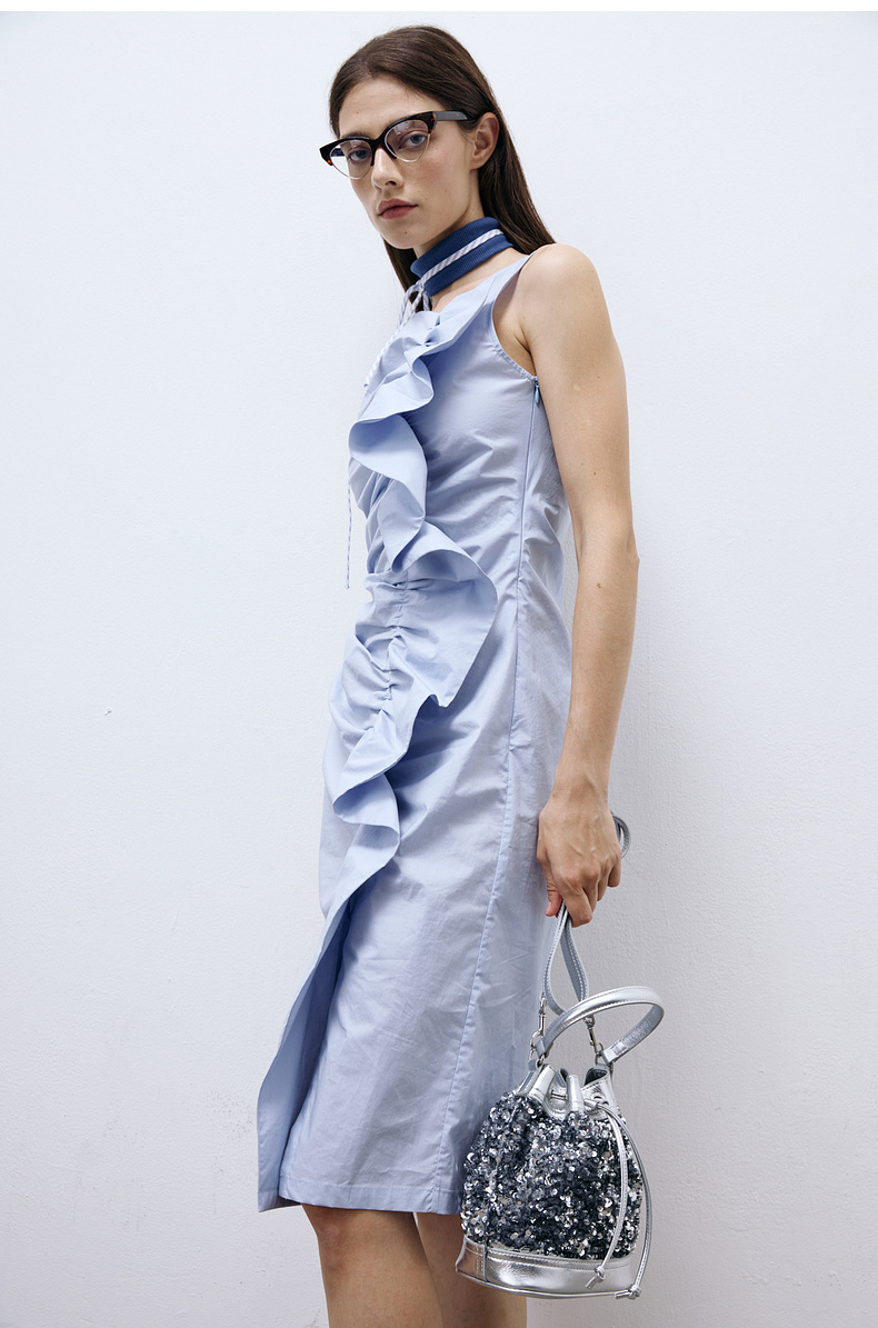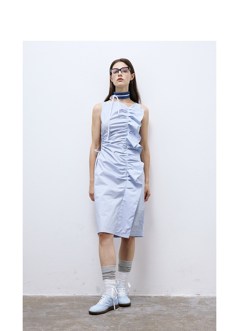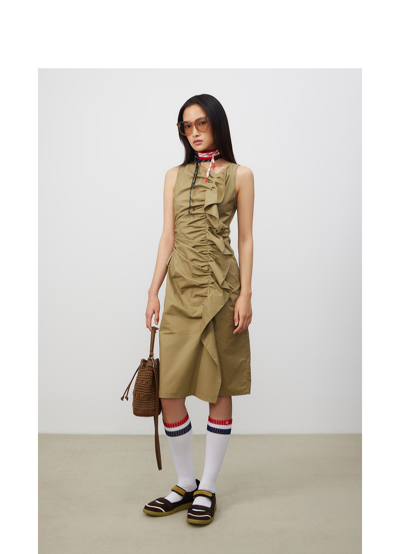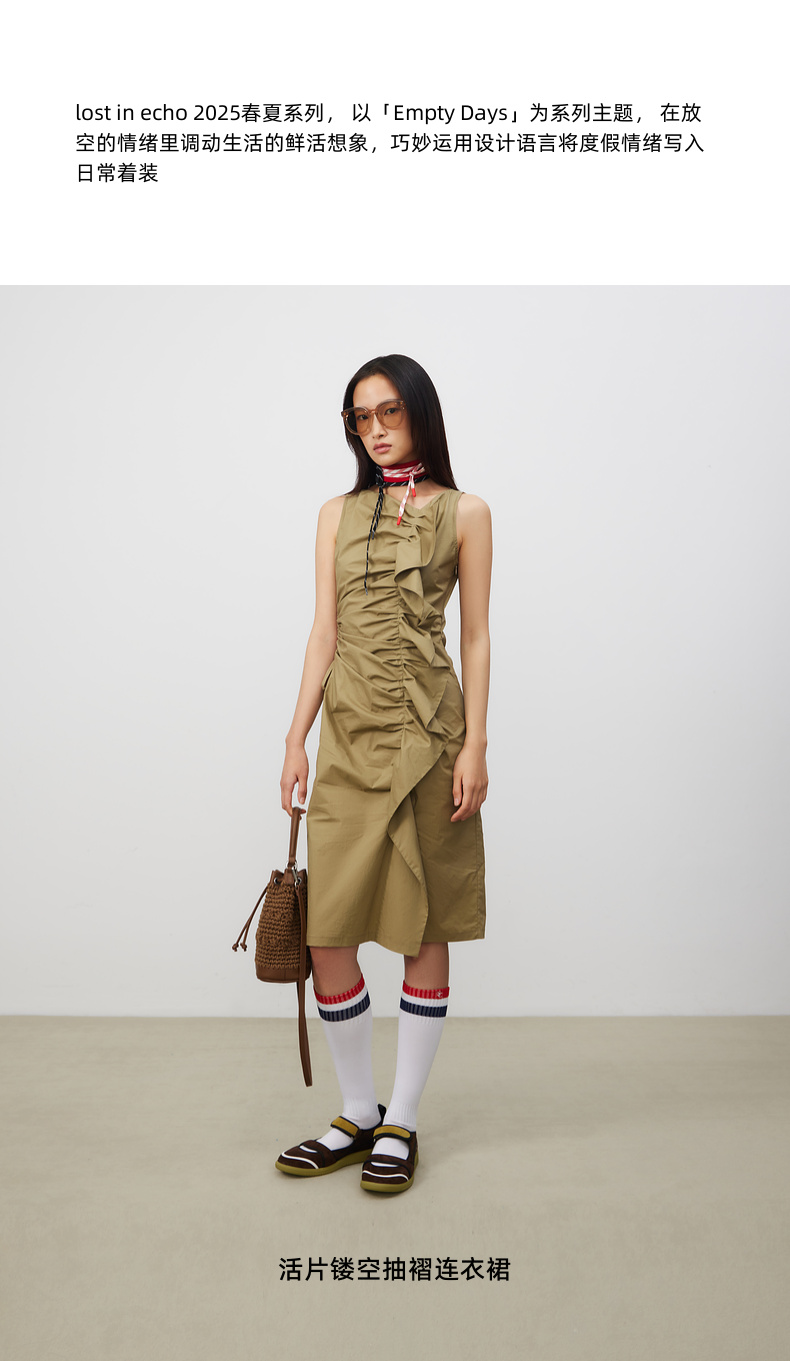 lost in echo2025春夏新款日本进口无袖活片开衩中长修身连衣裙女