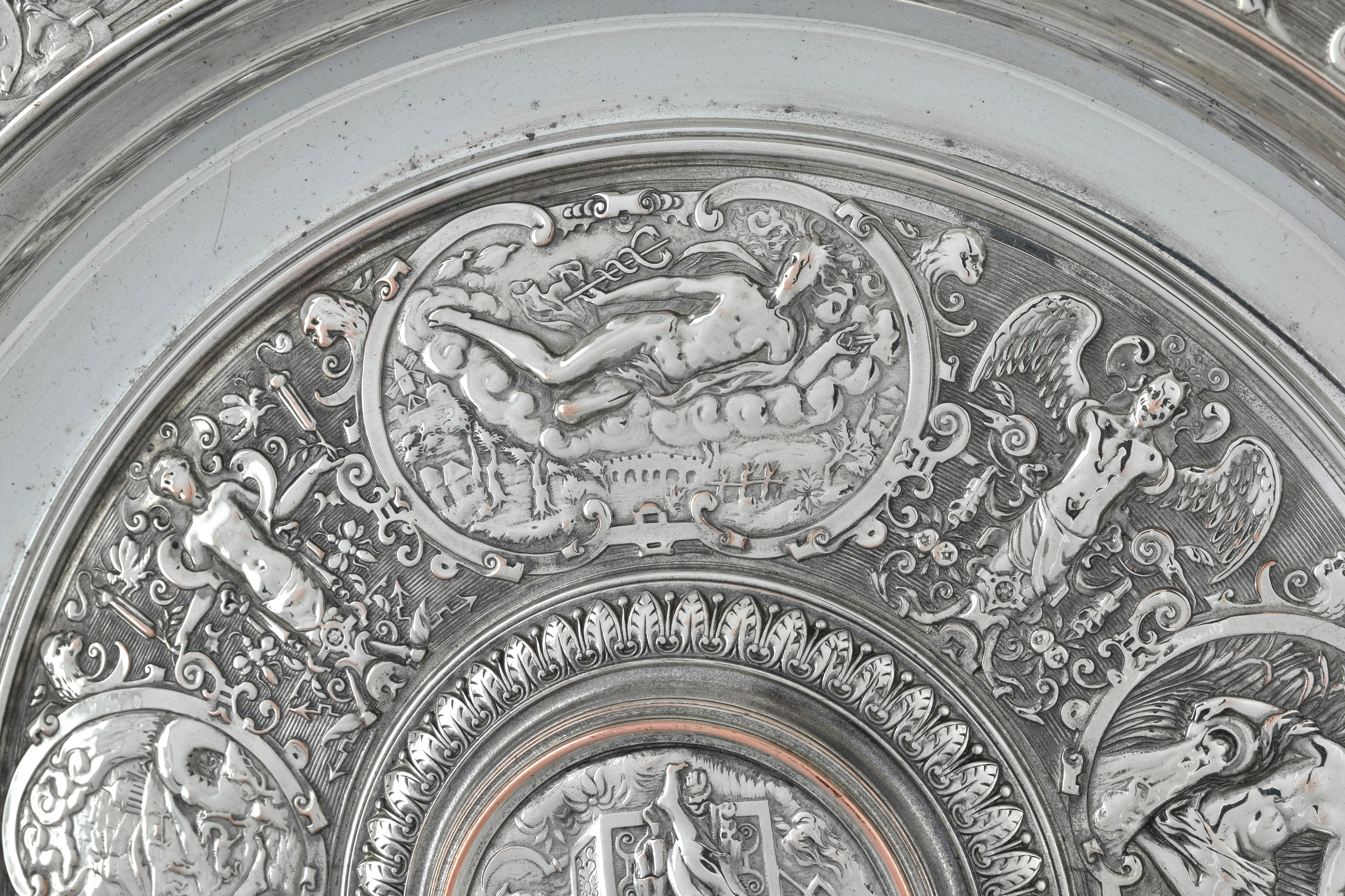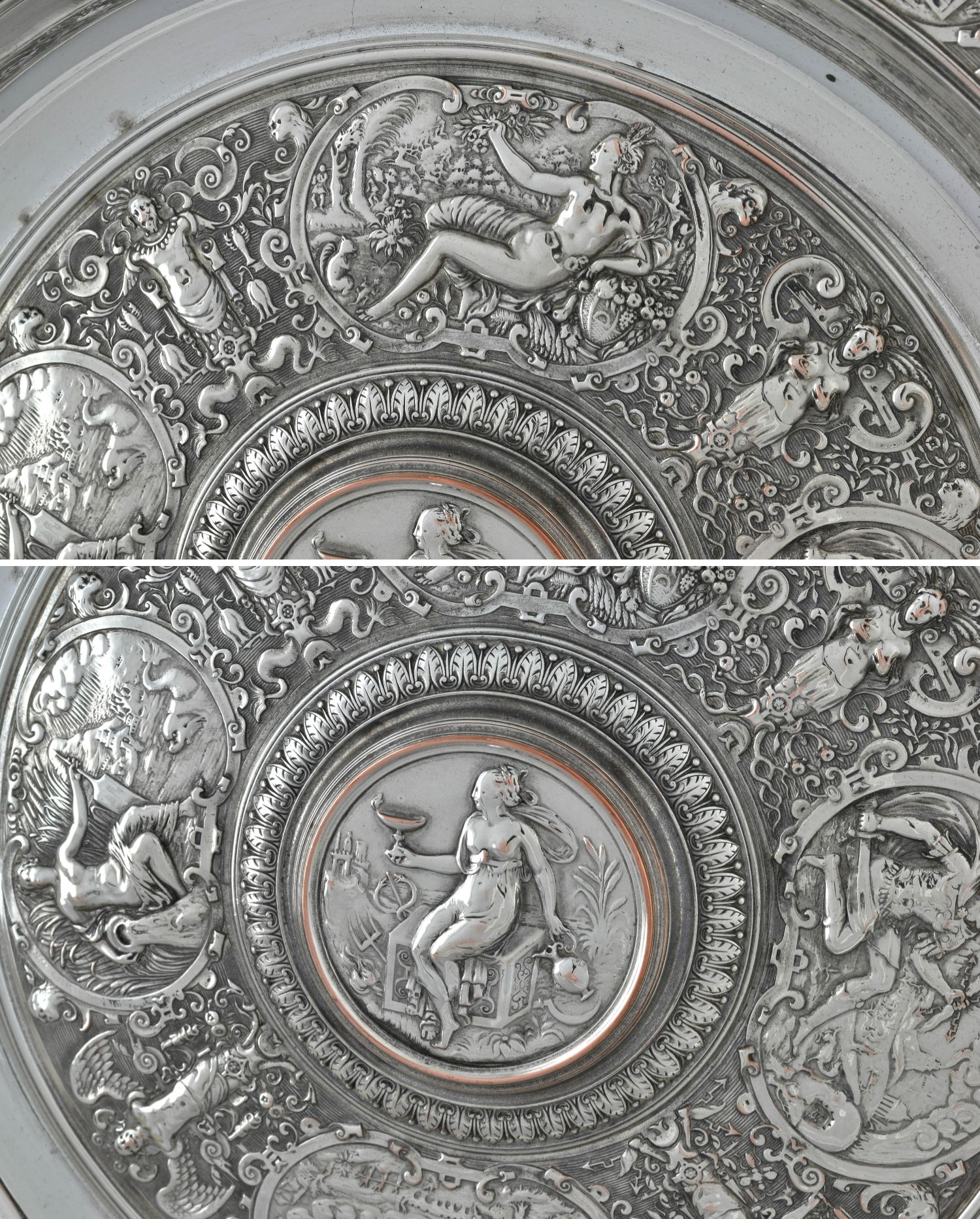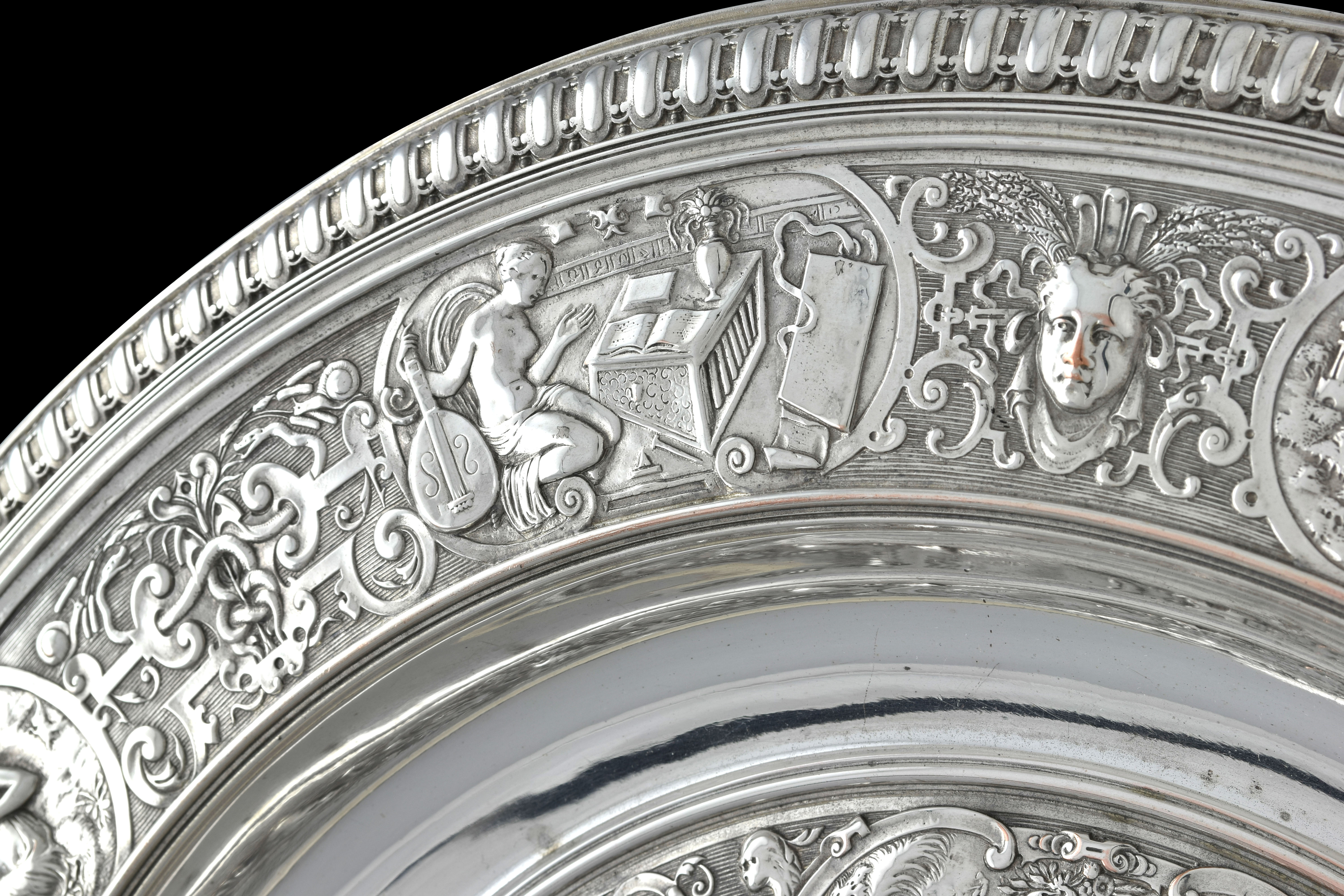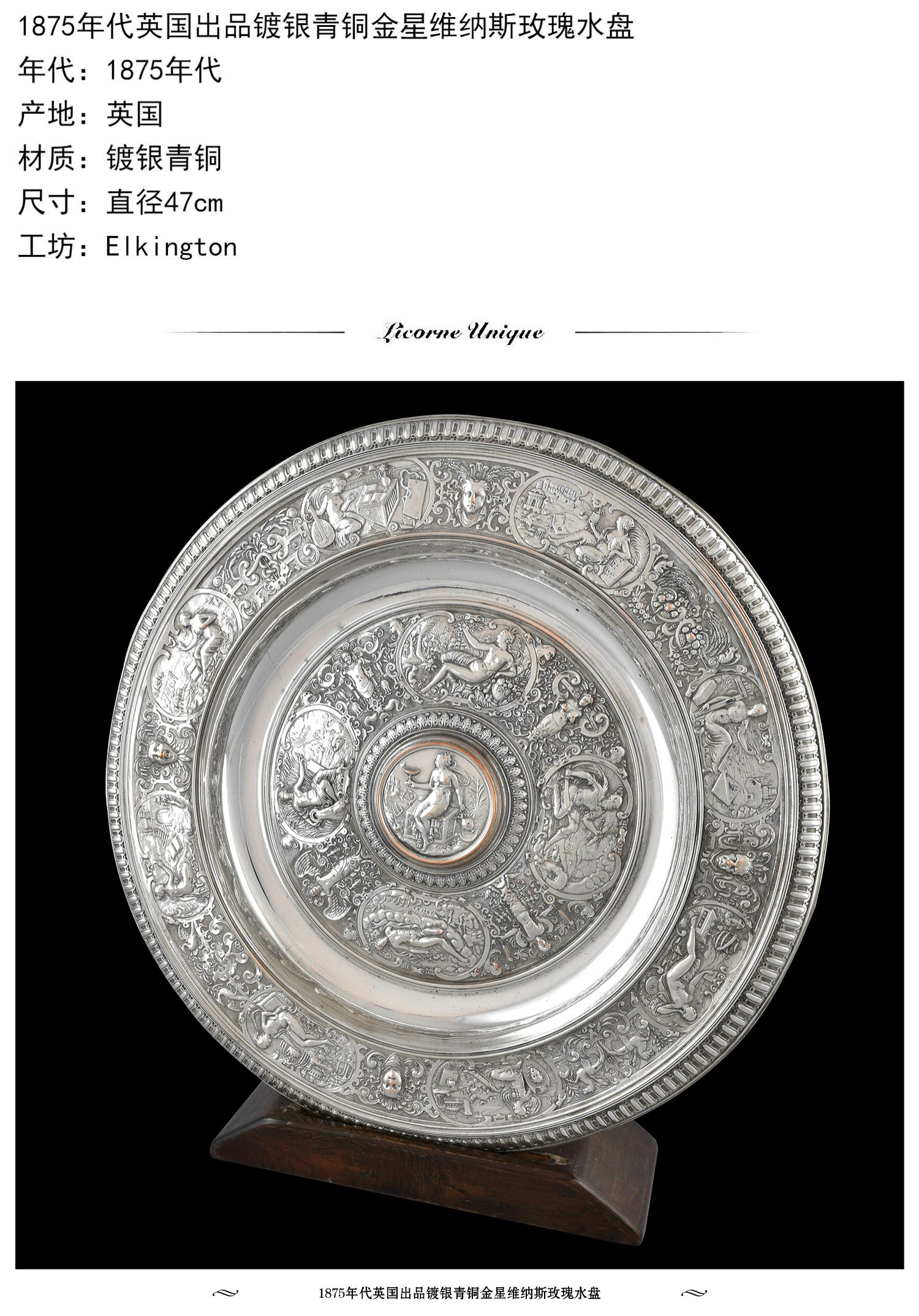独角鹿西洋古董1875年代英国镀银青铜金星维纳斯玫瑰水盘圆形盾牌