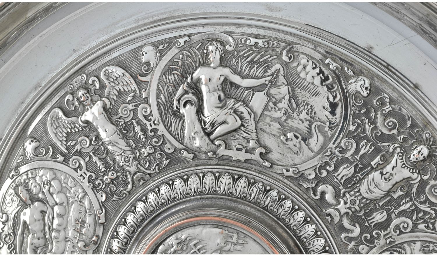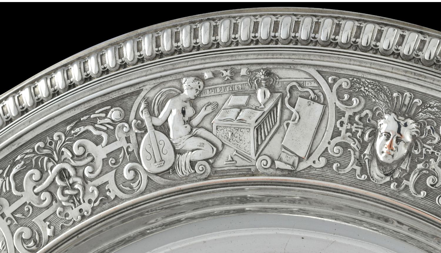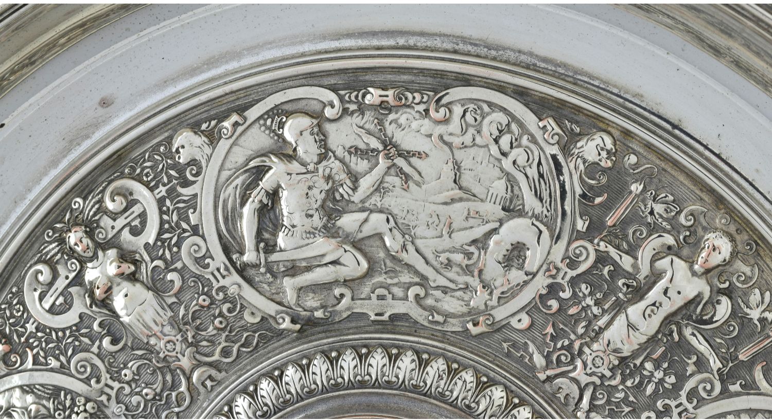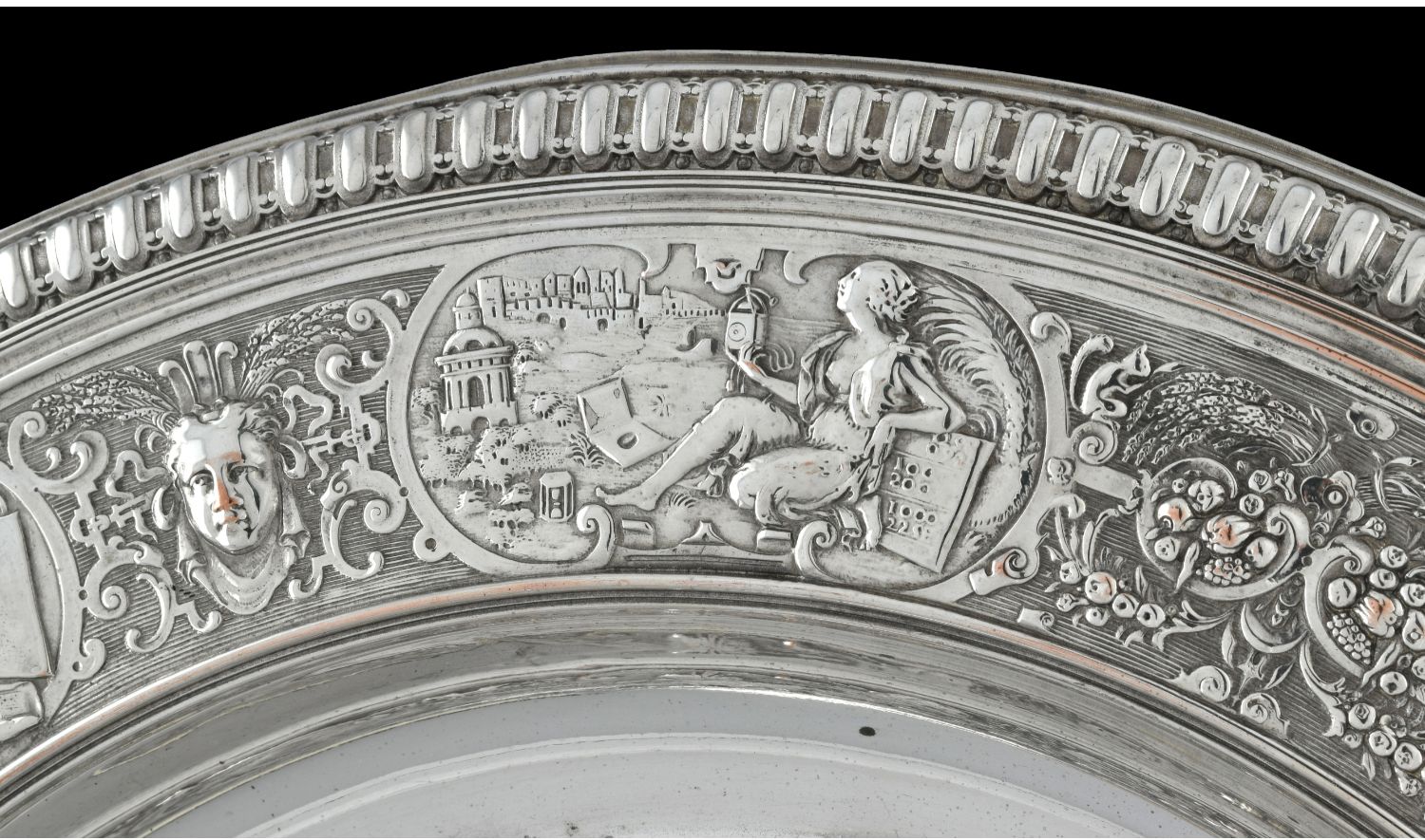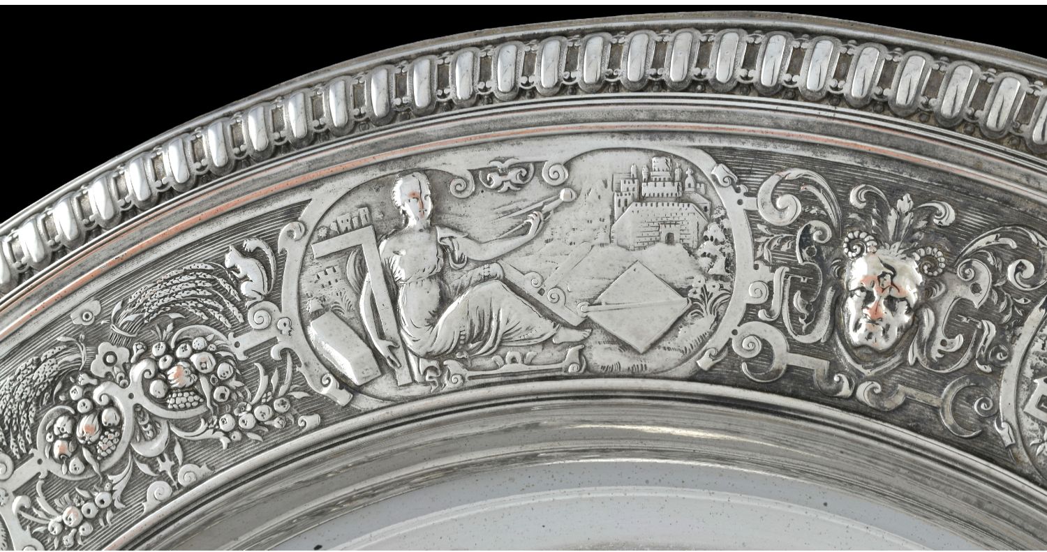 独角鹿西洋古董1875年代英国镀银青铜金星维纳斯玫瑰水盘圆形盾牌