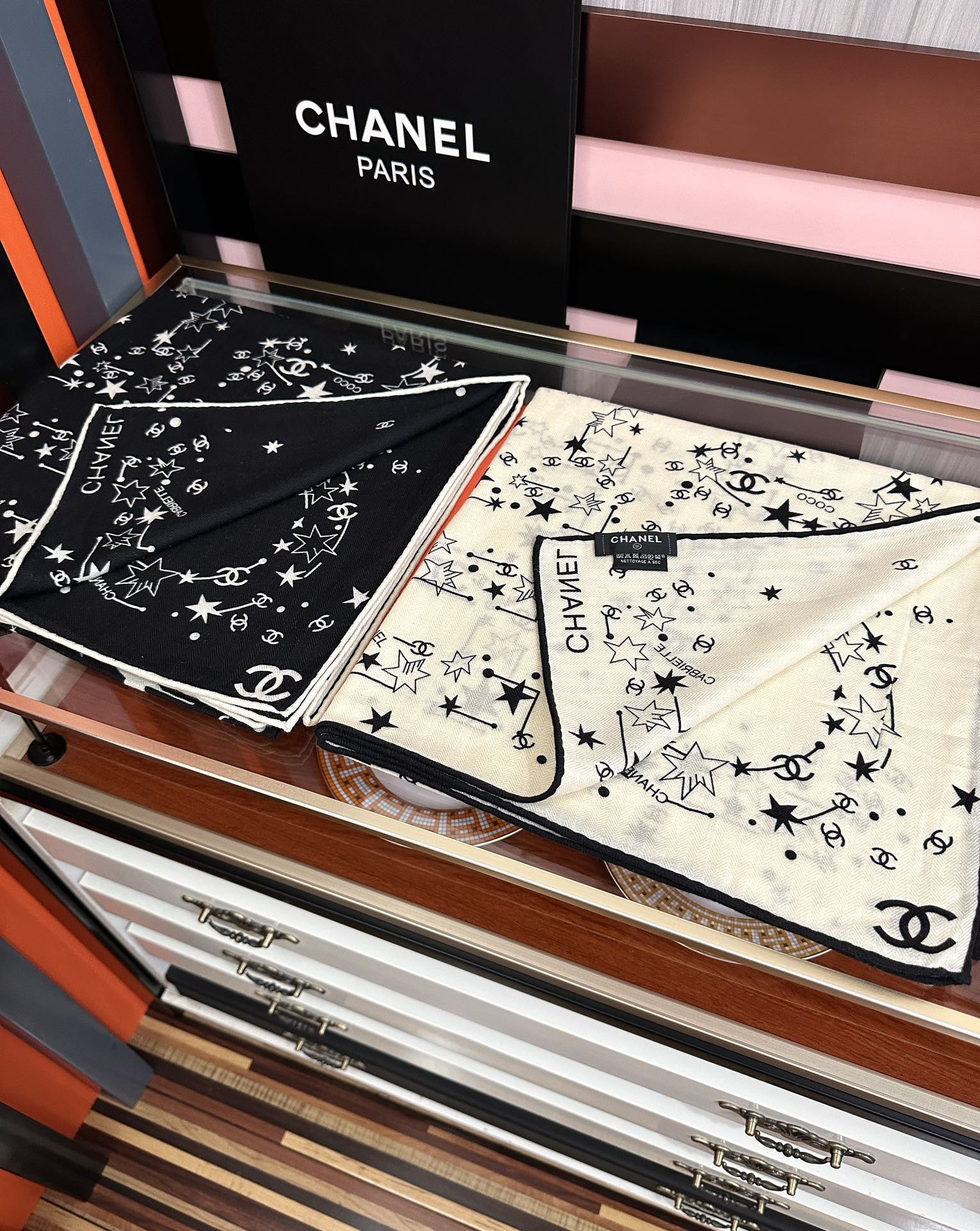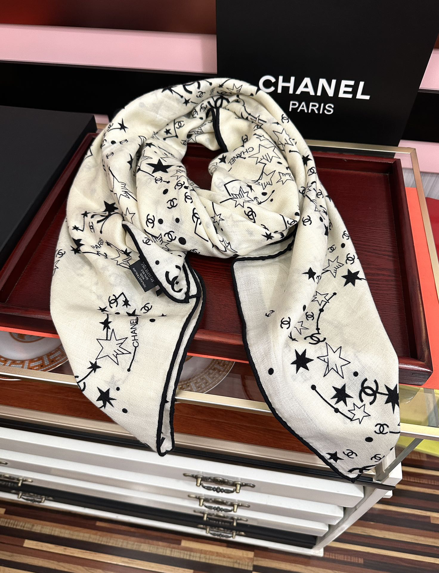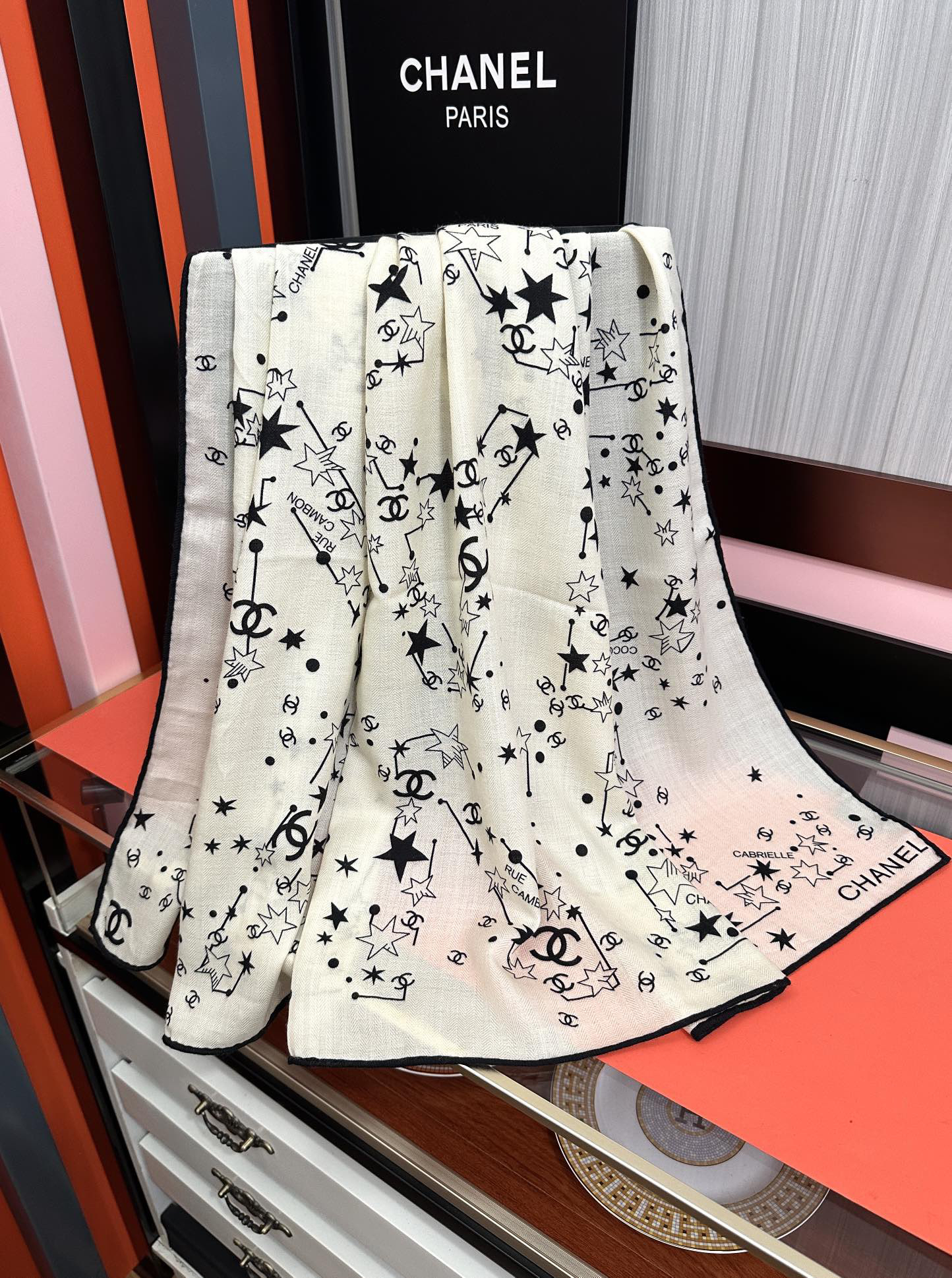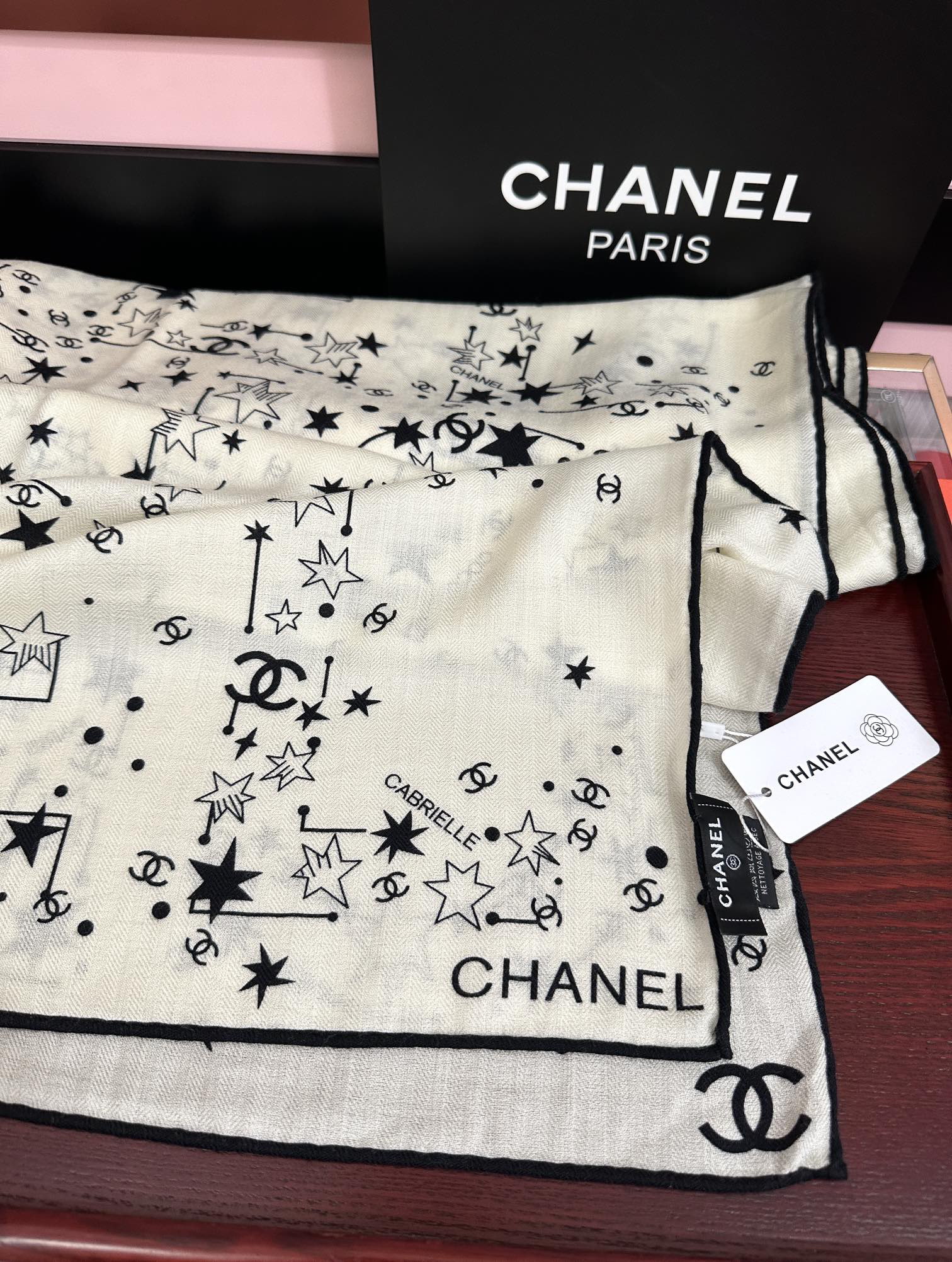 秋冬特惠💰390 新款香奈儿围巾 星星涂鸦【双面同色】经典设计优雅风 气质到骨子里 香奶奶新一季的面料超高级,真心超级柔软,丝丝顺滑 韧性很强 不容易被轻易勾丝!今年新出的系列~真的被这样的设计美到[强]一条小香的丝巾 给你最好的搭配[嘴唇]上身效果简直优雅气质到不行 非常灵动.层次优雅质感.香粉必入 上身效果真的不用多说的美(搭配服饰鞋包更有感觉) 实物绝对更美 经典黑白色 尺寸:140x140cm、材质30%真丝+70%丝羊绒,2⃣️色