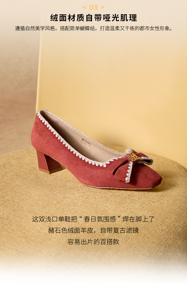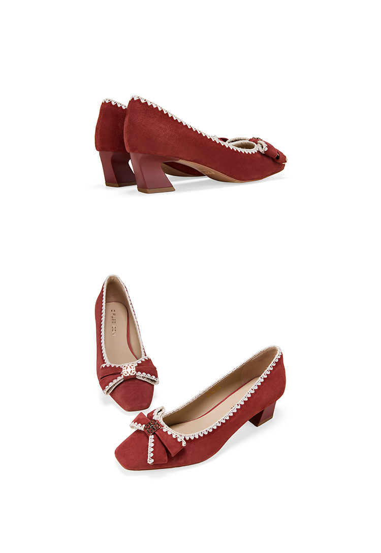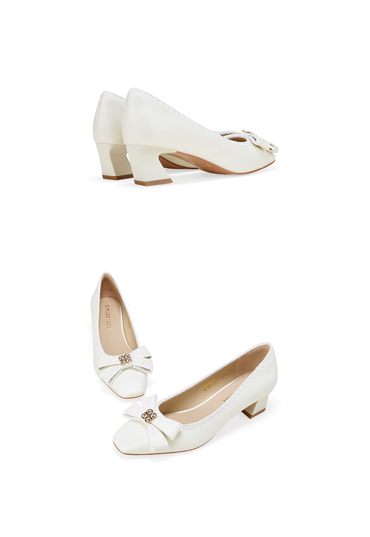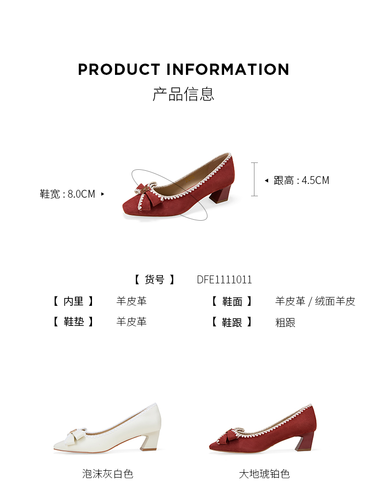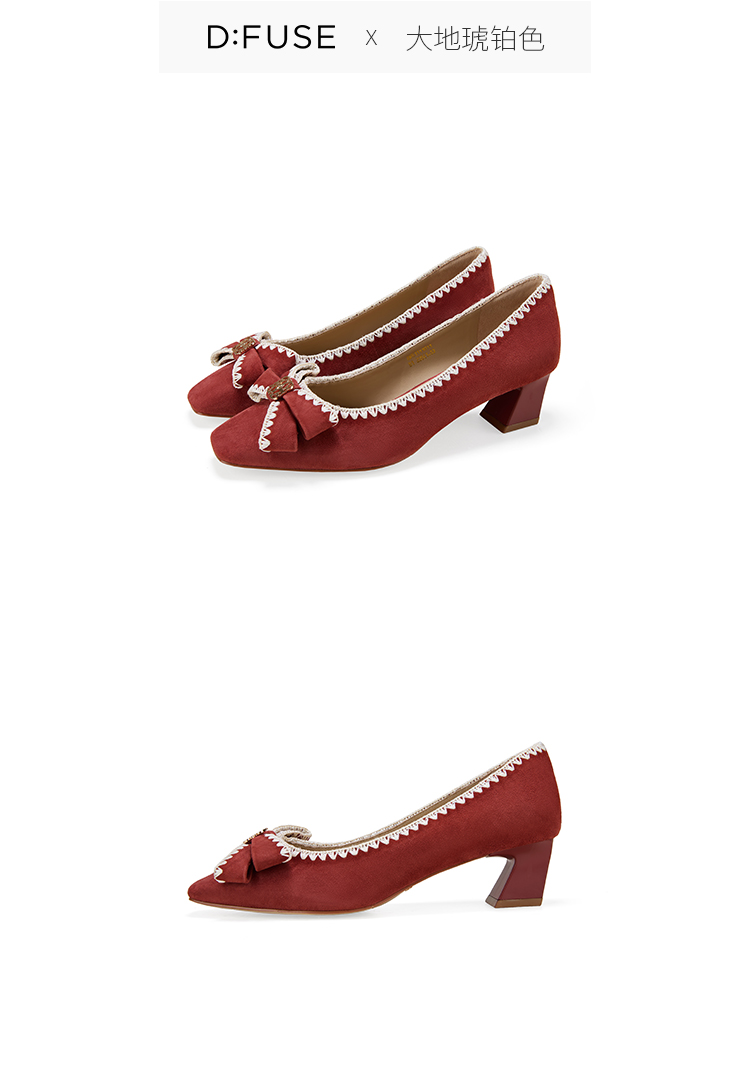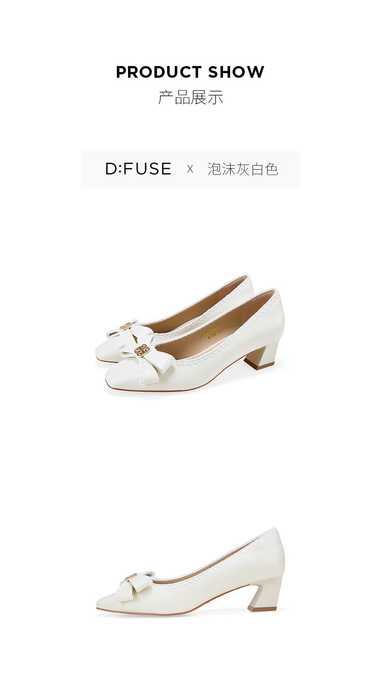 Dfuse迪芙斯2026春季新款小方头蝴蝶结舒适矮粗跟单鞋高跟鞋女鞋DFE1111011