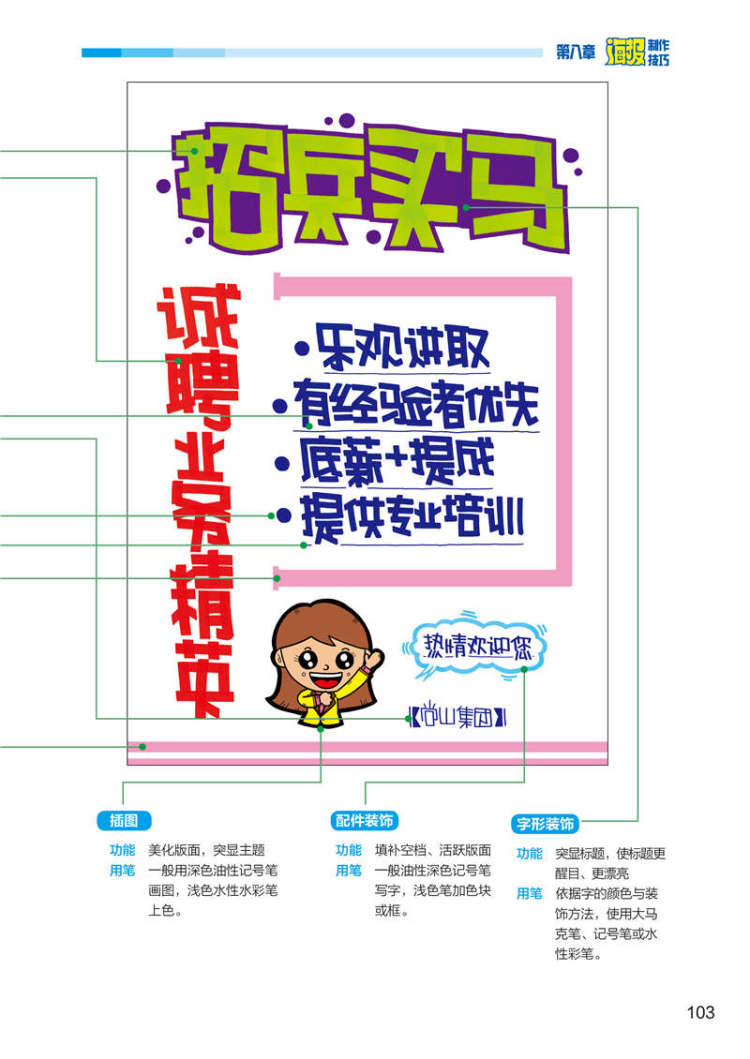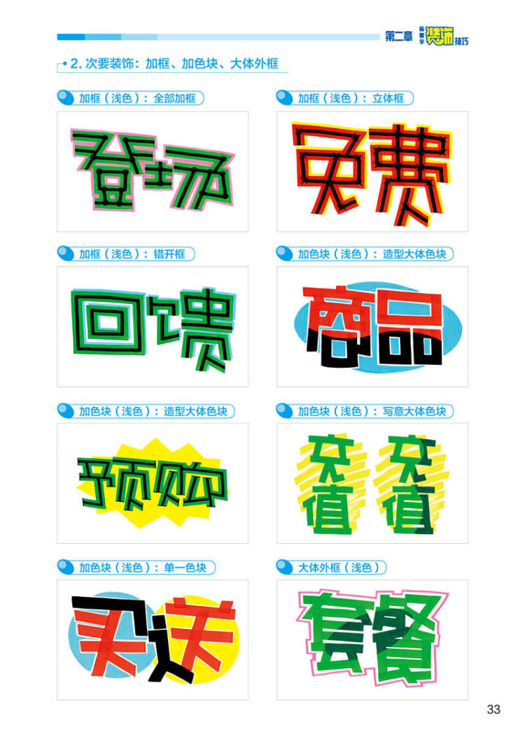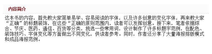目录 前言 / 3 章 字体书写技巧 / 5 第二章 标题字装饰技巧 / 29 第三章 通用标题字范例 / 41 第四章 节庆标题字范例 / 55 第五章 医药标题字范例 / 69 第六章 通信标题字范例 / 83 第七章 百货标题字范例 / 93 第八章 海报制作技巧 / 101 |