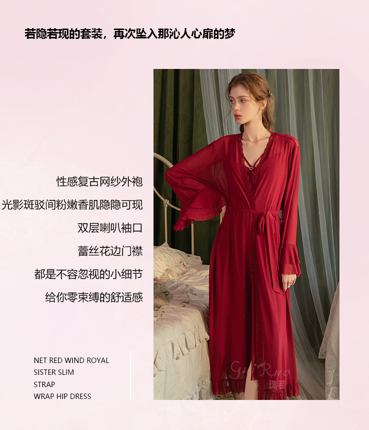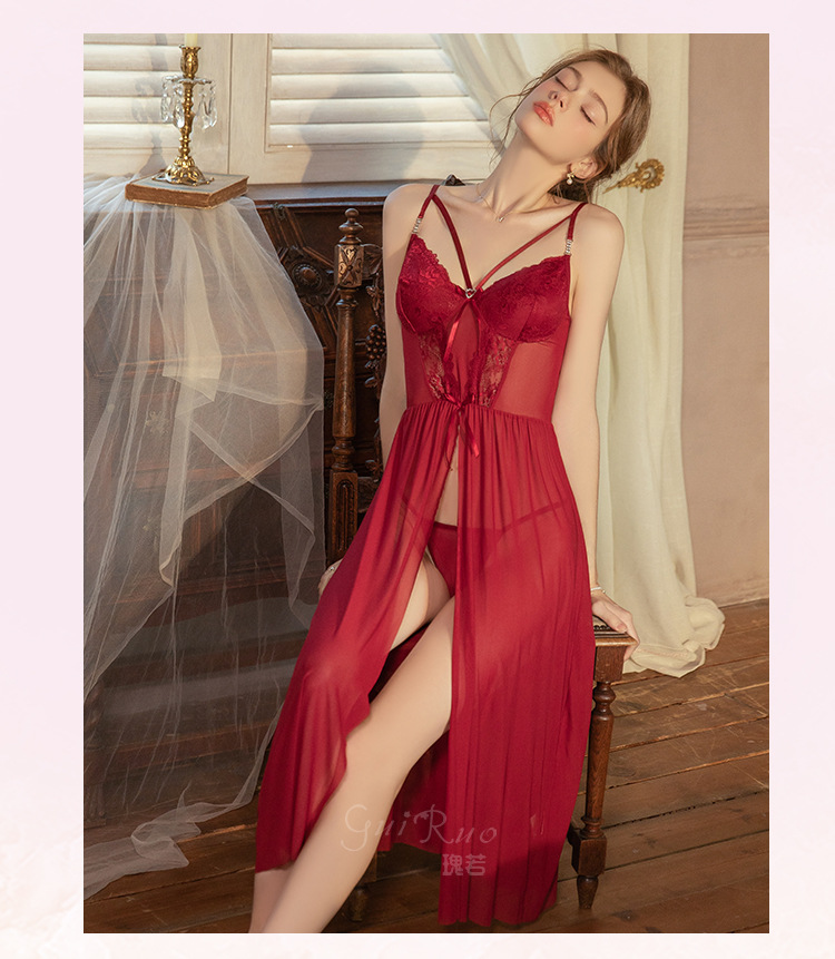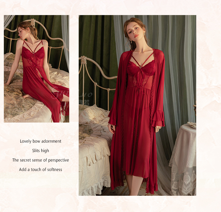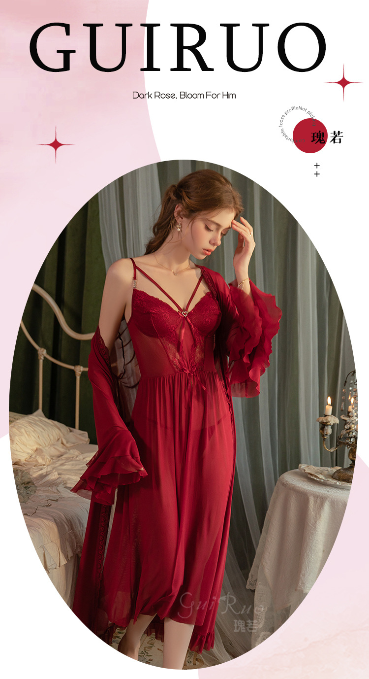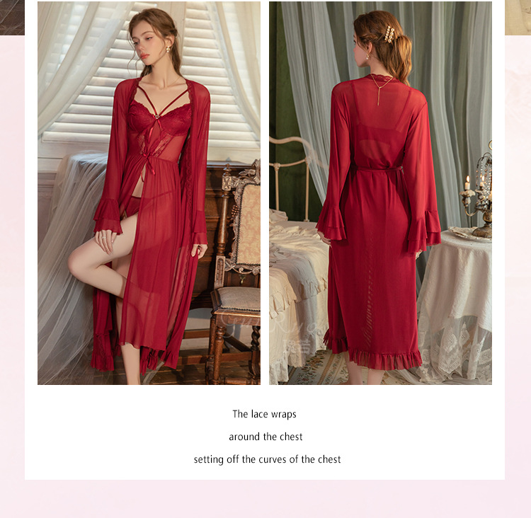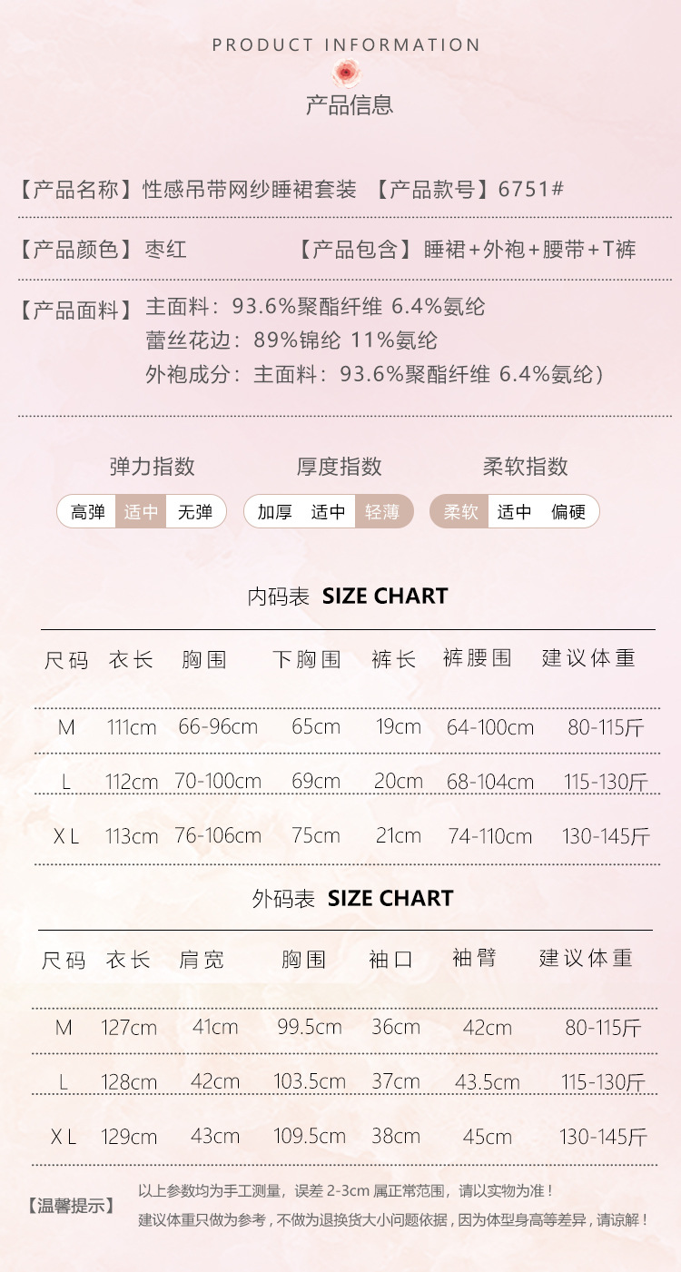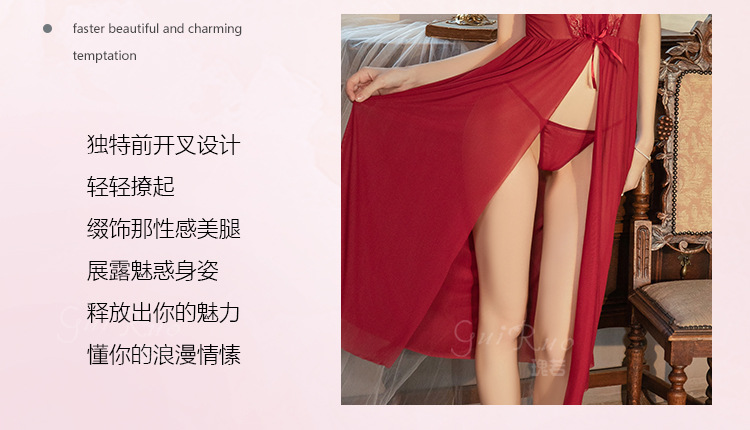 【YW】无忧购情趣内衣性感蝴蝶结点缀纯欲前开叉睡裙外袍套装6751(截单后3-5天发货)